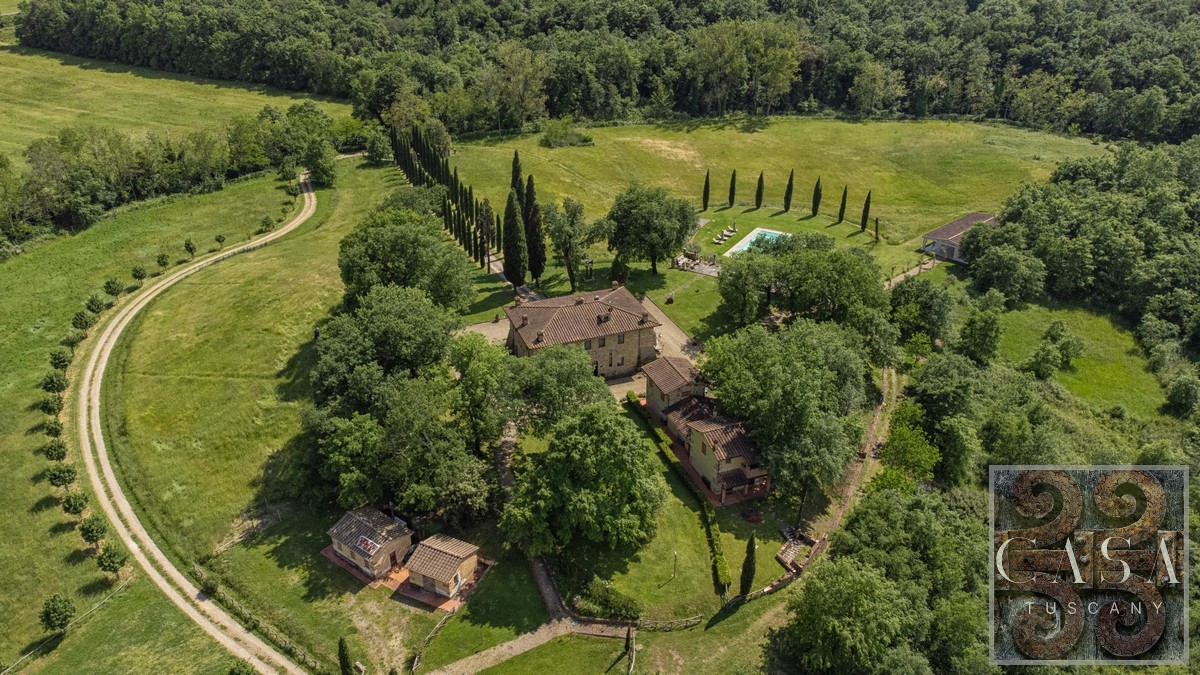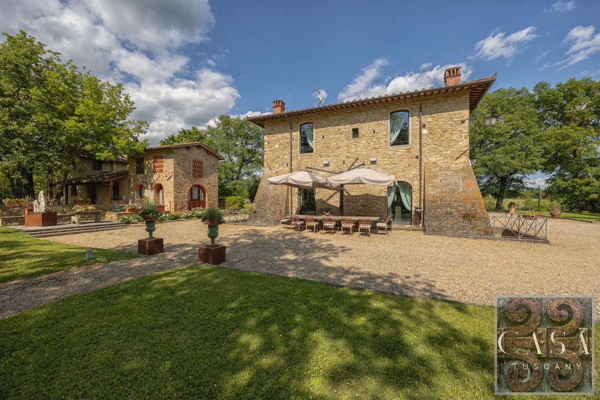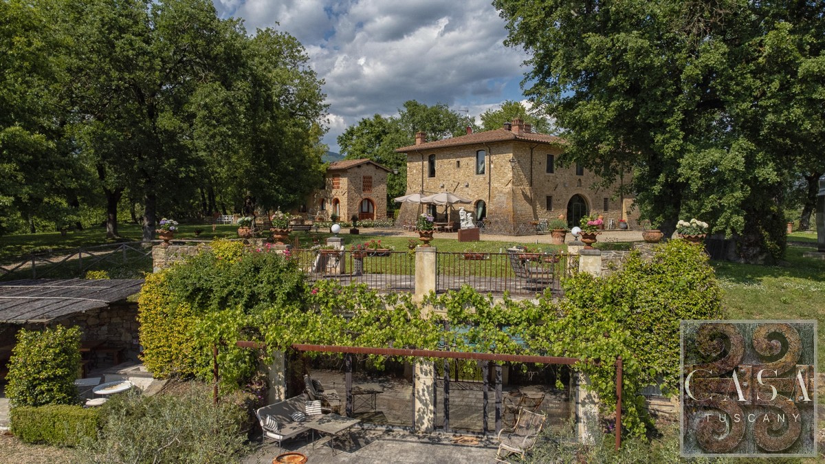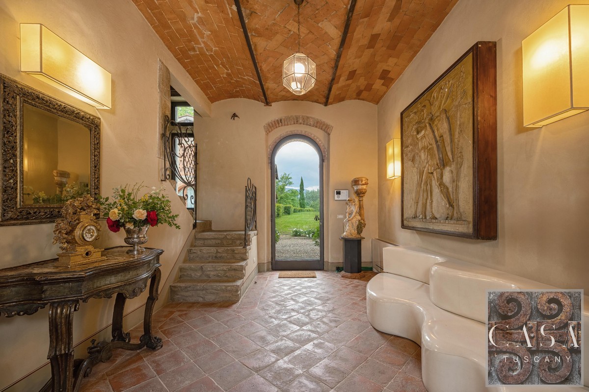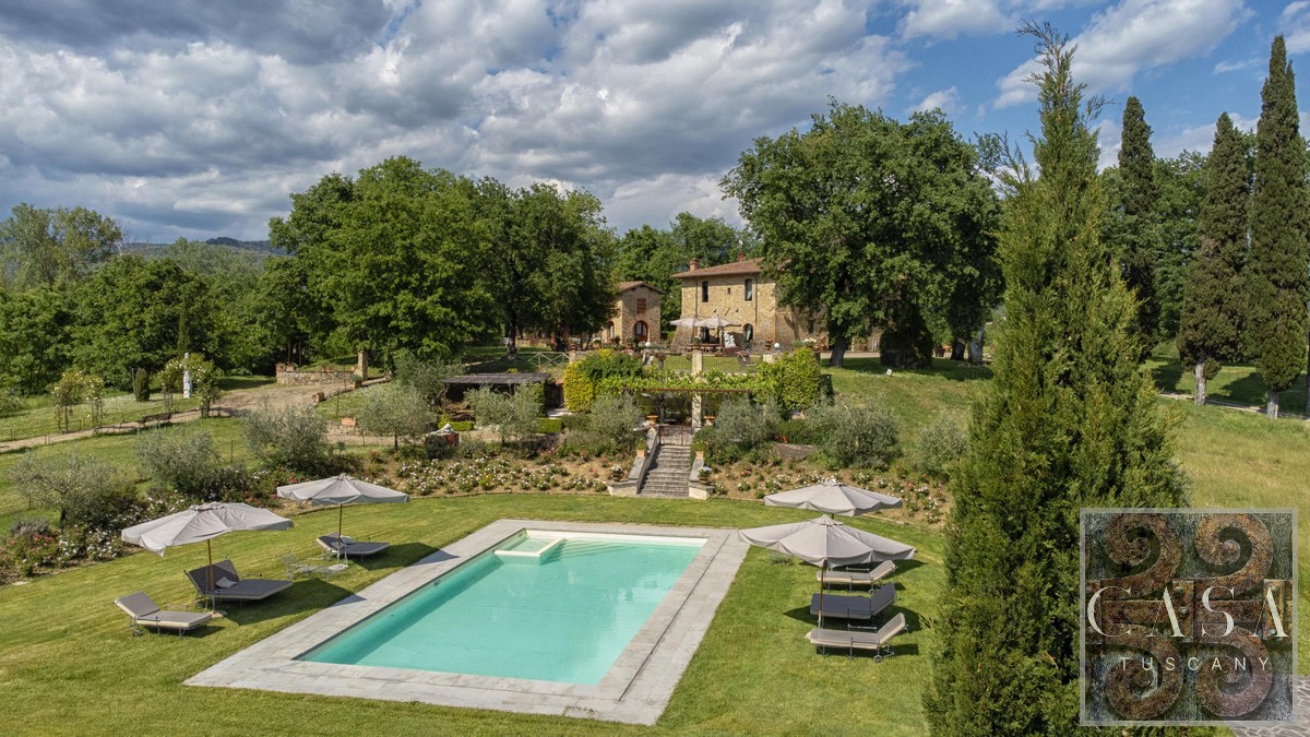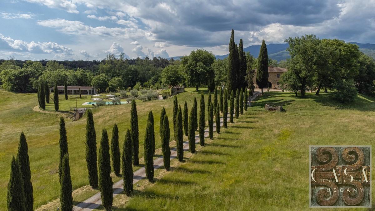 In the lush countryside between Arezzo and Florence, this prestigious estate spans approximately 32 hectares, including over 10 hectares of organically certified vineyards cultivated since 2012. The entire property lies within a protected natural area, offering an exceptionally peaceful and scenic setting.