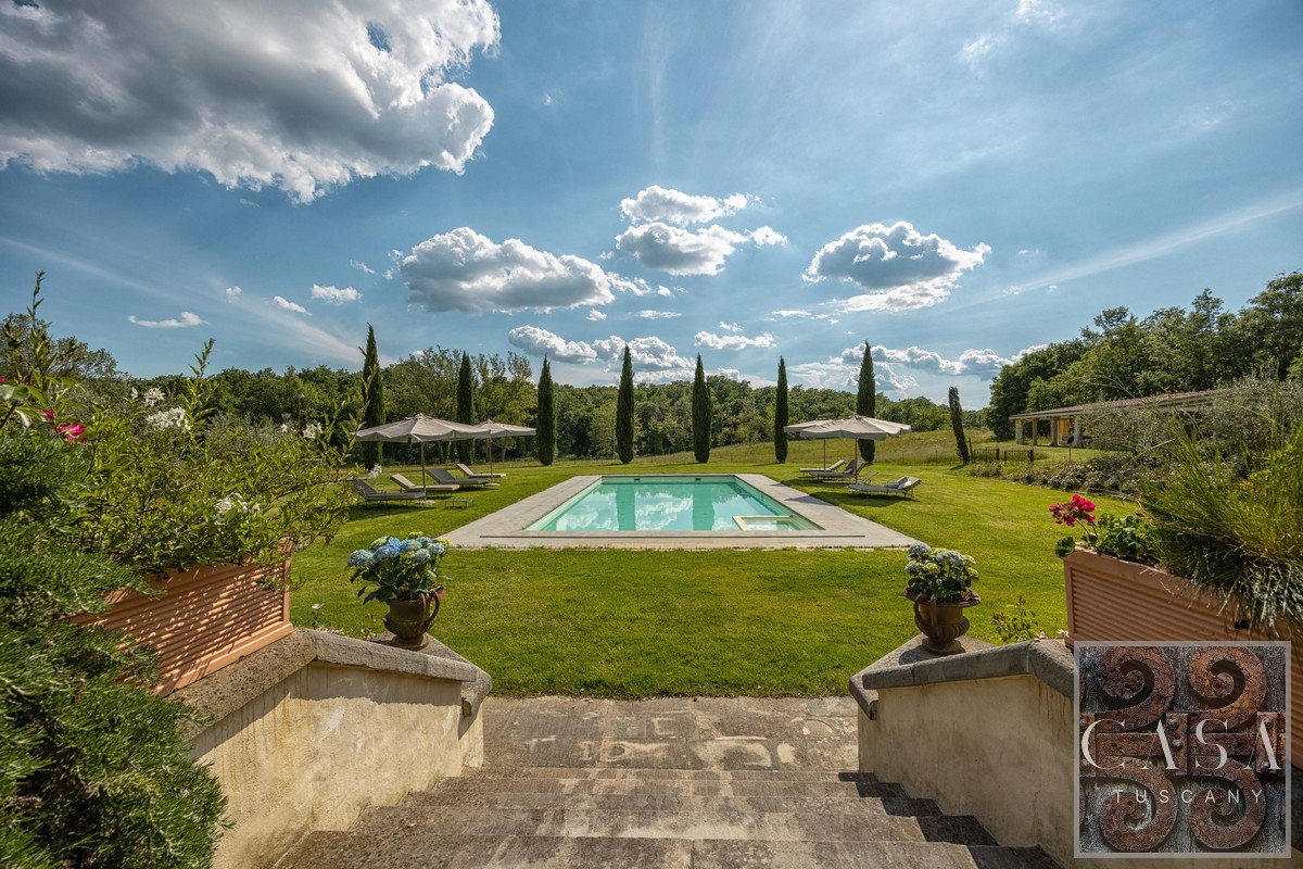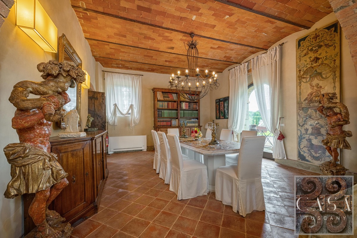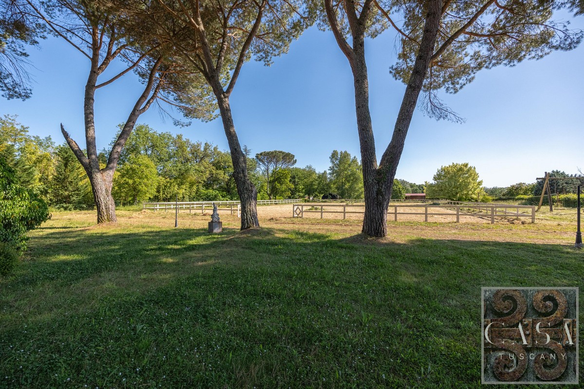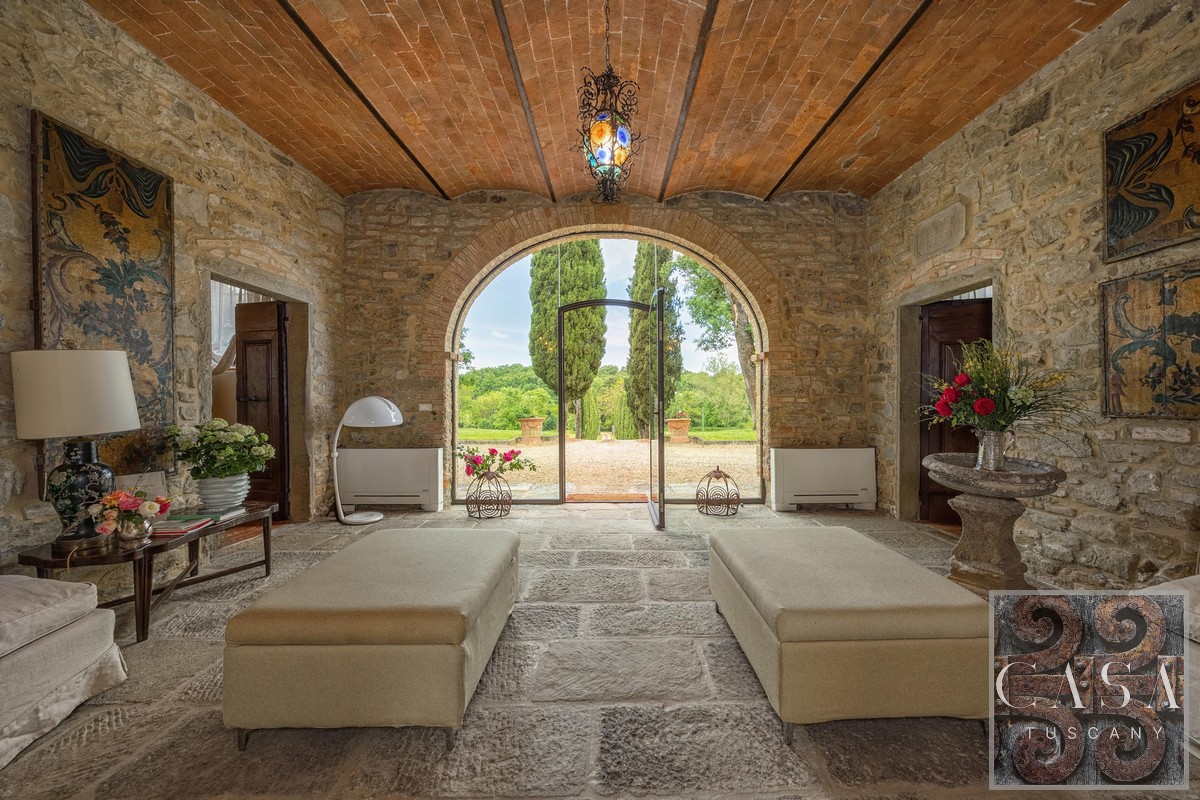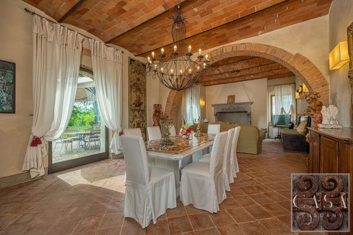 In the lush countryside between Arezzo and Florence, this prestigious estate spans approximately 32 hectares, including over 10 hectares of organically certified vineyards cultivated since 2012. The entire property lies within a protected natural area, offering an exceptionally peaceful and scenic setting.