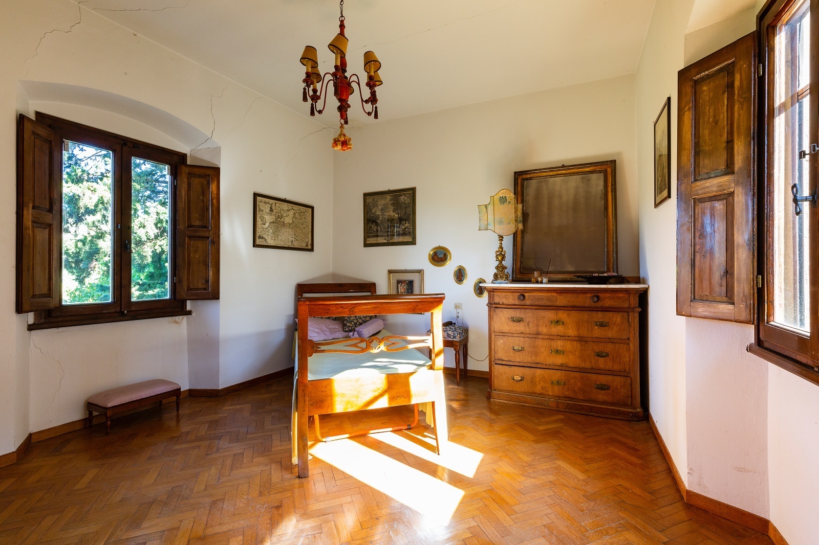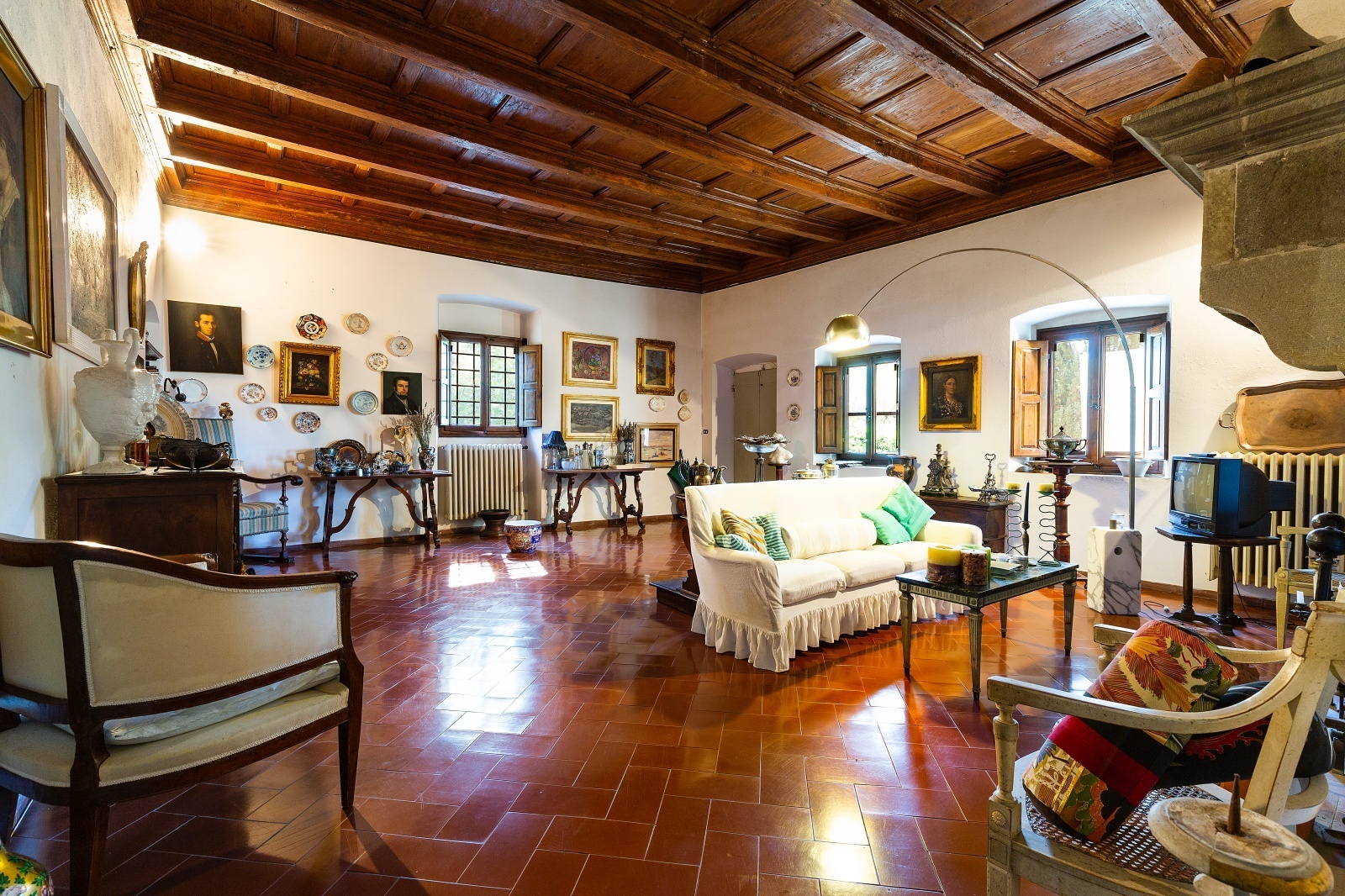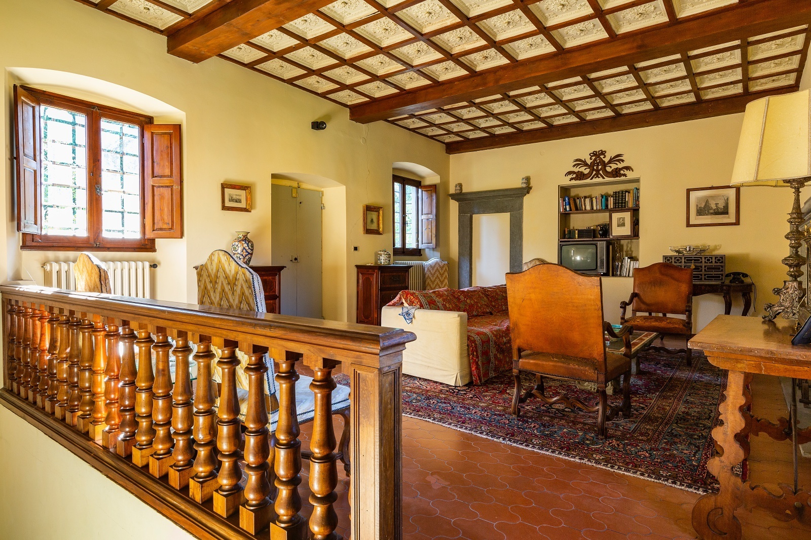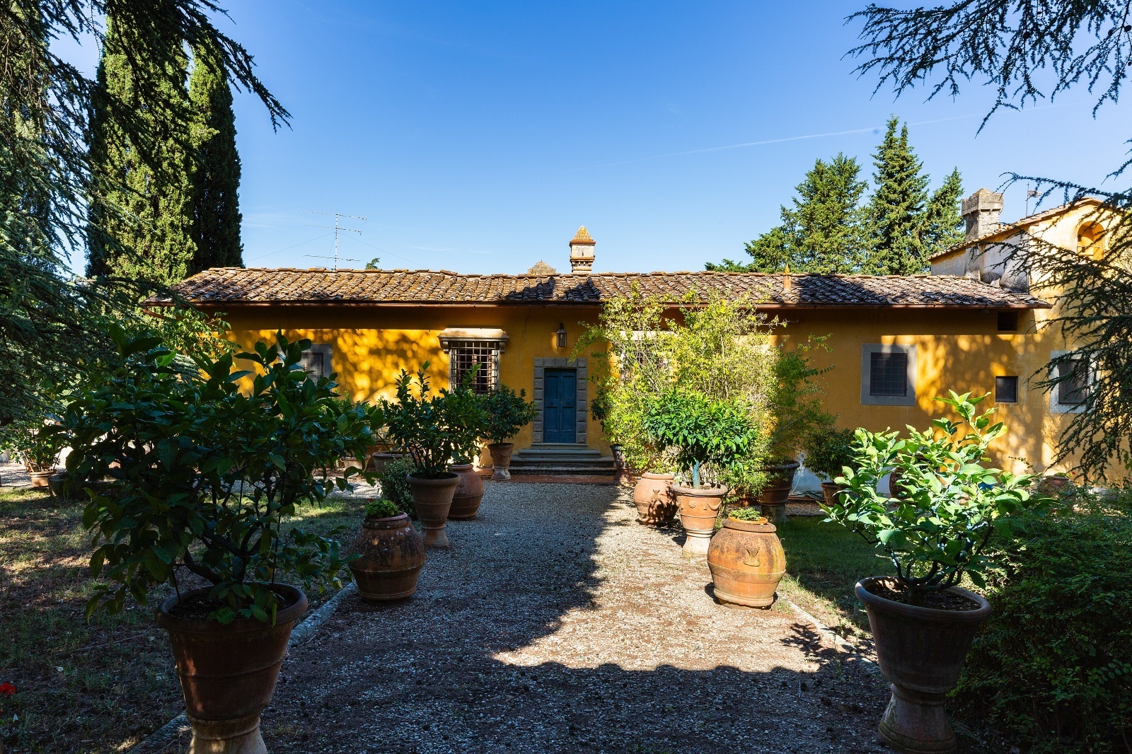 The villa dating back to the 1400s stands in the middle of the land of its property and once through the entrance gate it manifests itself in all its beauty. Surrounded by a garden, it presents itself with the typical form of the Florentine villa. The entrance leads into the characteristic courtyard with the buildings that frame it – on the right the small private church still consecrated and on one side, a jar store. On another side, the entrance to a wing of the villa, on the ground floor a small apartment for staff which includes the kitchen, a bedroom and a bathroom. The stone staircase leads to the first floor which leads to a large living room, while the corridor leads to the bedrooms – 3 double bedrooms and a bathroom.