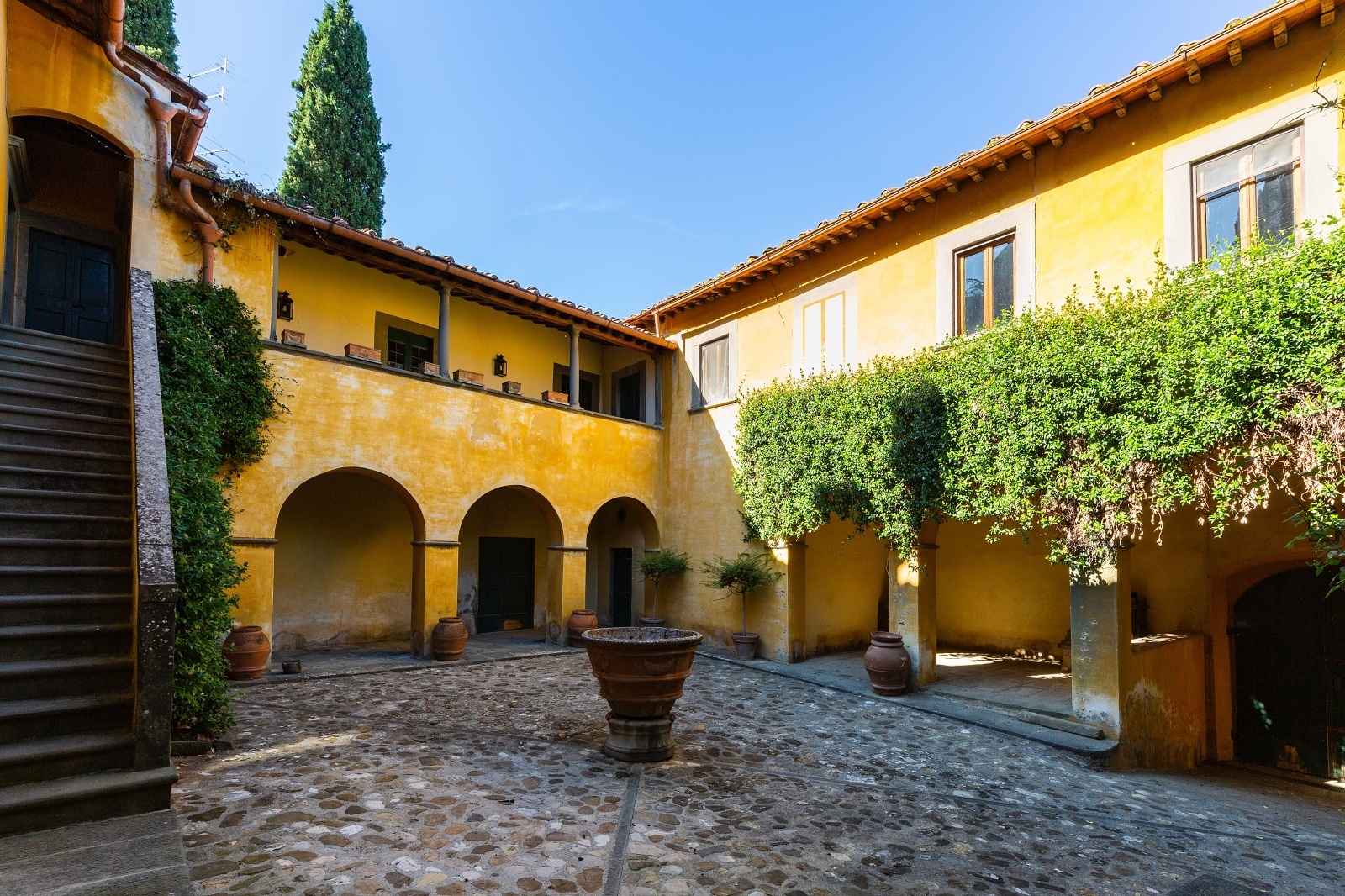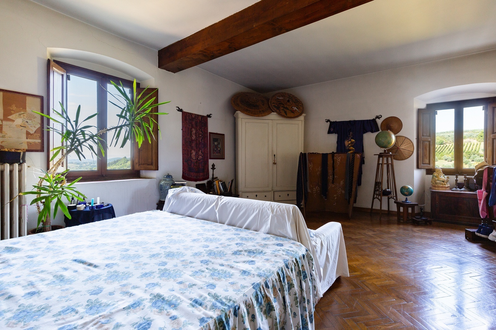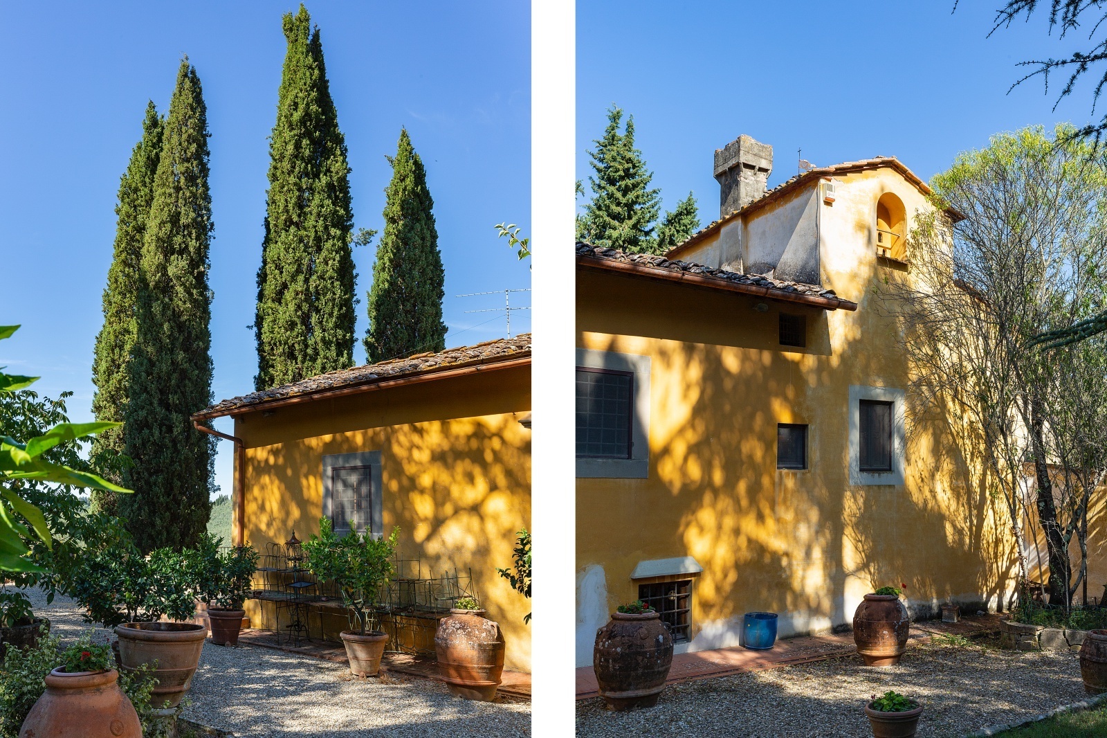The villa dating back to the 1400s stands in the middle of the land of its property and once through the entrance gate it manifests itself in all its beauty. Surrounded by a garden, it presents itself with the typical form of the Florentine villa. The entrance leads into the characteristic courtyard with the buildings that frame it – on the right the small private church still consecrated and on one side, a jar store. On another side, the entrance to a wing of the villa, on the ground floor a small apartment for staff which includes the kitchen, a bedroom and a bathroom. The stone staircase leads to the first floor which leads to a large living room, while the corridor leads to the bedrooms – 3 double bedrooms and a bathroom.