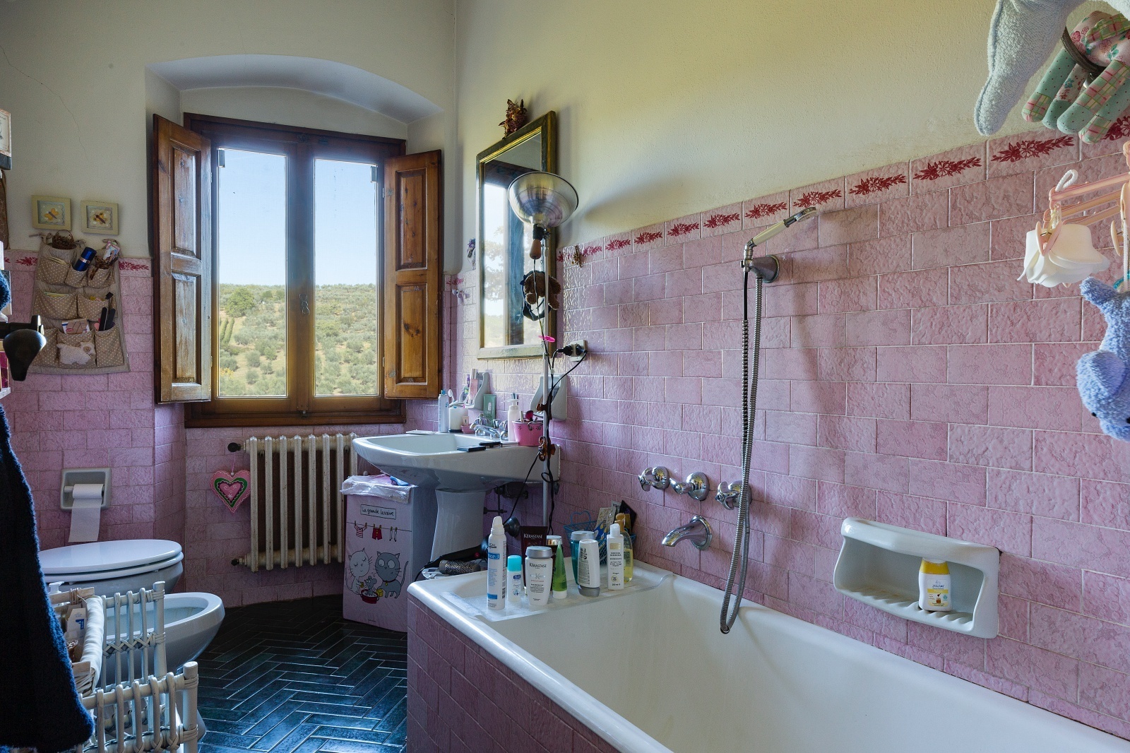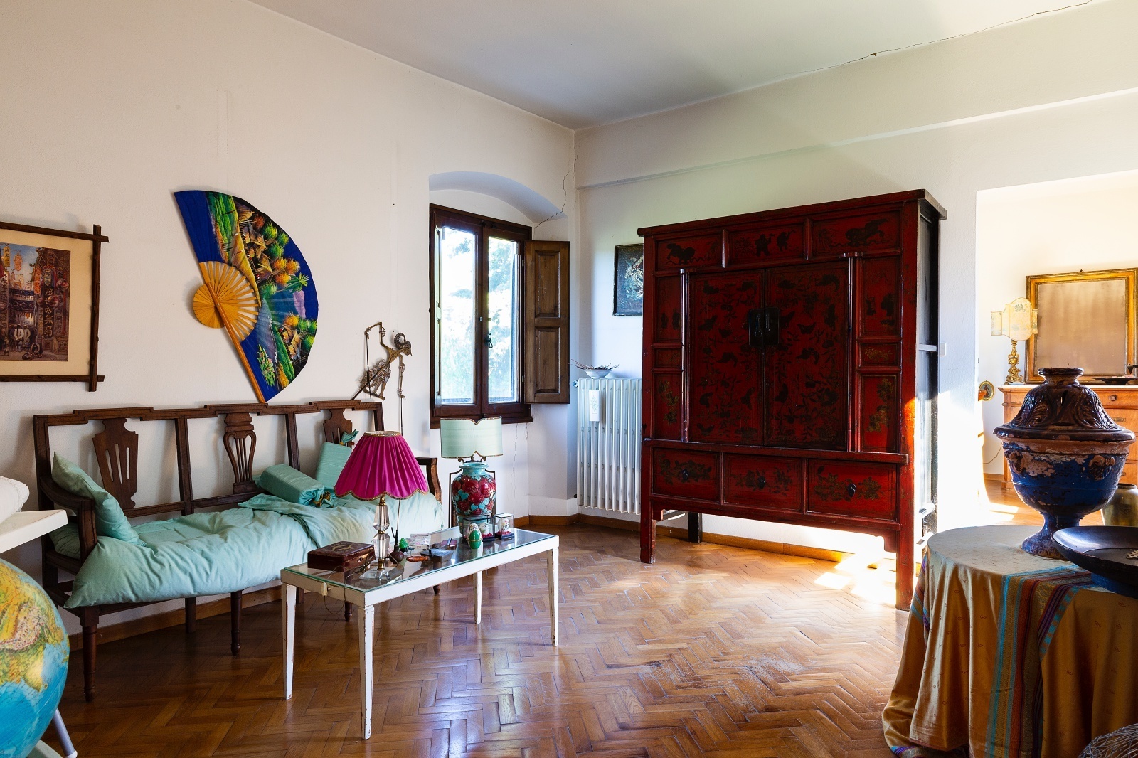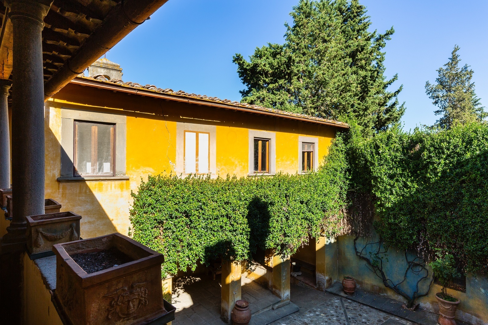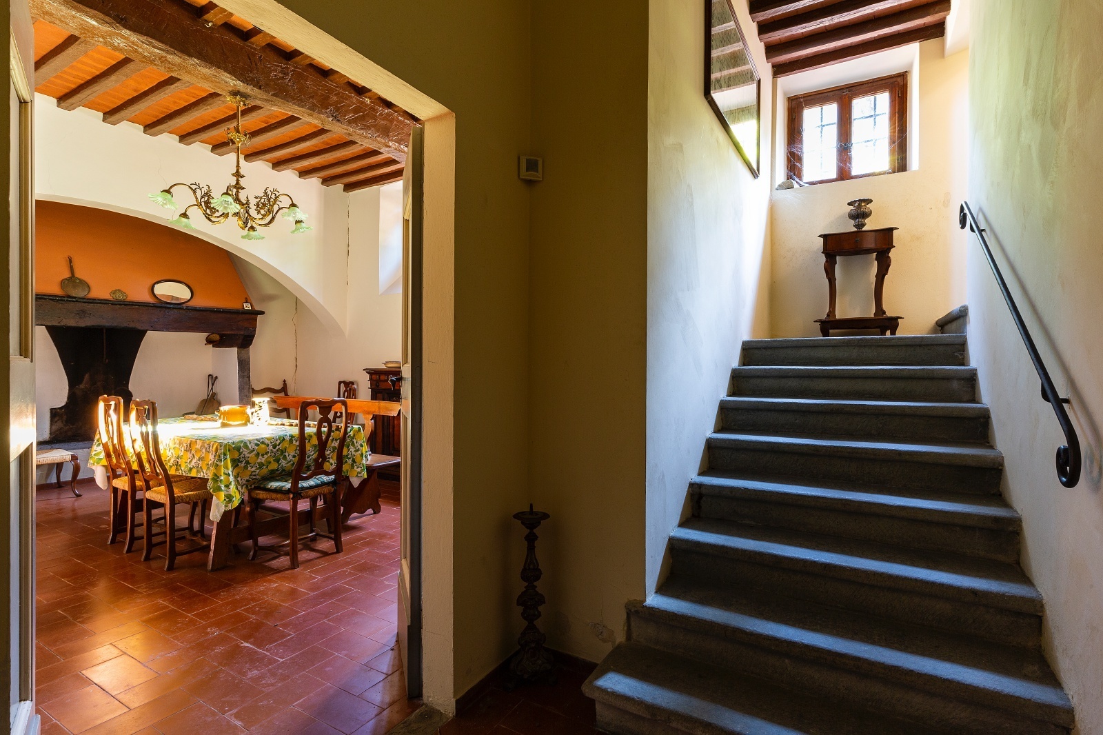 The villa dating back to the 1400s stands in the middle of the land of its property and once through the entrance gate it manifests itself in all its beauty. Surrounded by a garden, it presents itself with the typical form of the Florentine villa. The entrance leads into the characteristic courtyard with the buildings that frame it – on the right the small private church still consecrated and on one side, a jar store. On another side, the entrance to a wing of the villa, on the ground floor a small apartment for staff which includes the kitchen, a bedroom and a bathroom. The stone staircase leads to the first floor which leads to a large living room, while the corridor leads to the bedrooms – 3 double bedrooms and a bathroom.