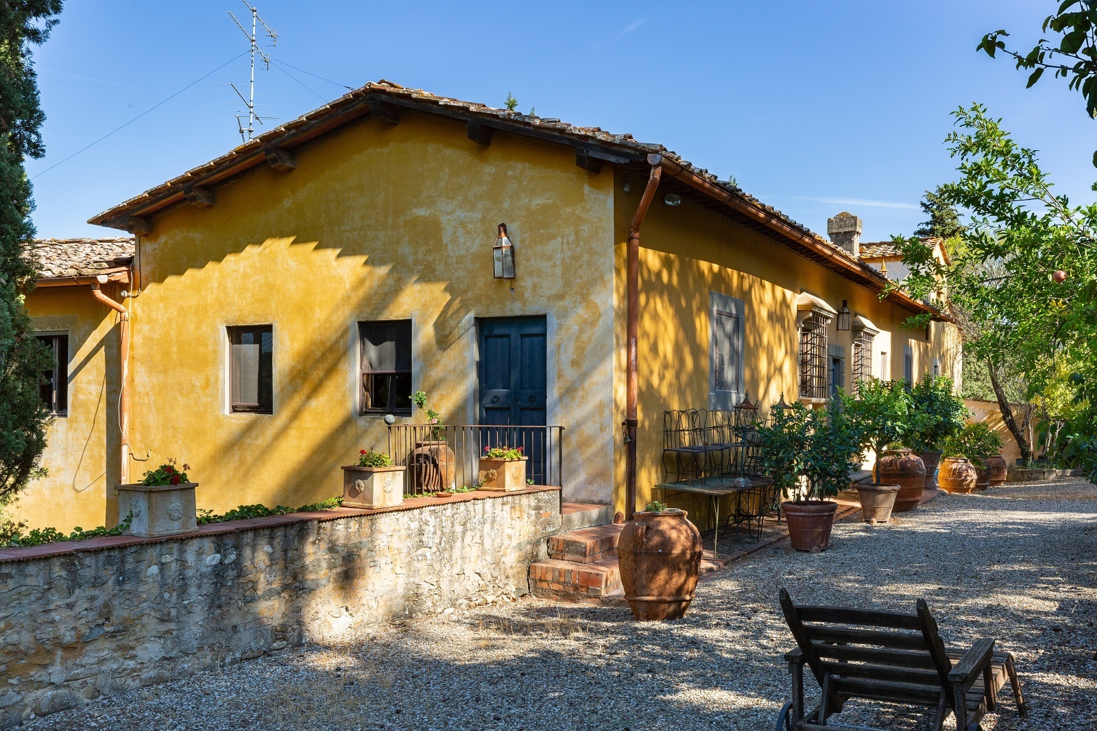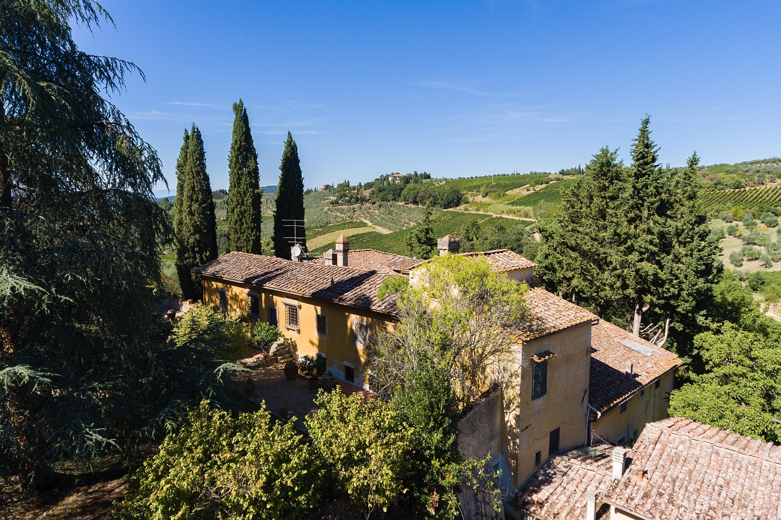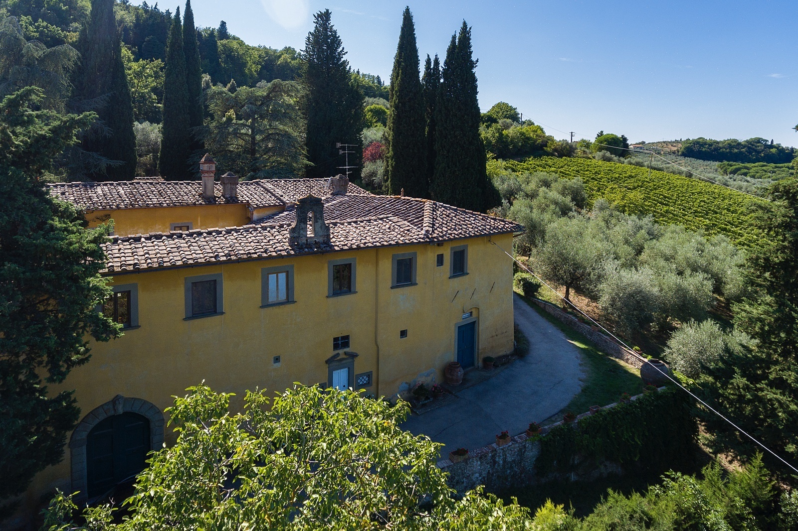 The historic villa in Chianti Fiorentino with the main part in a good state of maintenance and where there is still the small private chapel. This dwelling with adjacent service part with cellars and jar store, immersed in Sangiovese vineyards, in the place known all over the world, the symbol of Tuscany, represented by villas, farmhouses, vineyards, olive trees and cypresses – a true bucolic picture.