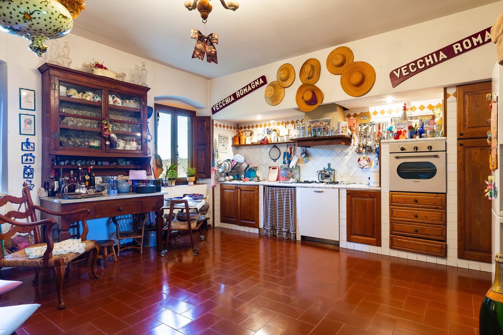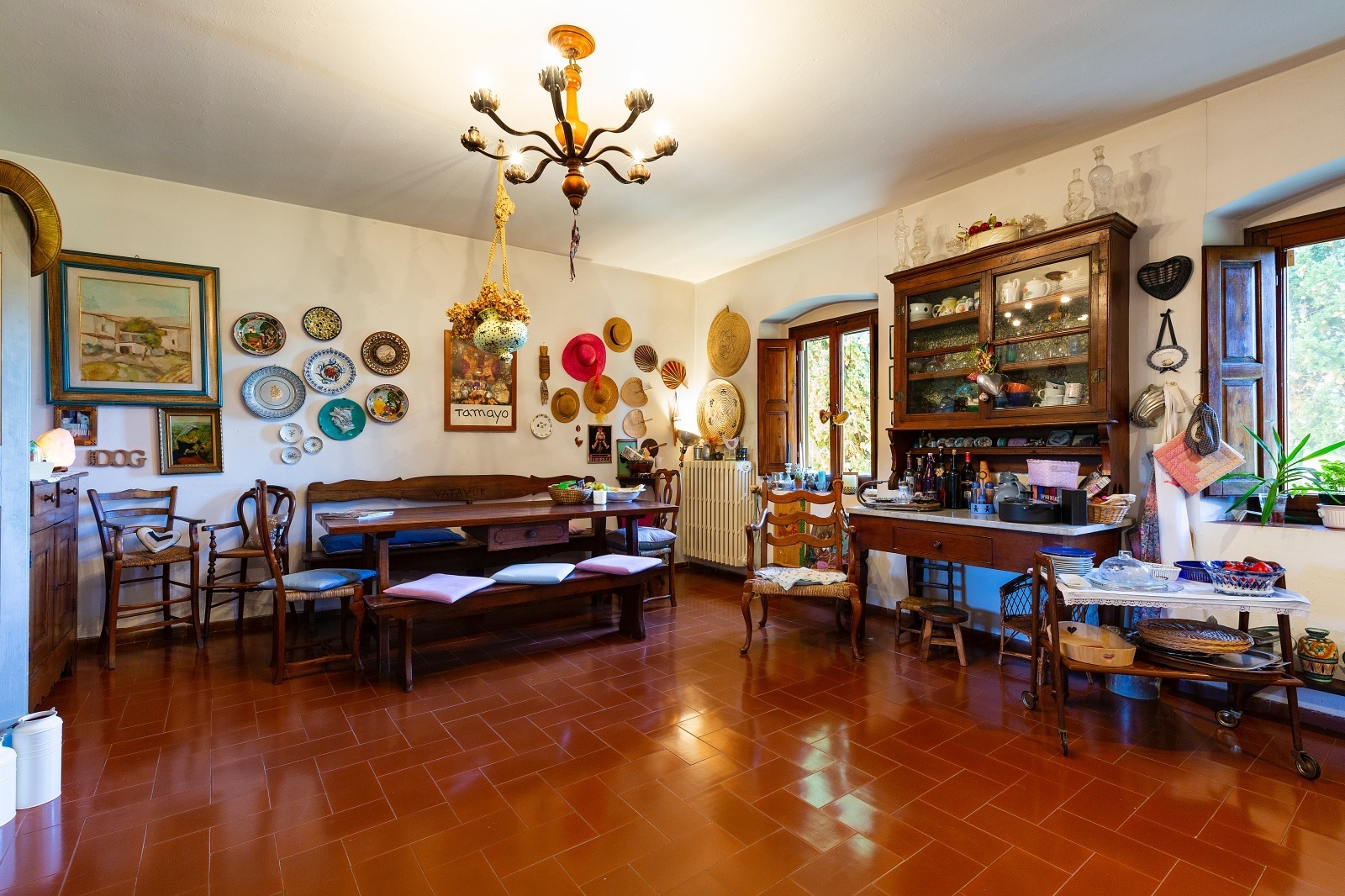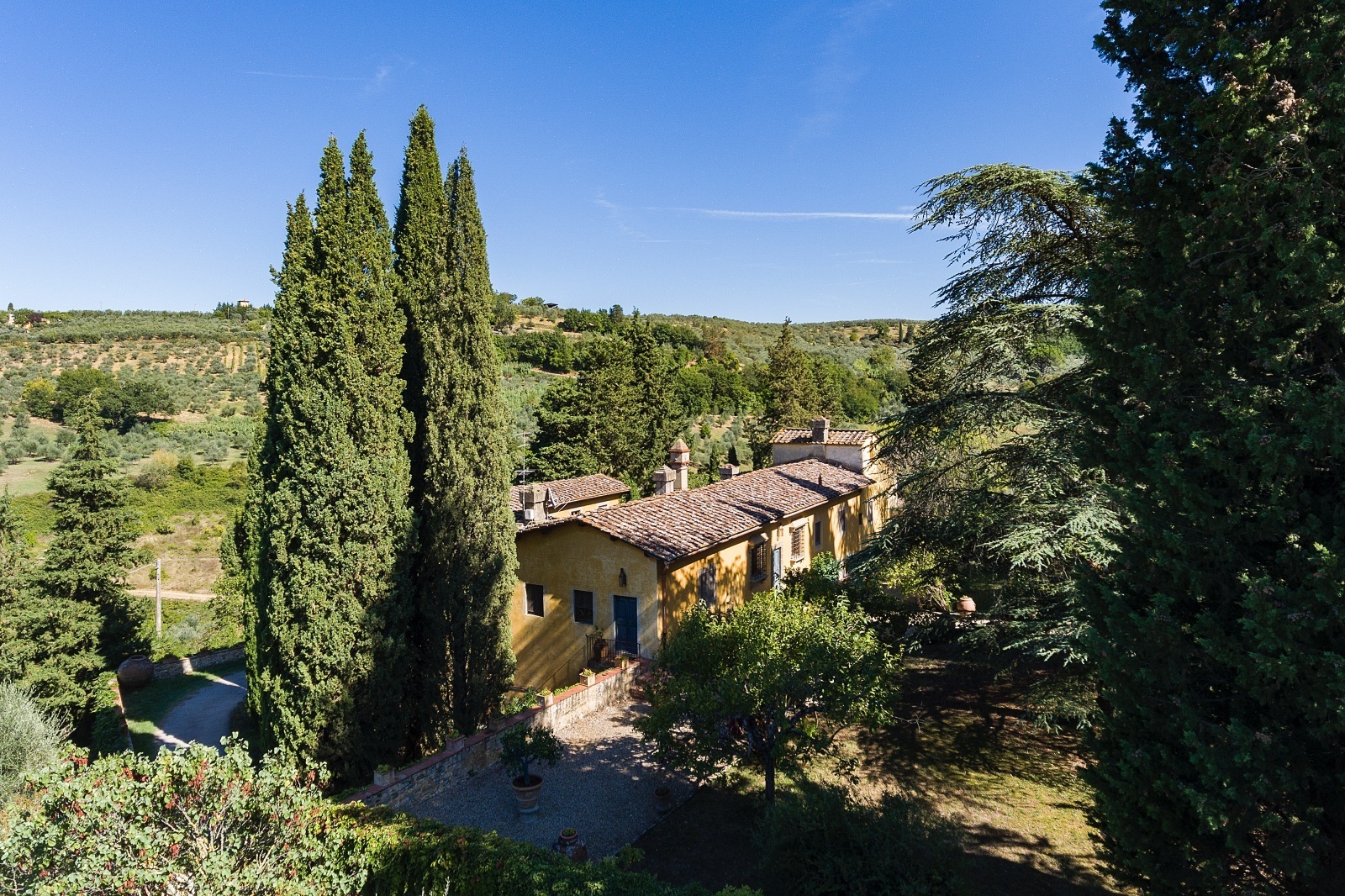 The historic villa in Chianti Fiorentino with the main part in a good state of maintenance and where there is still the small private chapel. This dwelling with adjacent service part with cellars and jar store, immersed in Sangiovese vineyards, in the place known all over the world, the symbol of Tuscany, represented by villas, farmhouses, vineyards, olive trees and cypresses – a true bucolic picture.