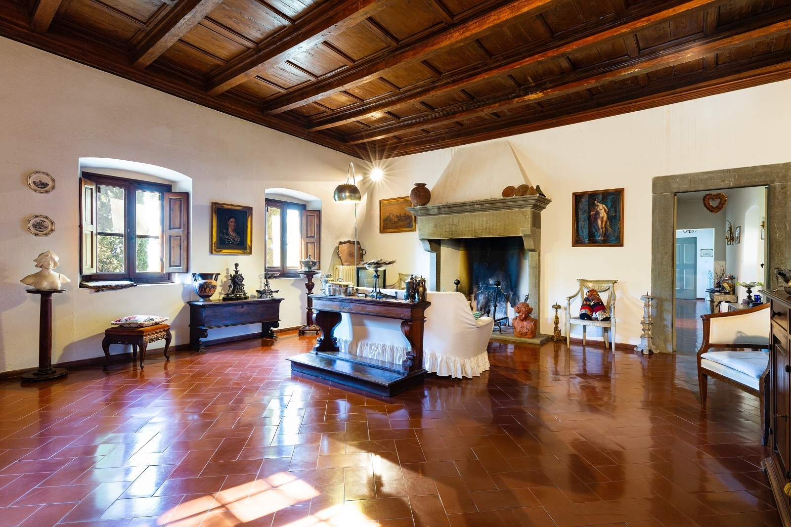The villa is in fair condition despite the time that has passed has left its mark in some parts of the house, while the structure is generally in good condition. The old stone fireplaces, wooden coffered ceilings and typical Tuscan terracotta floors are of great value.