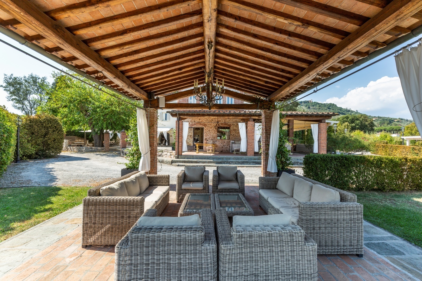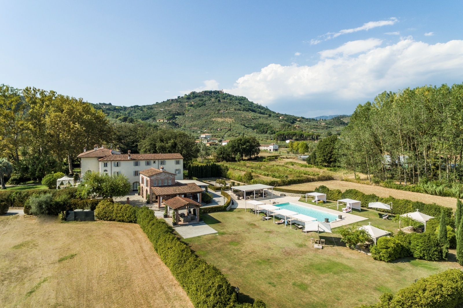 Located in a strategic position for reaching all services and a short distance from famous Montecatini Terme and close to the great cultural capitals such as Florence and Pisa, which are about 45 minutes by car. In less than half an hour you can reach the airports of Pisa and Florence. Immersed in the quiet of the Tuscan countryside, the villa offers maximum privacy and tranquillity.