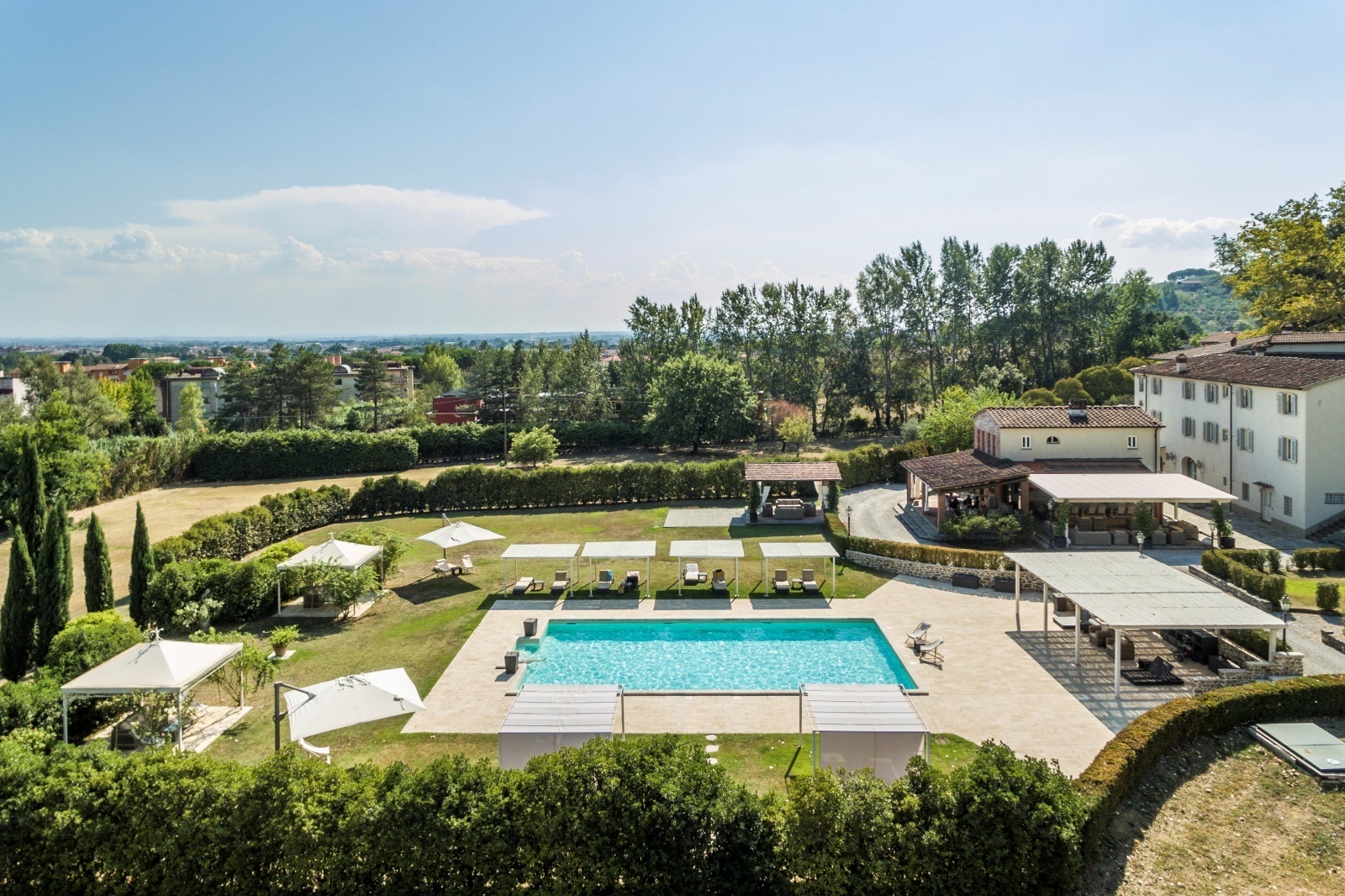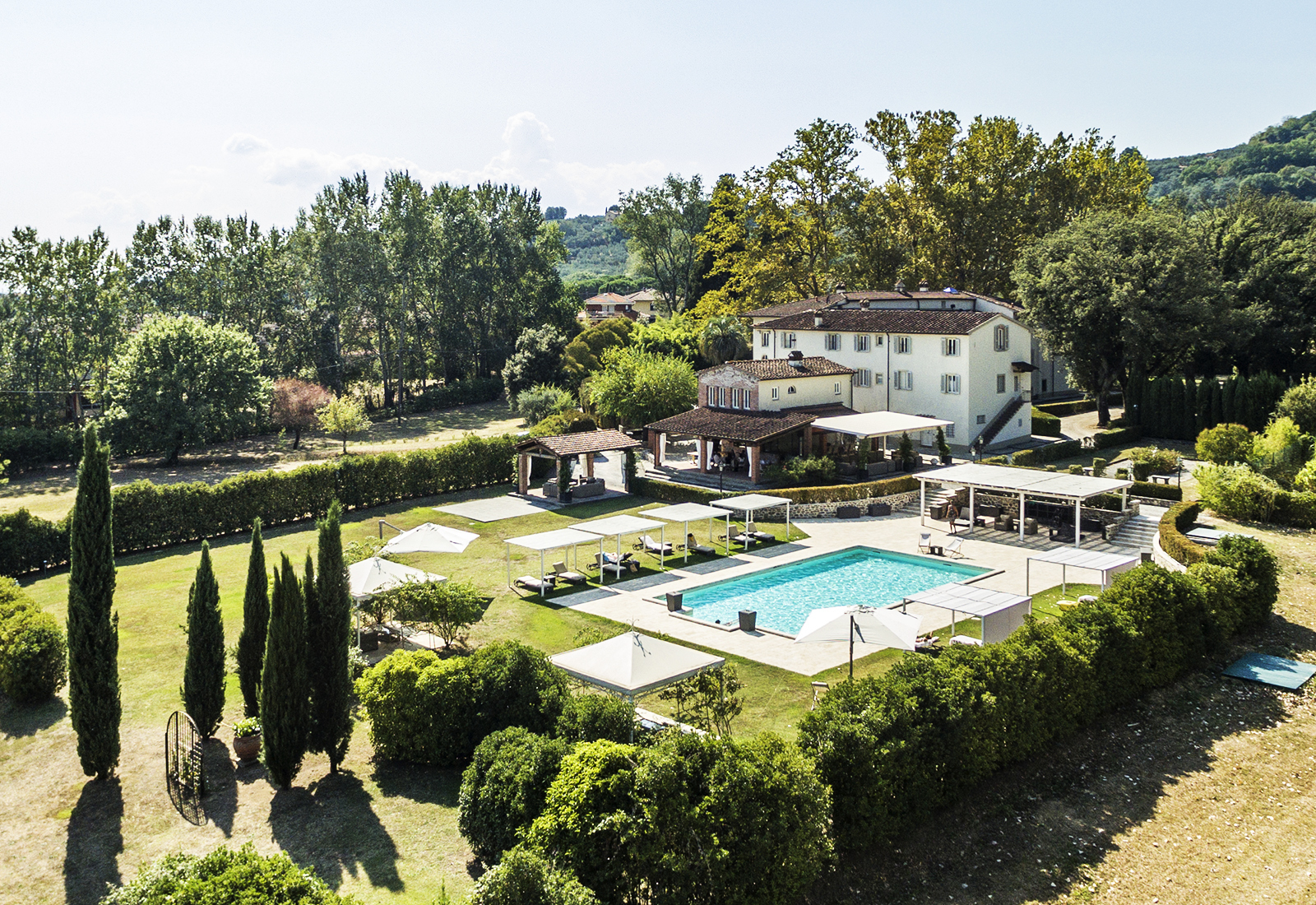 The swimming pool is completely surrounded by the hills of the Val di Nievole.