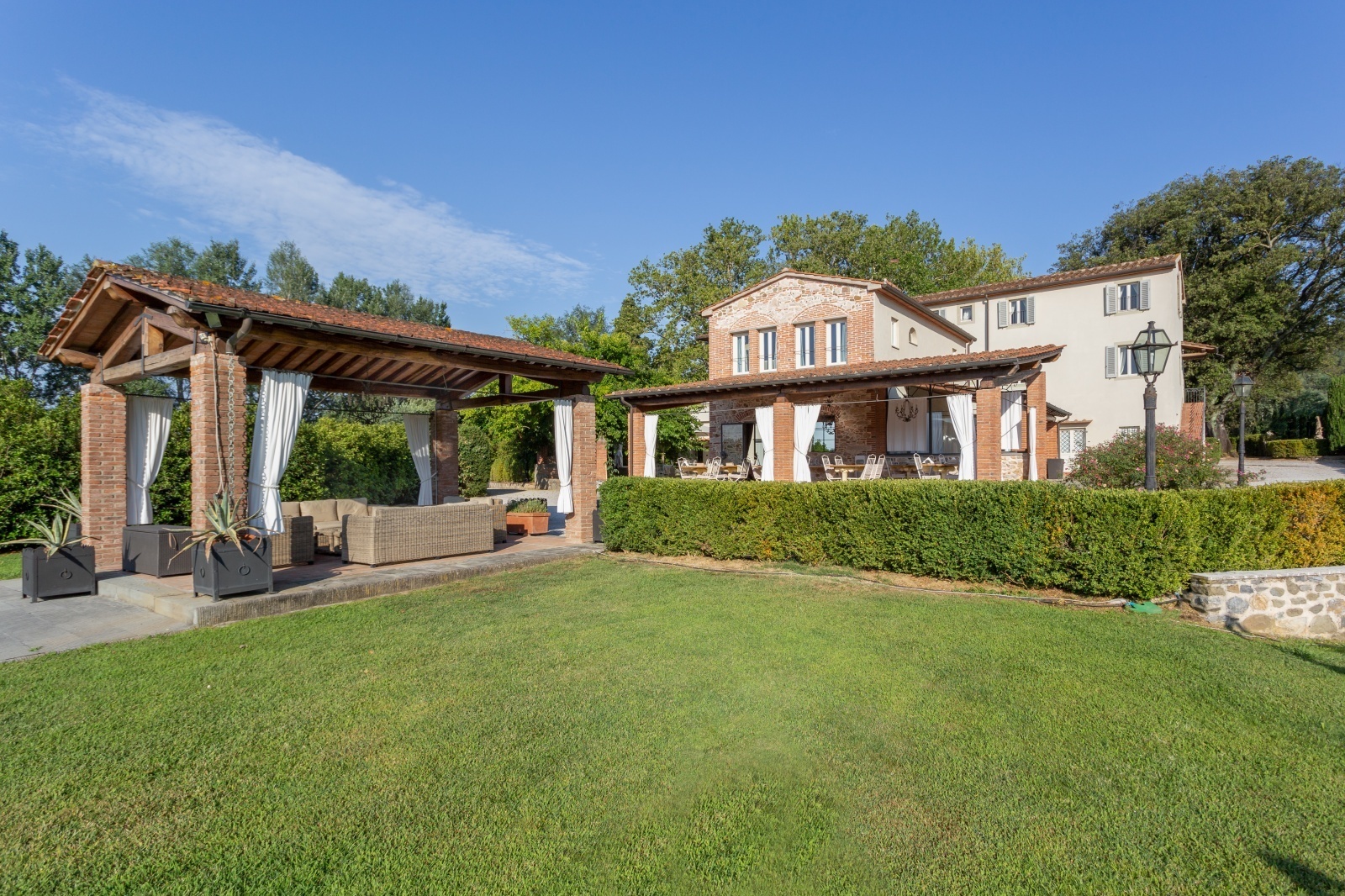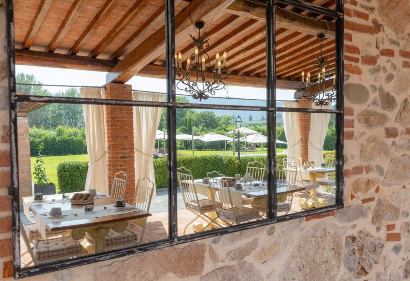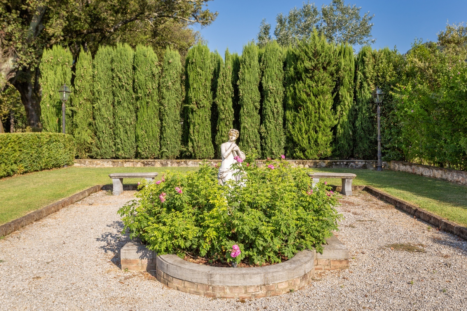Walking in the large Italian garden, among the shadows of cypresses and mulberry trees, it is easy to find your own serenity. Water features games and perfectly preserved ancient statues are the background to natural paths where flowers and fruit trees create patches of lovely colour.