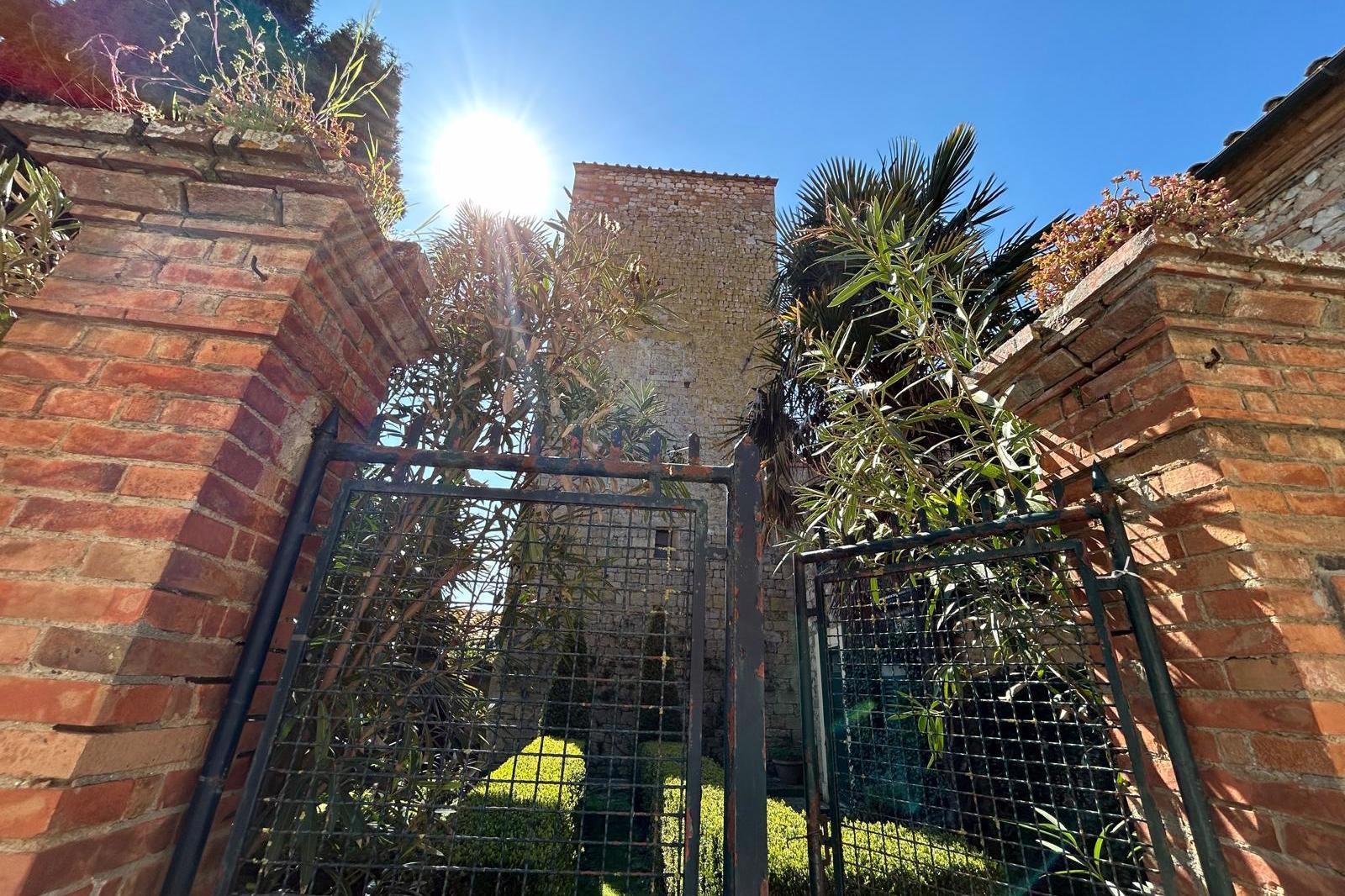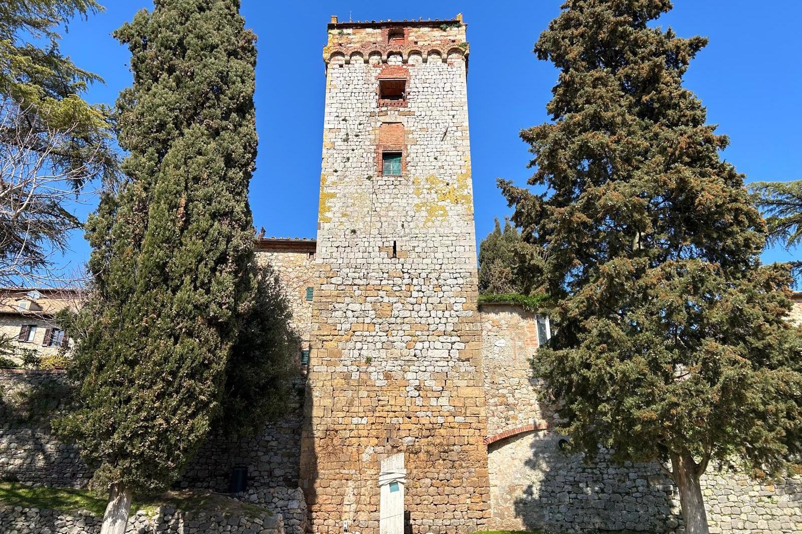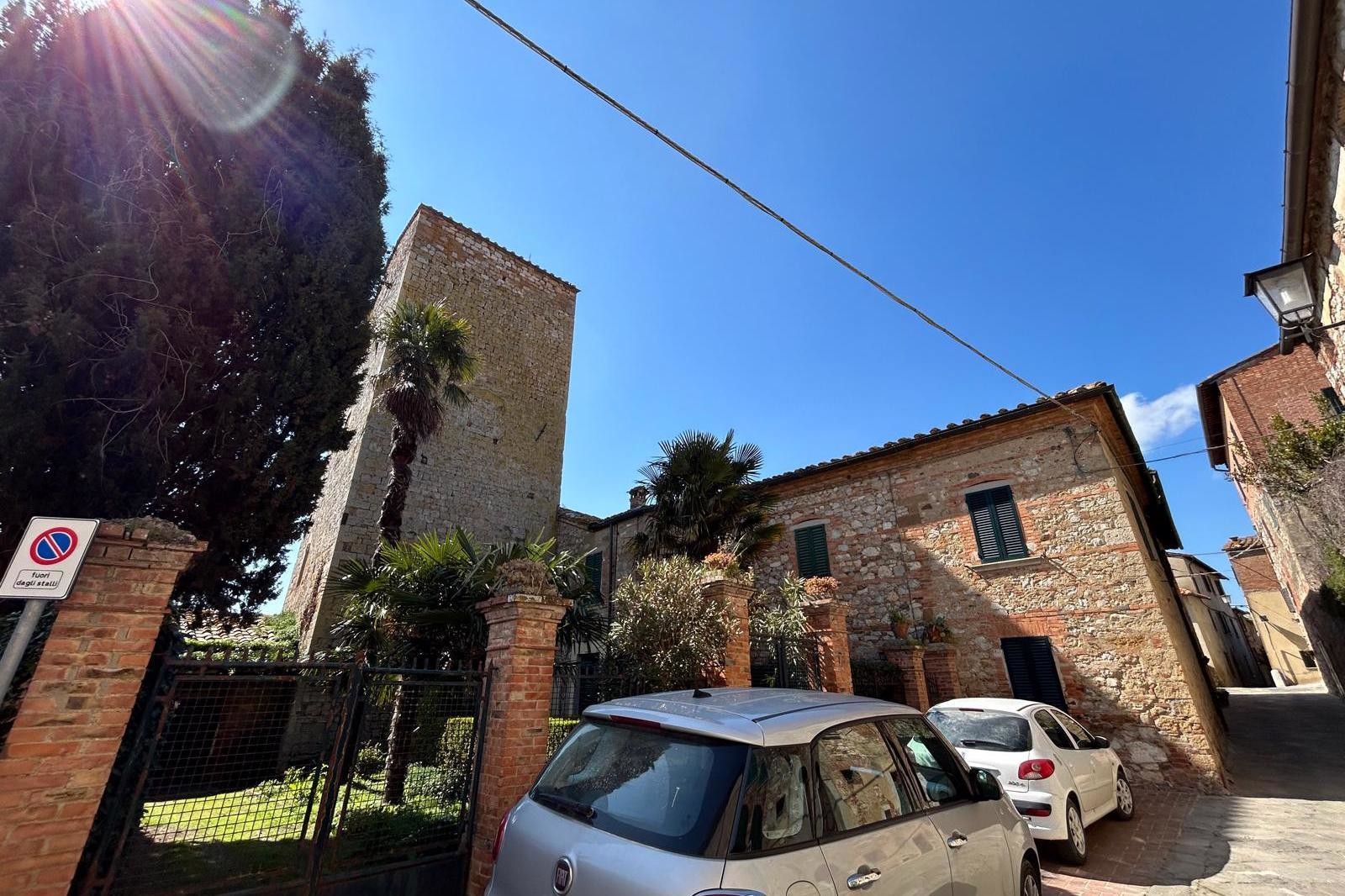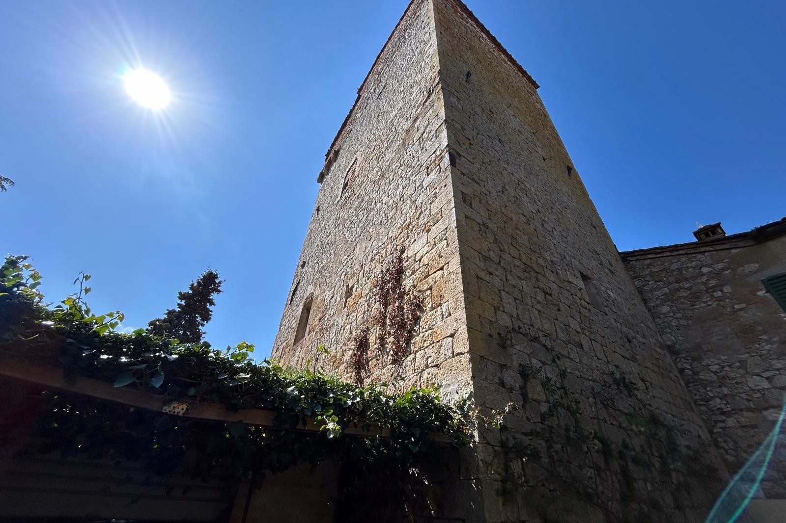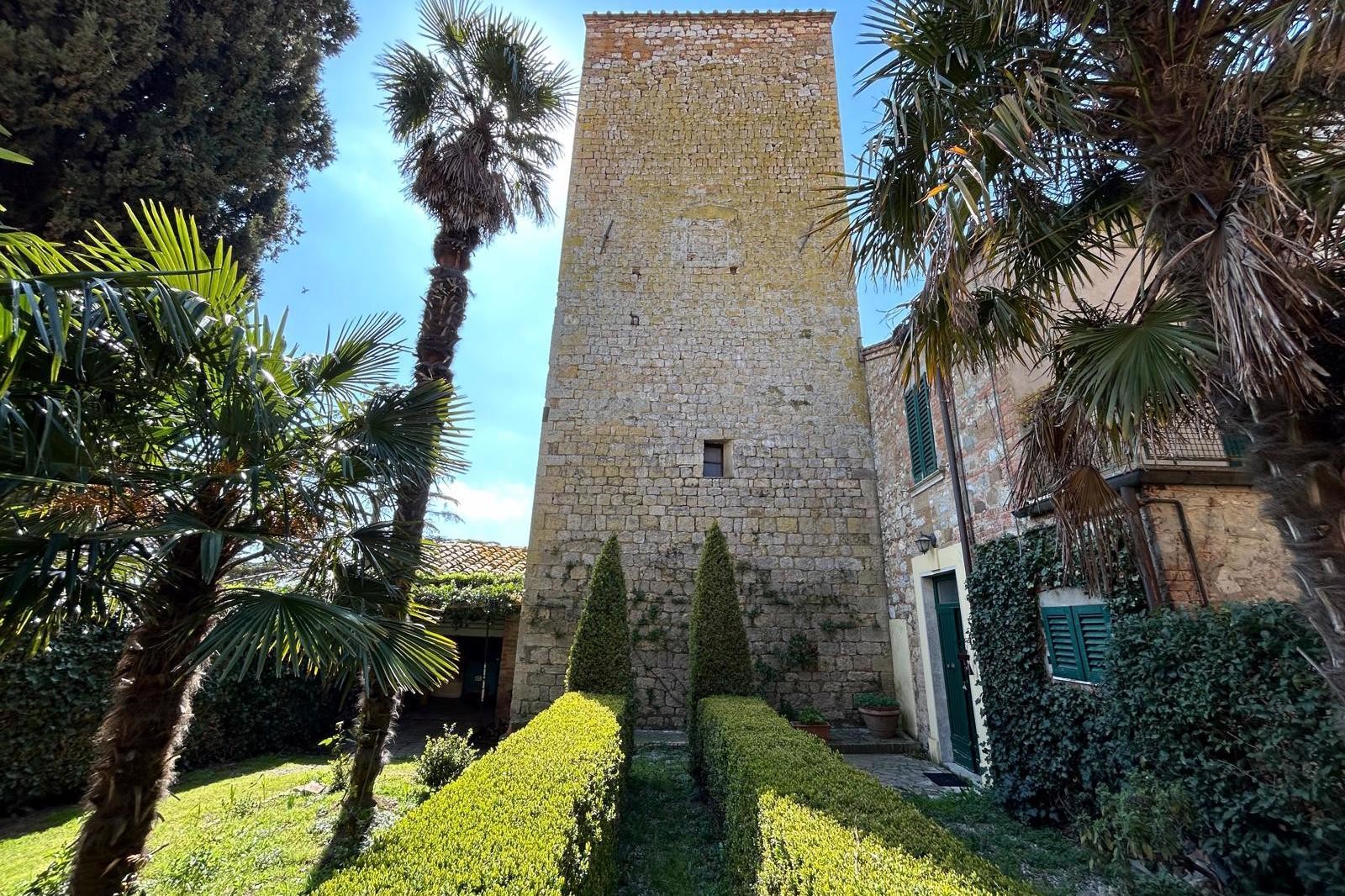 Imposing former watchtower dating back to the 1200s near the beautiful historic centre of Montefollonico, in the Siena province of Tuscany.