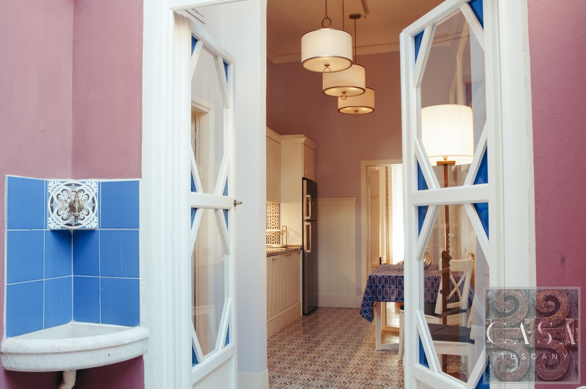 An entrance hall leads to a colourful kitchen with pantry and door to a small but attractive internal courtyard for quiet, cool breakfasts.