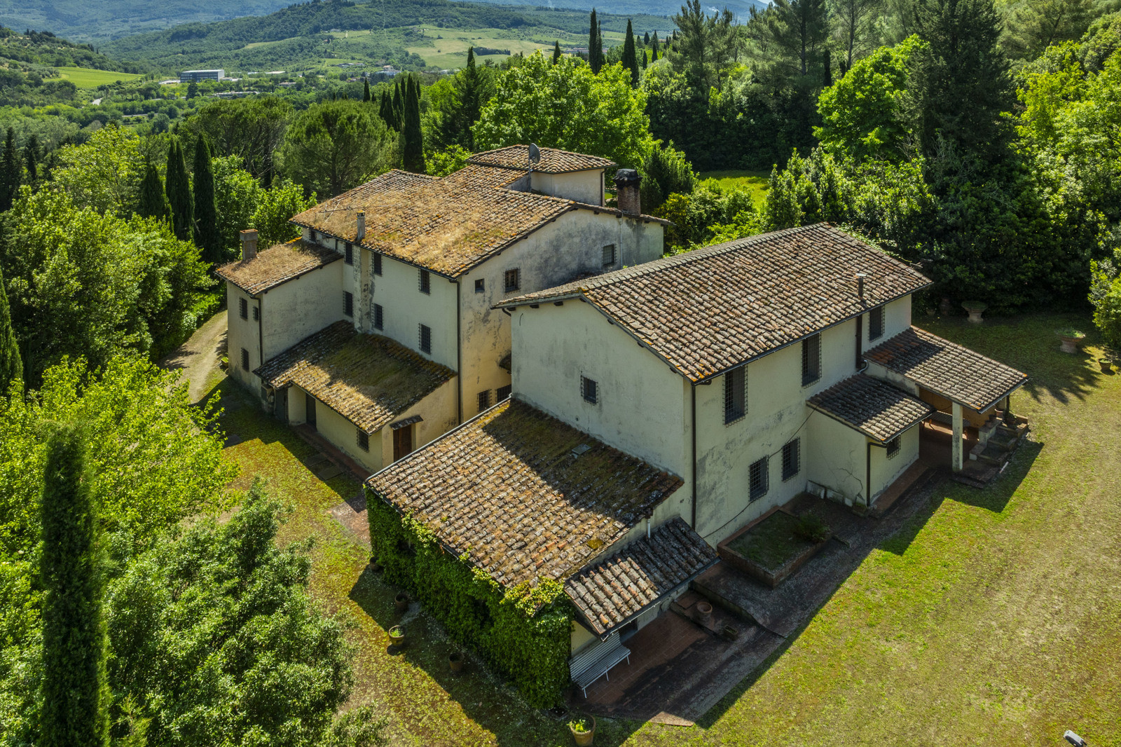 The first complex consists of the main villa of about 740 sqm, an old 19th-century convent converted into a stately manor house, which currently houses two units that could be rejoined into one large house.