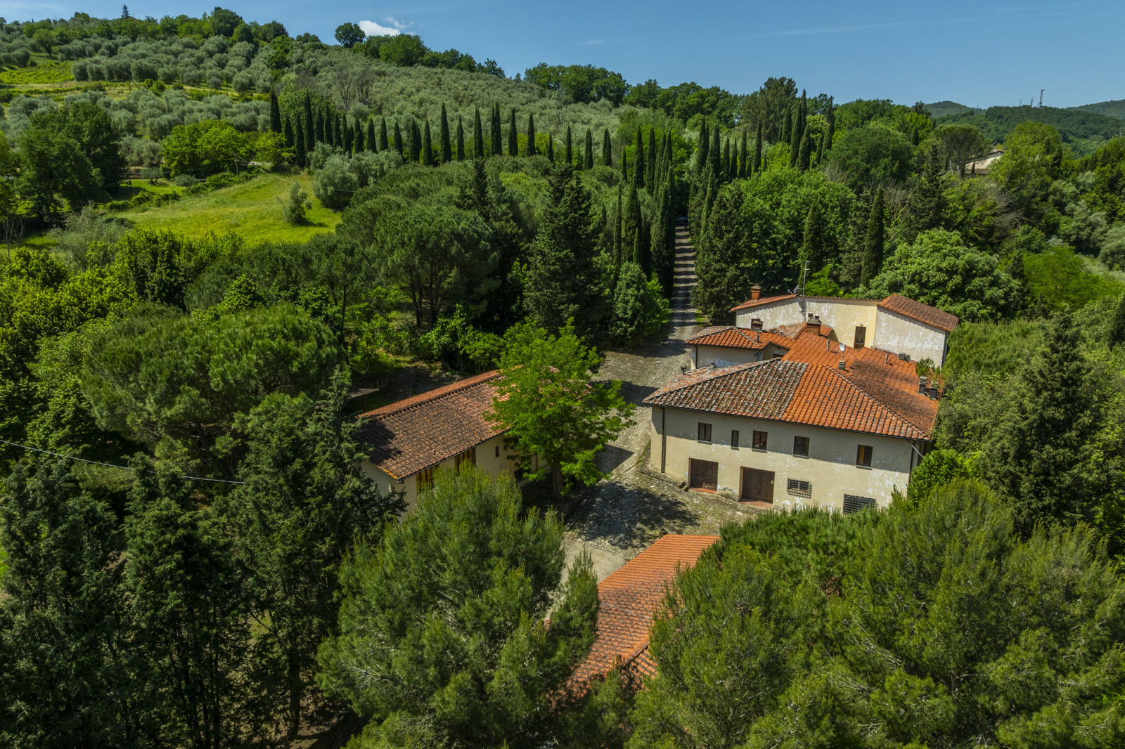 A beautiful old farm a short distance from Florence consisting of three parts, with riding stables and land with an olive grove and Chianti dei Colli Fiorentini vineyard.