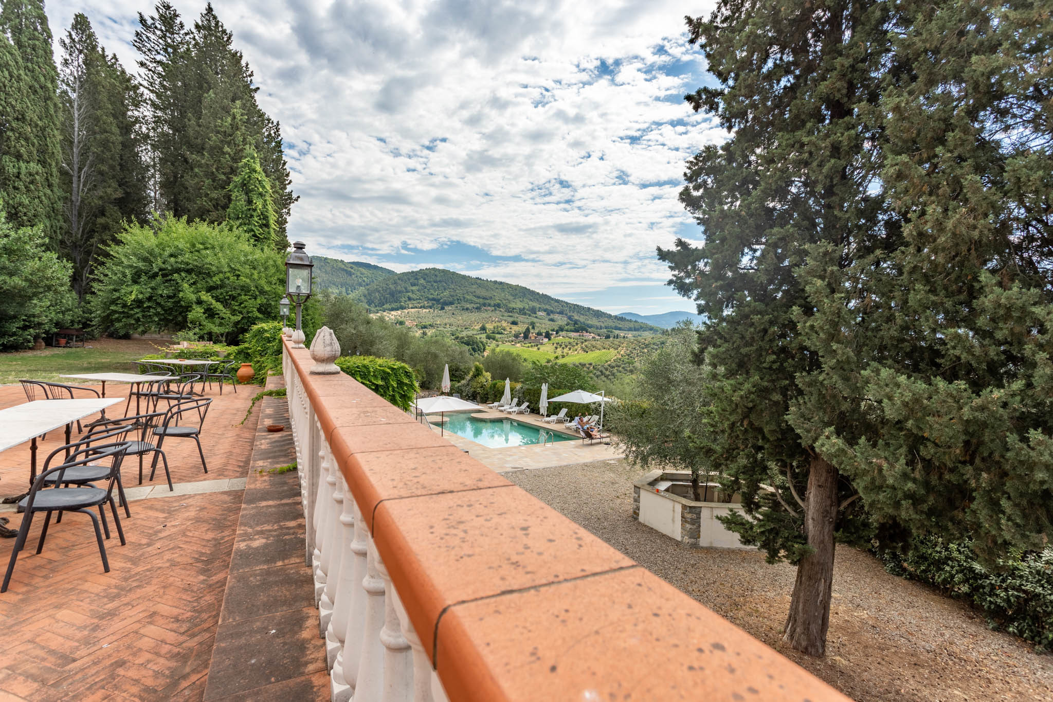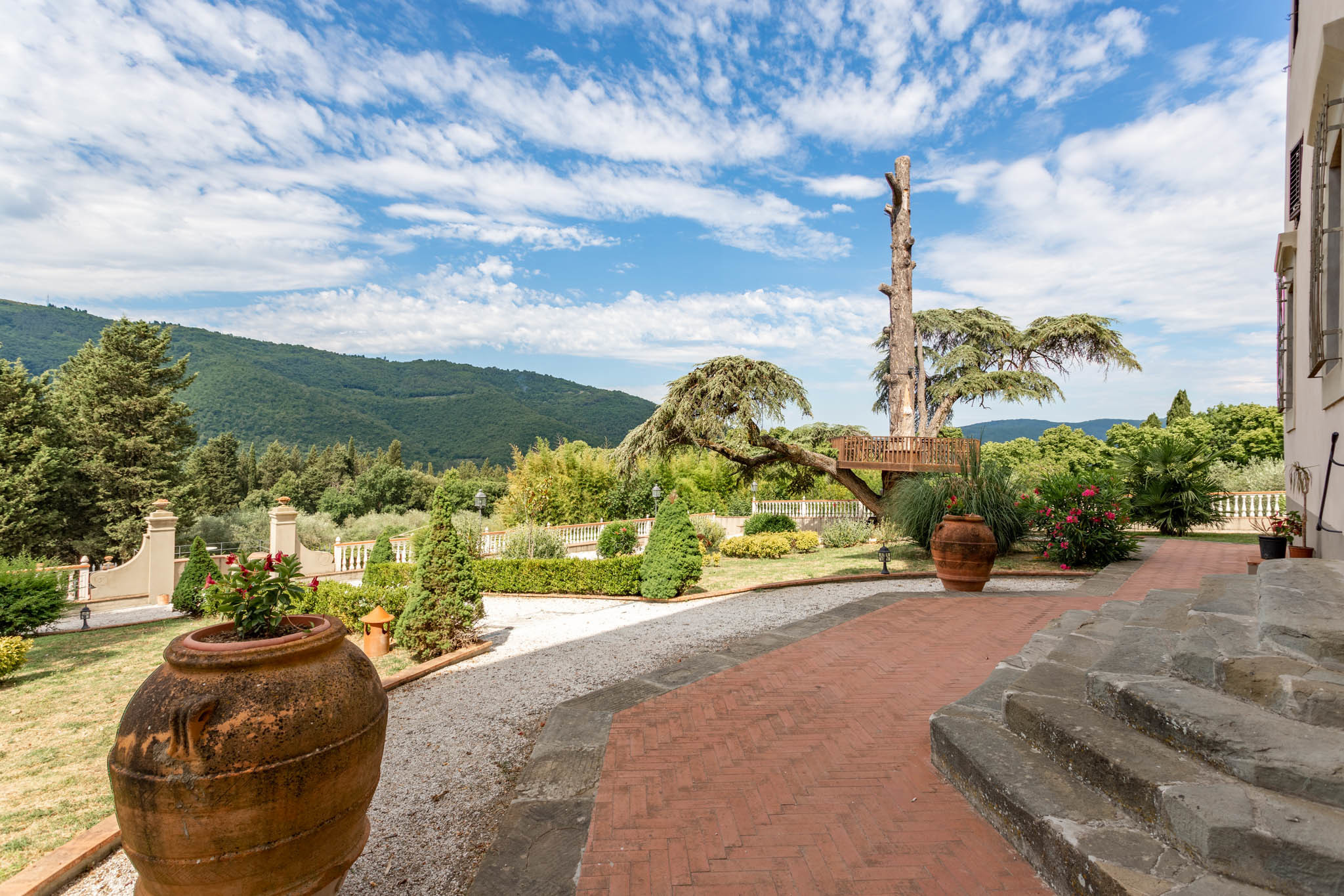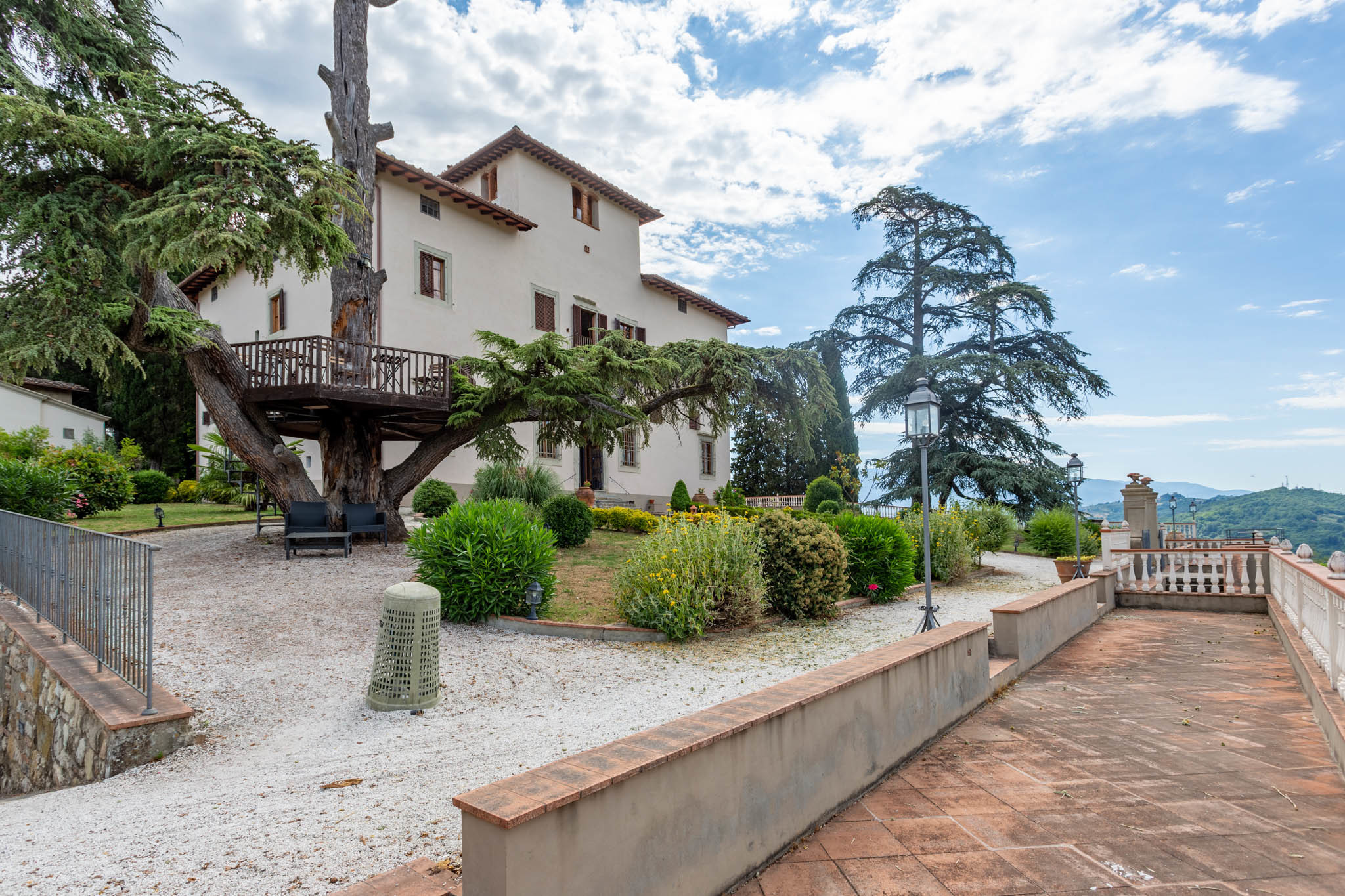 The villa is surrounded by the majestic Italian garden with an impressive driveway and immersed in its centuries-old park of cypresses and beech trees. There is a tree terrace and an extensive surrounding olive grove.