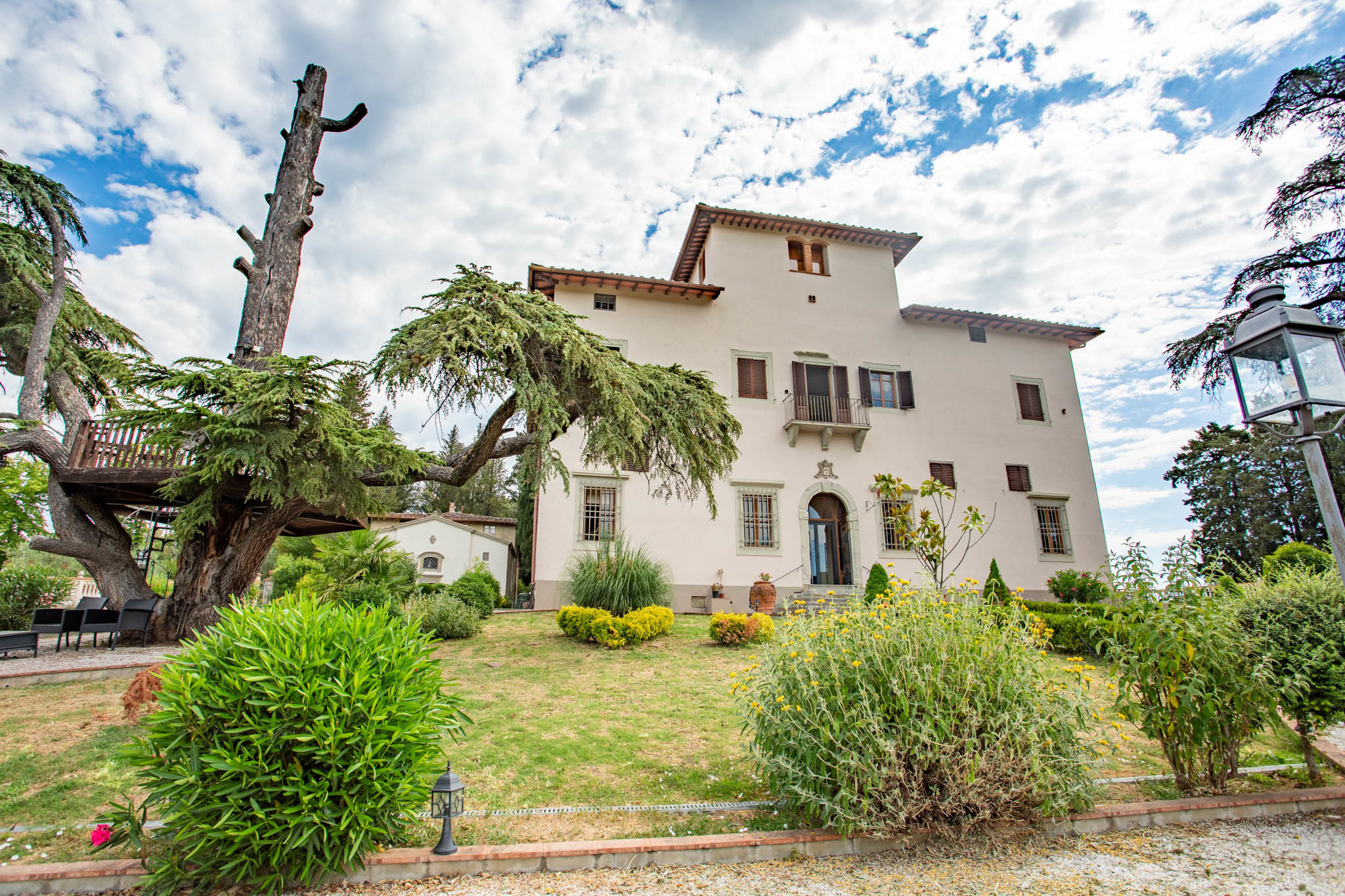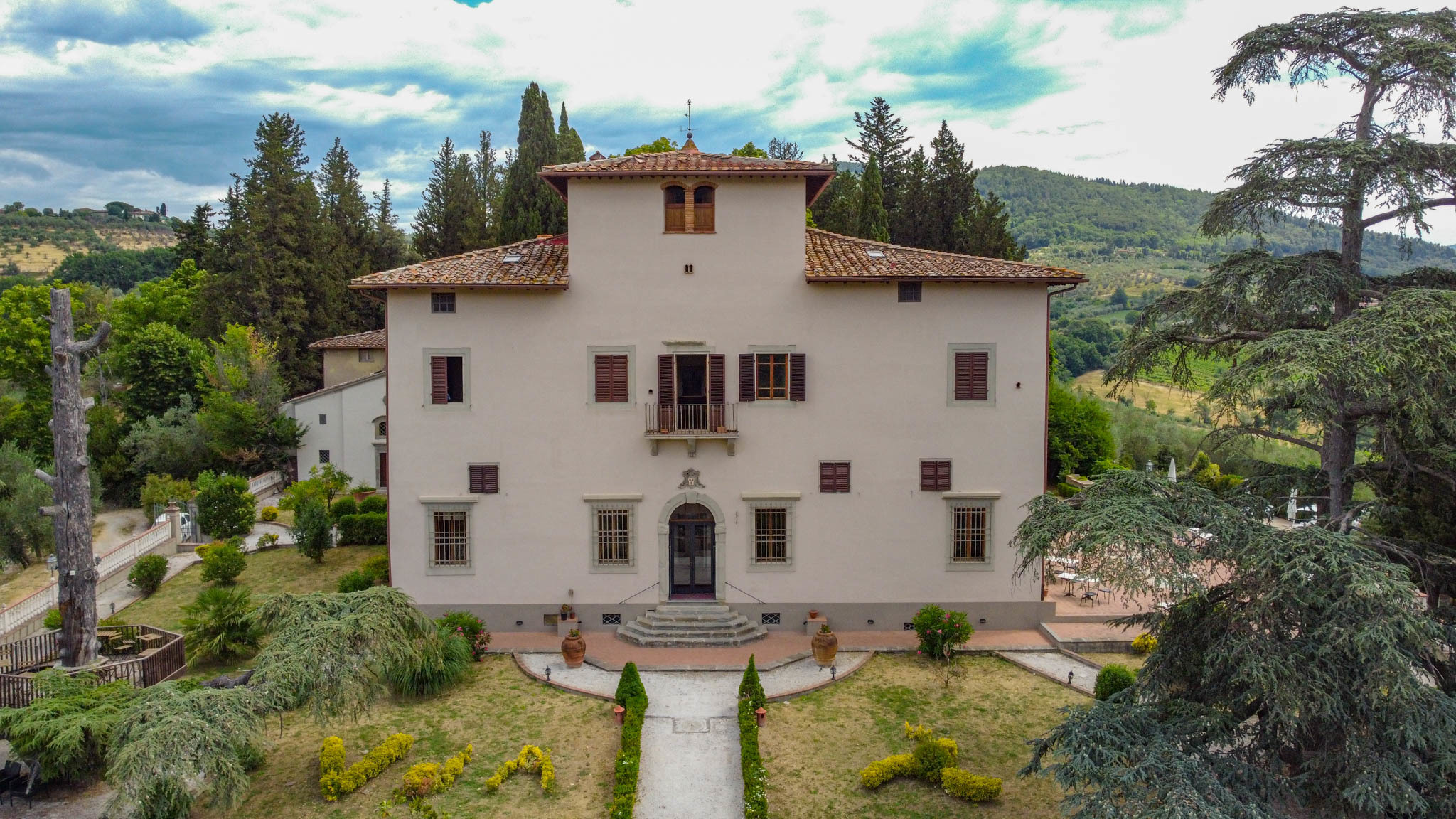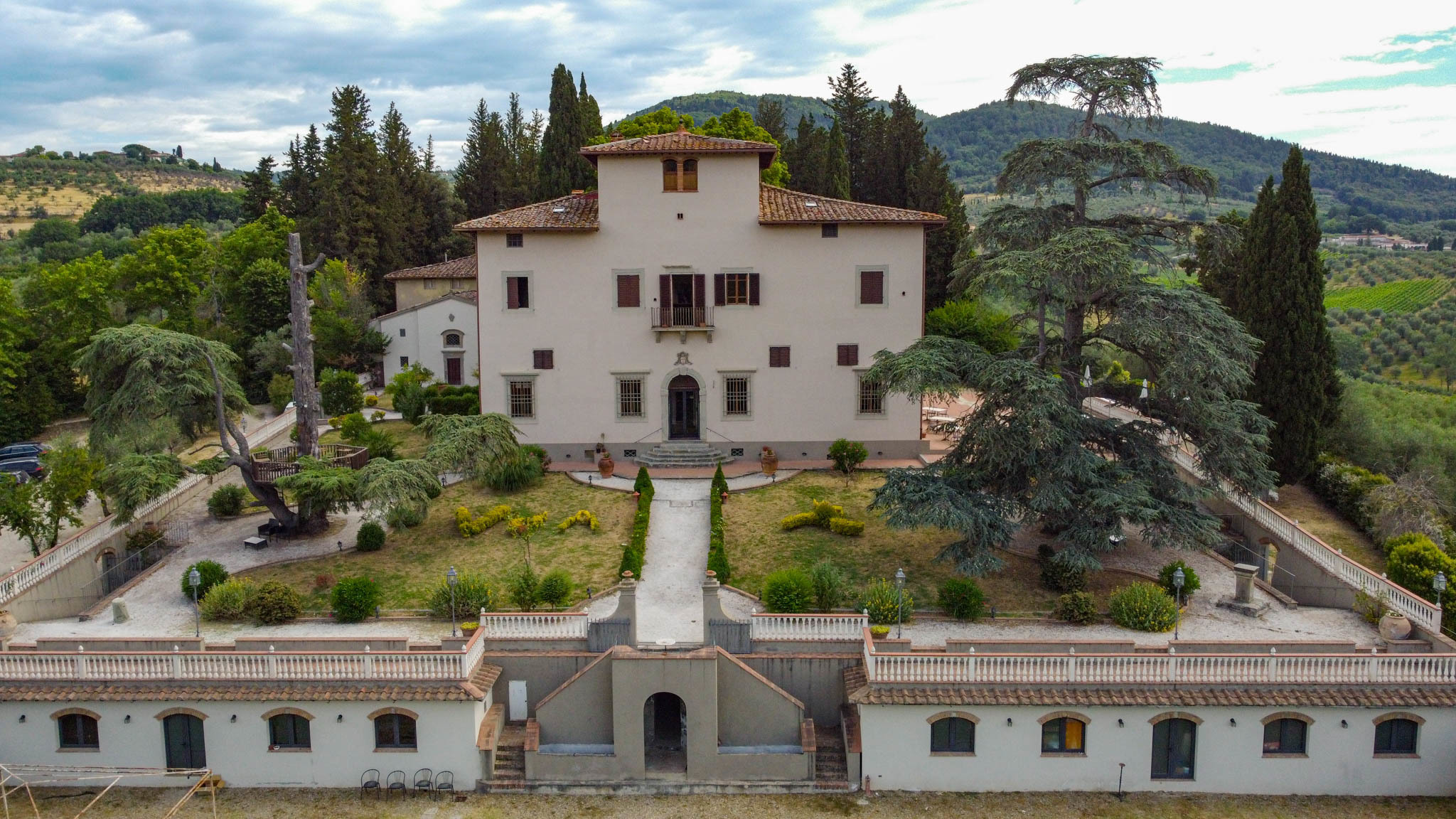 Prestigious historic restored villa of about 2000 sqm in the very first hills above Florence. Recently used as agri-resort with restaurant, Italian garden, large swimming pool and spa under construction.
