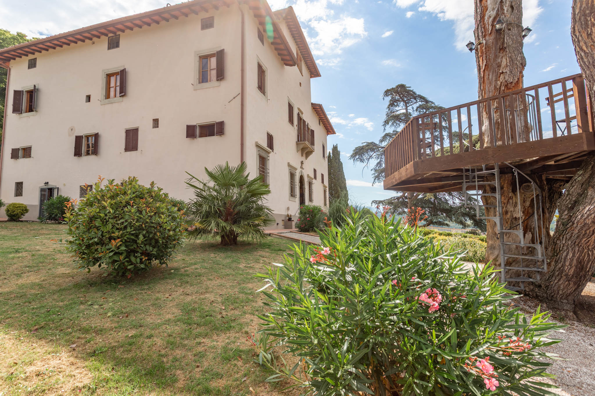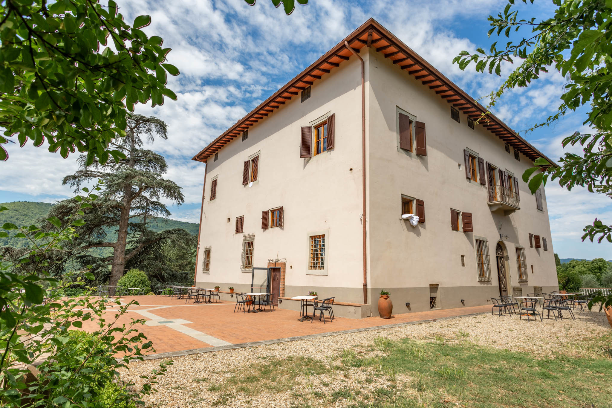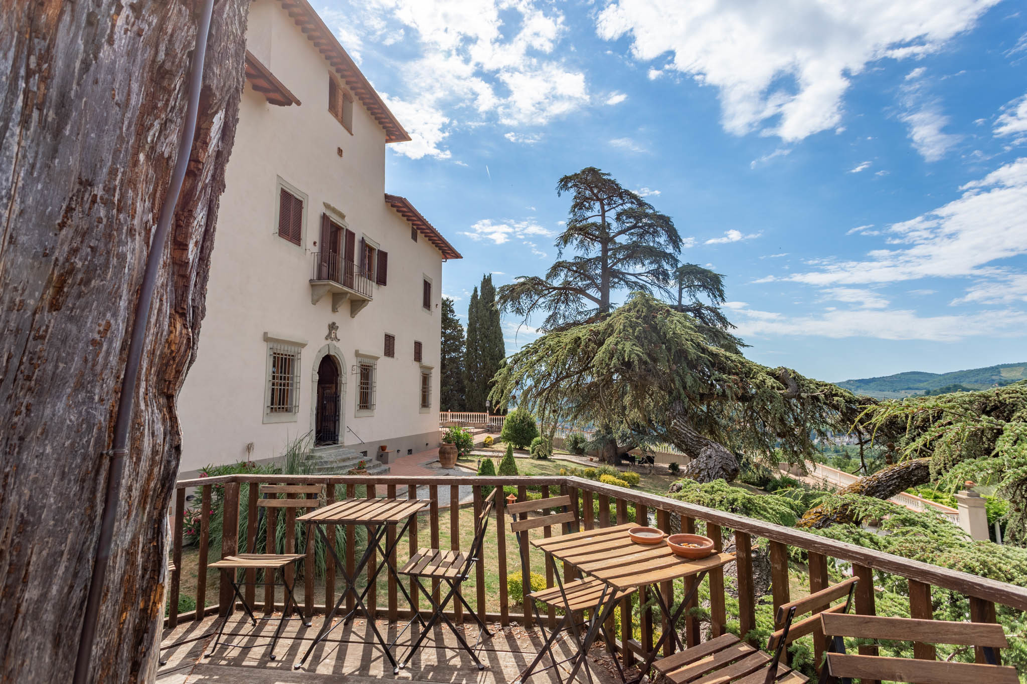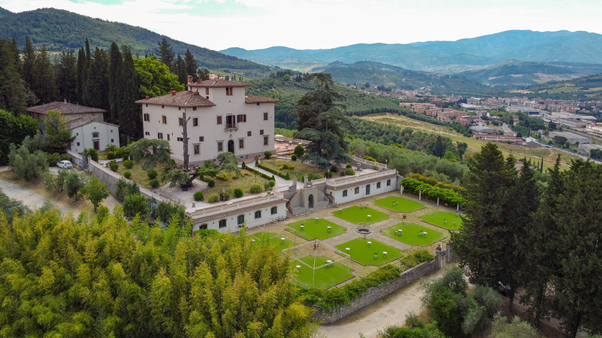 Prestigious historic restored villa of about 2000 sqm in the very first hills above Florence. Recently used as agri-resort with restaurant, Italian garden, large swimming pool and spa under construction.