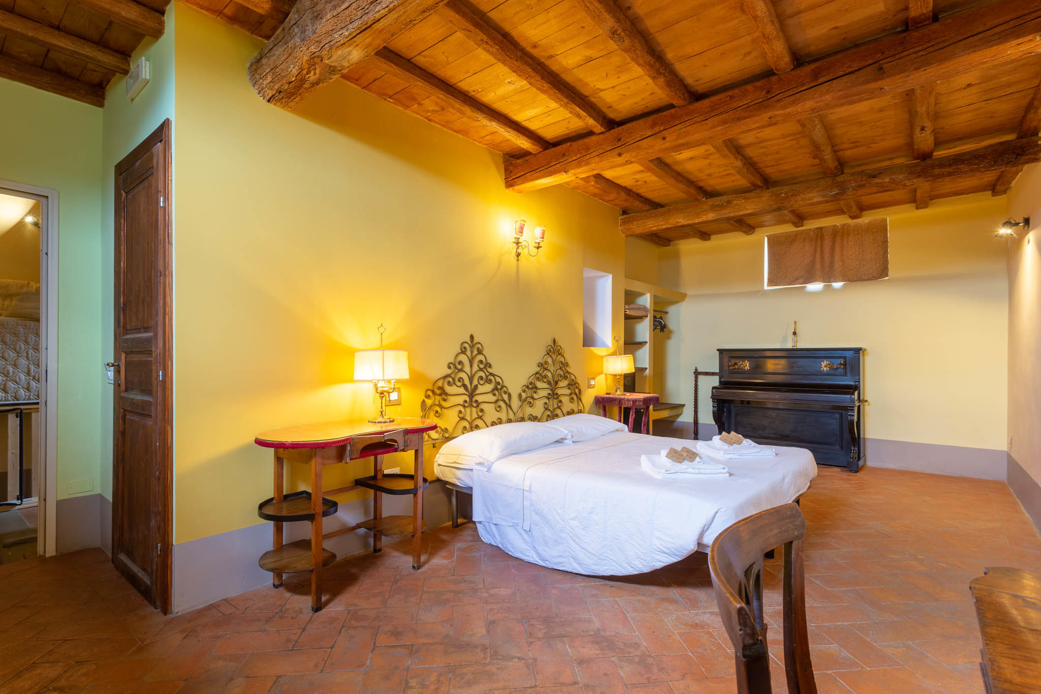The rooms were restored with attention to every detail and have a warm and welcoming atmosphere. The rooms in classic Tuscan style are furnished with period furniture, terracotta floors, antique wood fixtures, coffered or beamed ceilings and terracotta tiles, wall decorations.