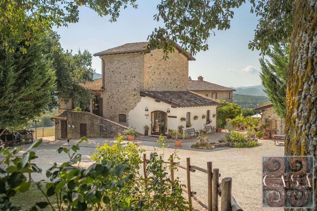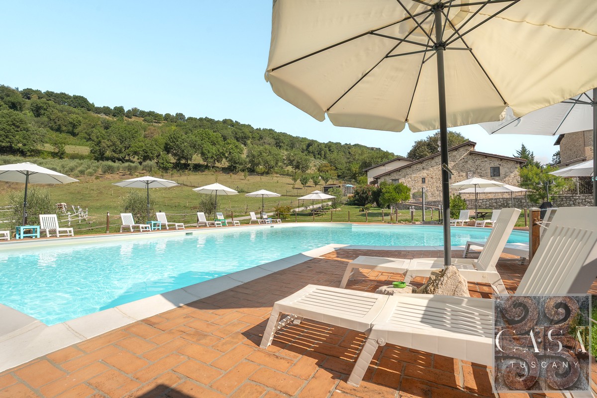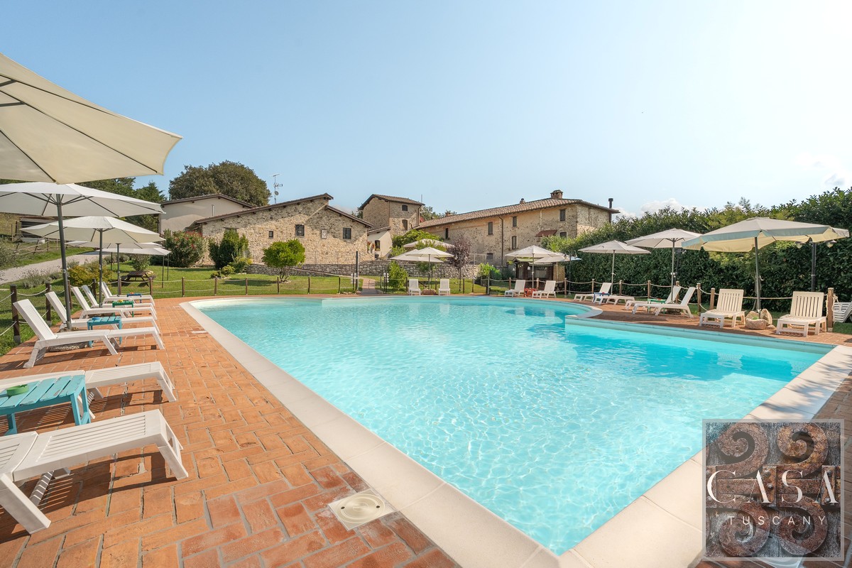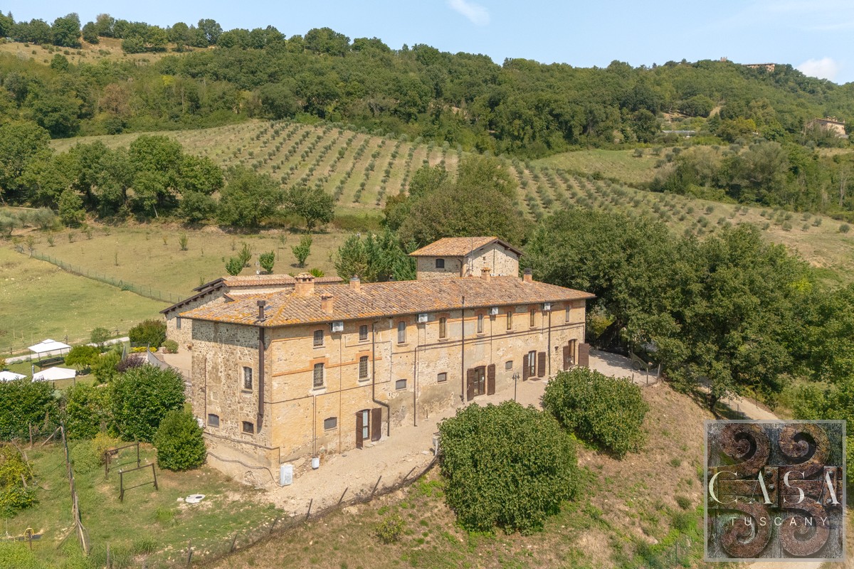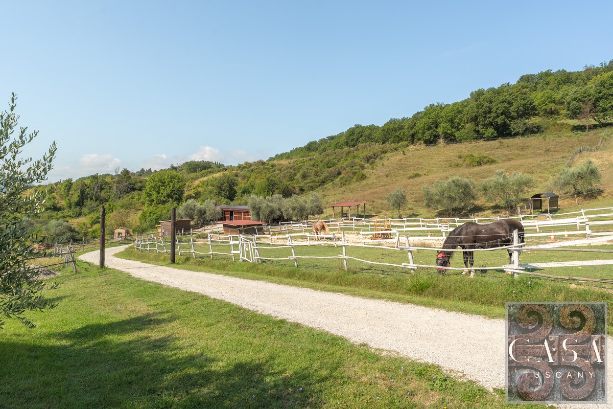 19th-century estate with stone farmhouse, guesthouse, swimming pool, land with olive grove, 6 horse stables, in Umbria, just minutes from the historic town of Umbertide.
