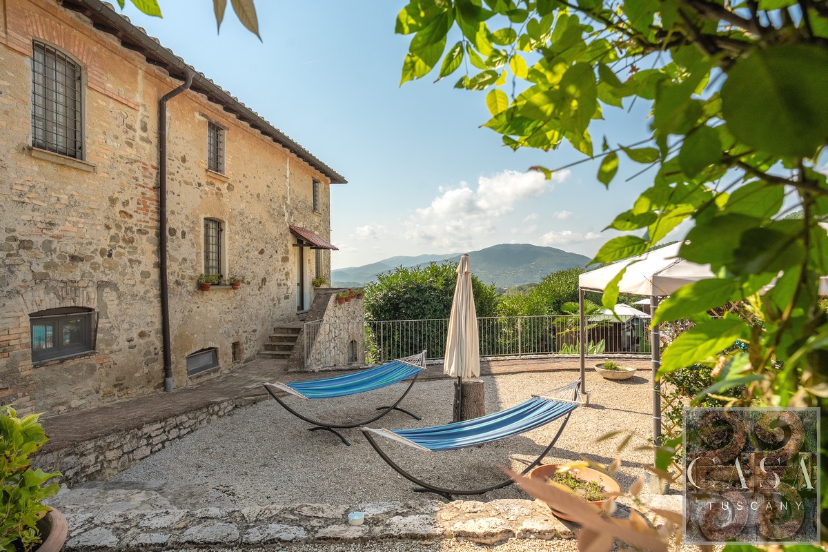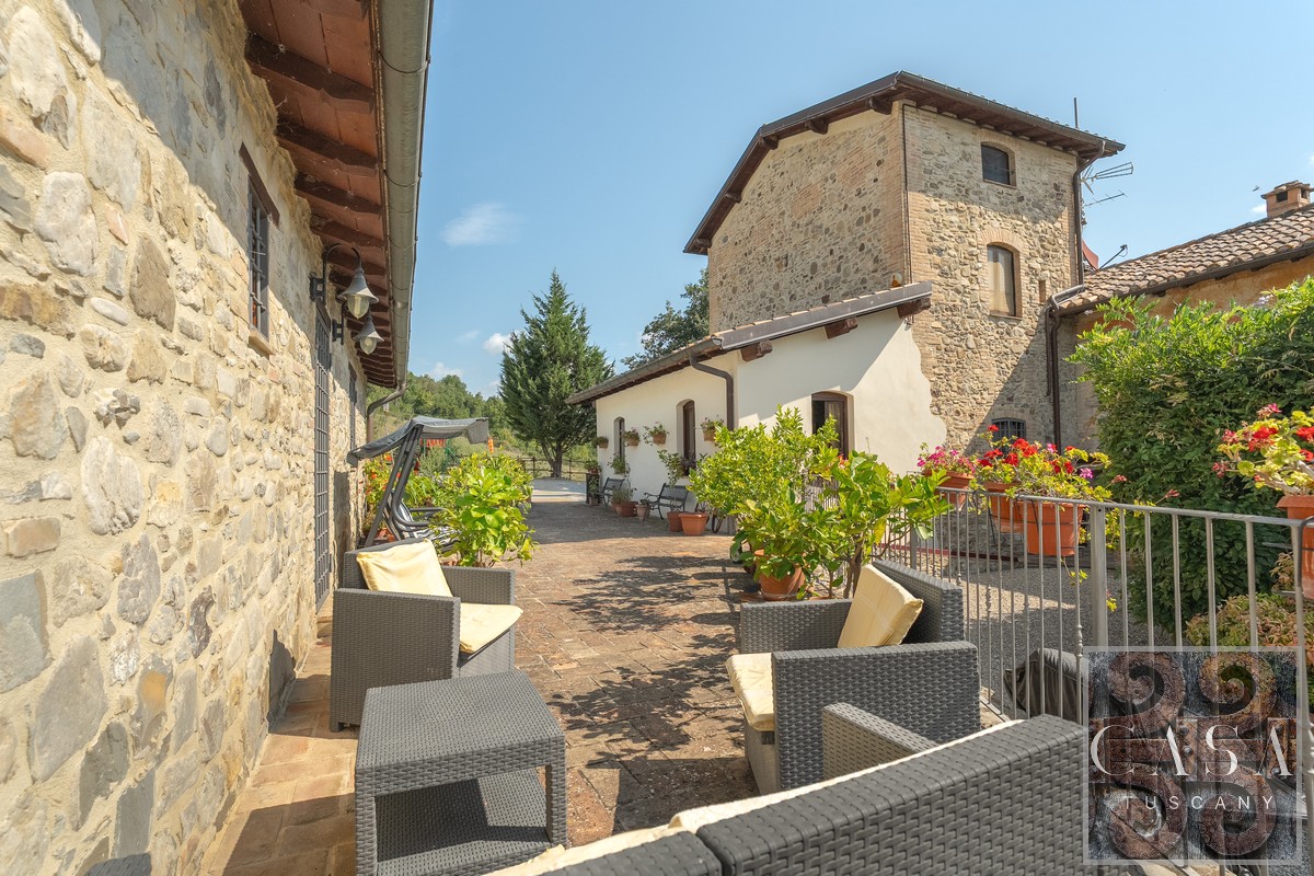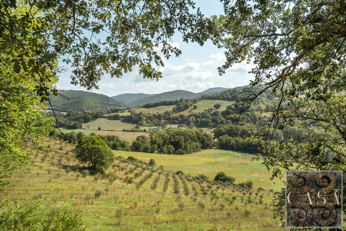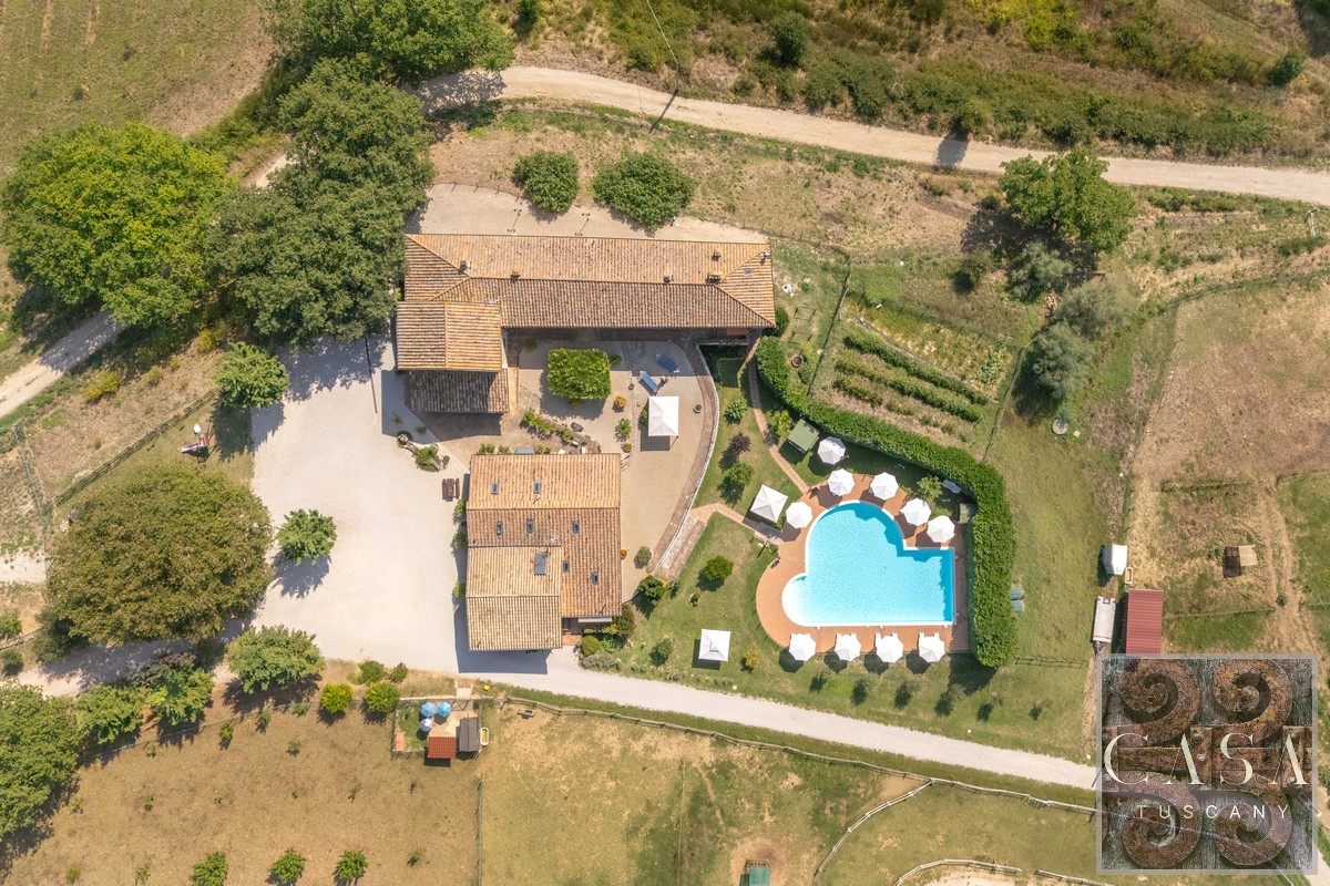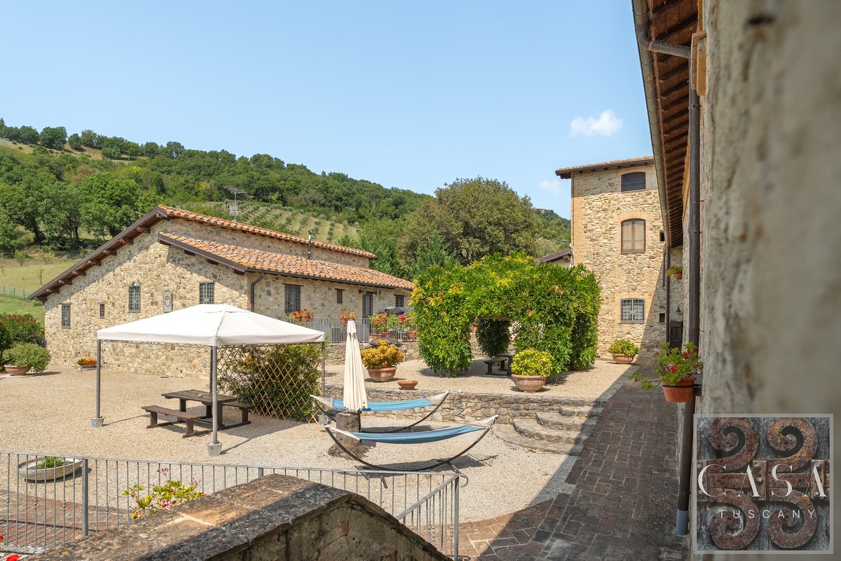 19th-century estate with stone farmhouse, guesthouse, swimming pool, land with olive grove, 6 horse stables, in Umbria, just minutes from the historic town of Umbertide.