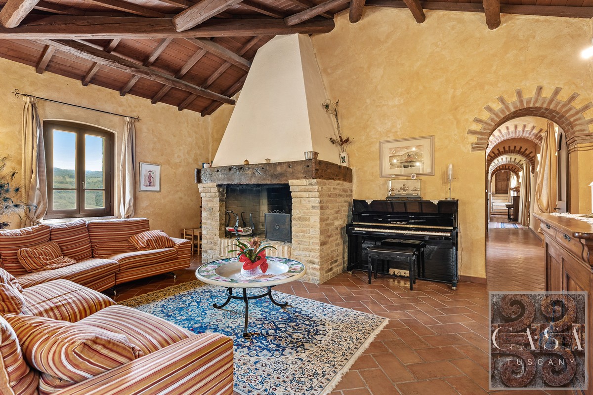 The interiors exude refinement and versatility, marrying the charm of traditional Umbrian architecture – period fireplaces, vaulted terracotta ceilings – with grand, welcoming spaces.