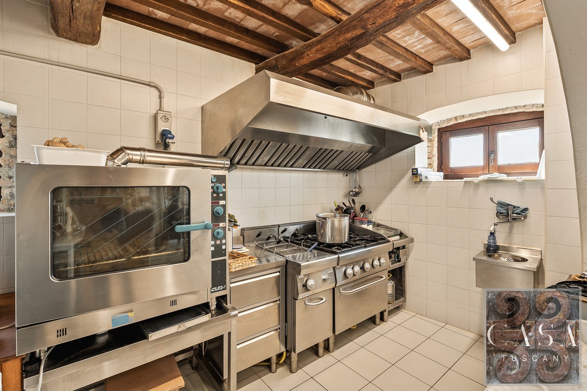 Ground Floor: large living room with bar area and fireplace; 3 bathrooms (one accessible for the disabled, one for staff), professional kitchen, pantry, hallway, 1 double bedroom with independent entrance and en-suite bathroom, technical room.