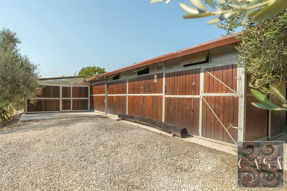 – Stable (200 sqm/2,150 sq ft): 6 horse stalls (3 x 3 m each, equipped with feeder and waterer), covered area with horse shower; equipment storage; tack room; water cistern.