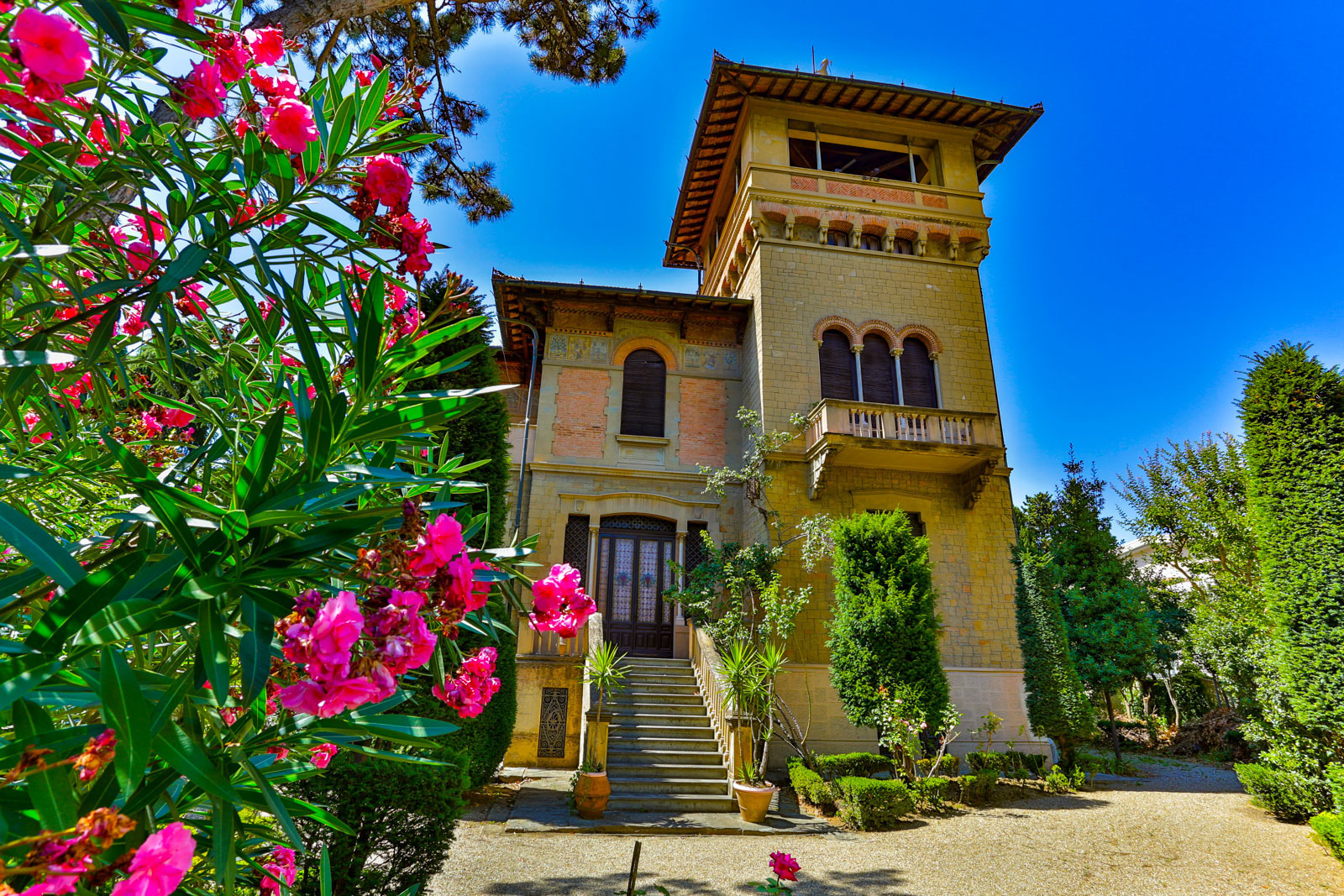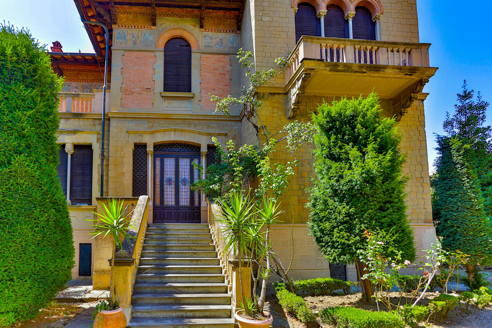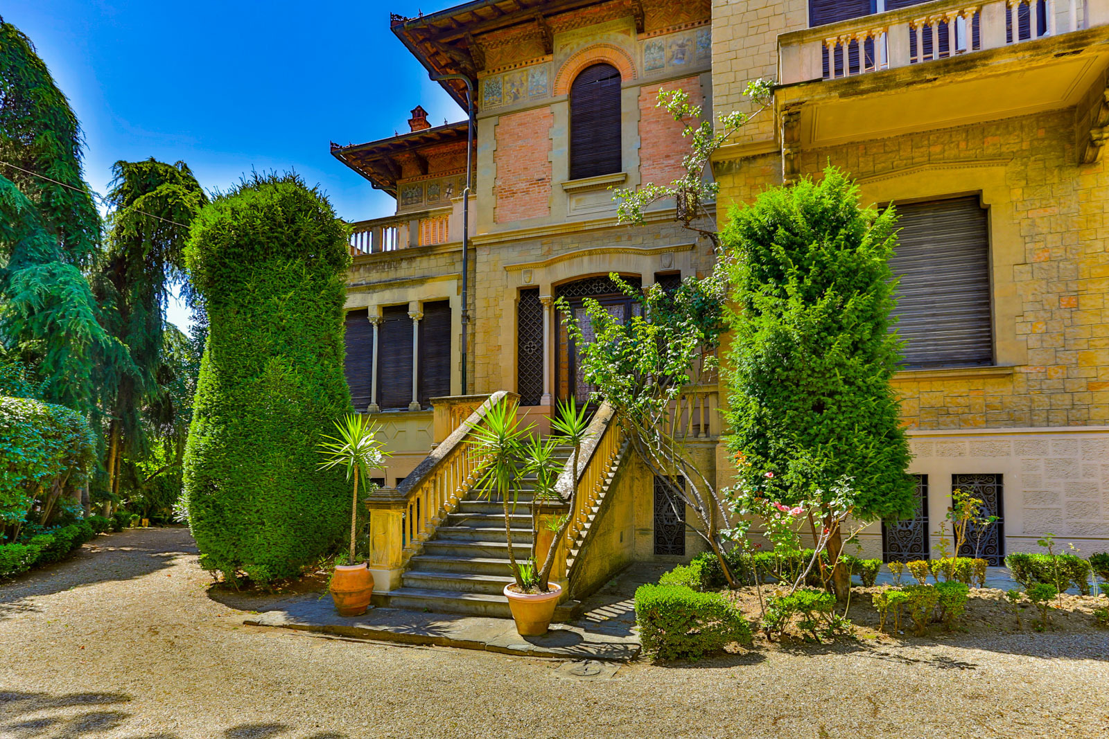 A beautiful Art Nouveau villa that stands majestically in one of main transit road of Florence, set slightly back from this road and protected by its garden and its high gate, still retaining its charm and typical features of the period in which it was built.