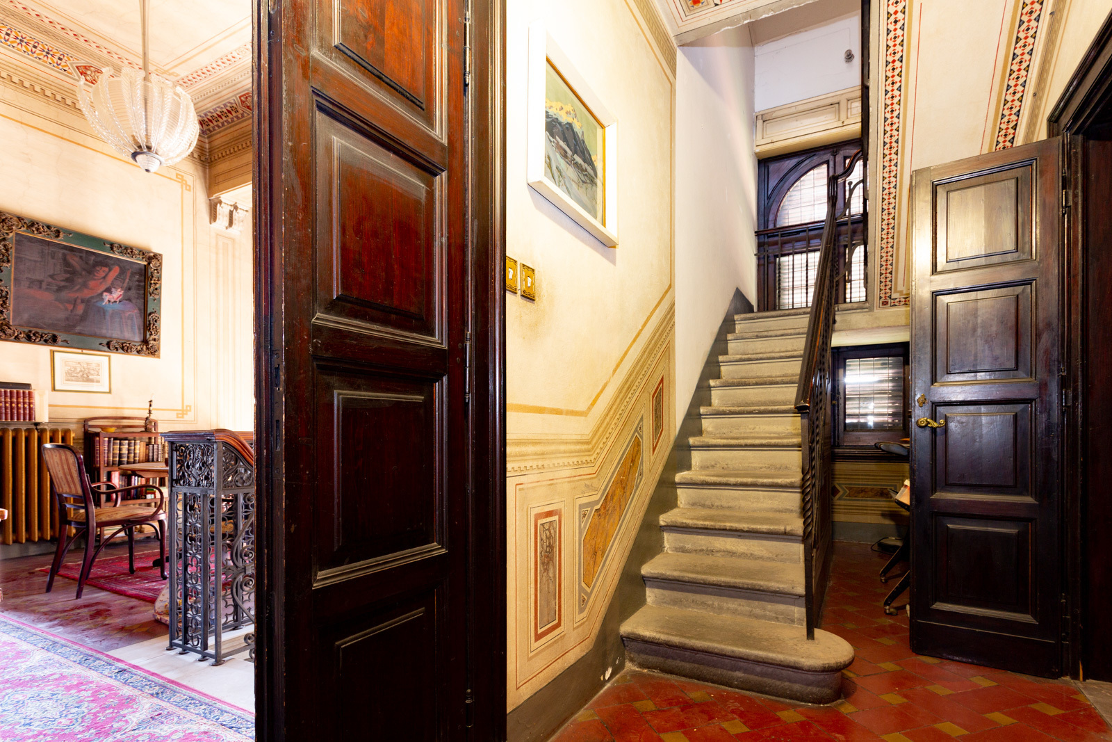 Elegant Liberty villa for sale with private garden on the outskirts of the historic centre of Florence. The villa on 4 levels beyond the tower that rises high up needs substantial renovation, but still maintains all the charm of the period in which it was built, from the floors to the important staircase.