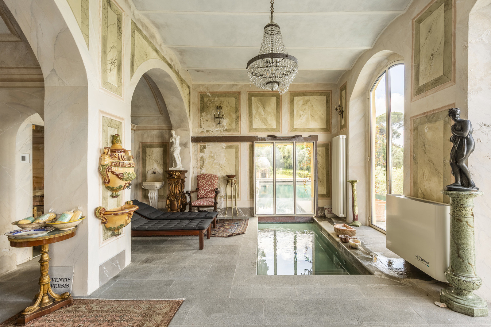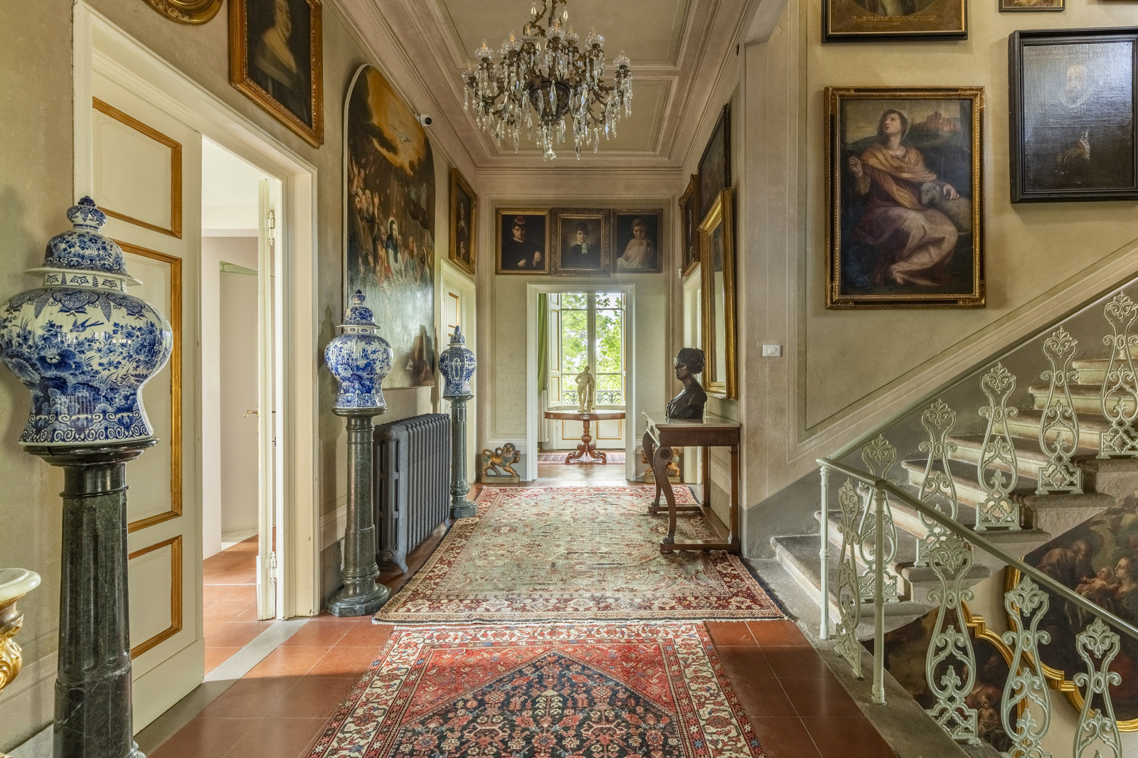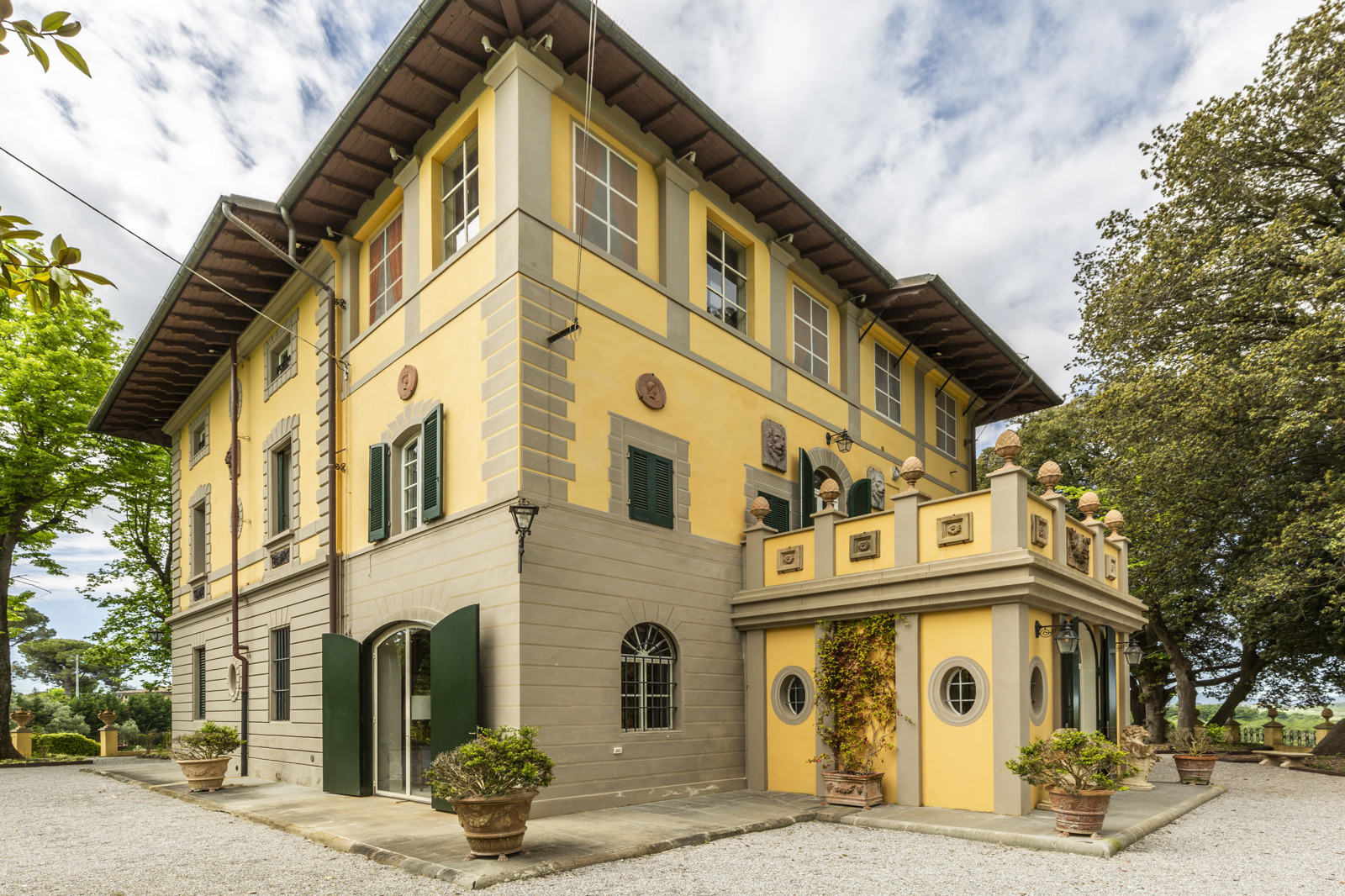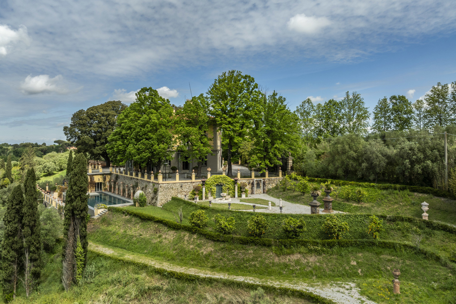 In the hills of Pisa, a spectacular historical property for sale of about 850 sqm, perfectly restored with park, swimming pool and spa, annex, in addition to two farmhouses of about 1000 sqm and 1500 sqm not far from the villa, three apartments including one for the caretaker and land of about 32 hectares.