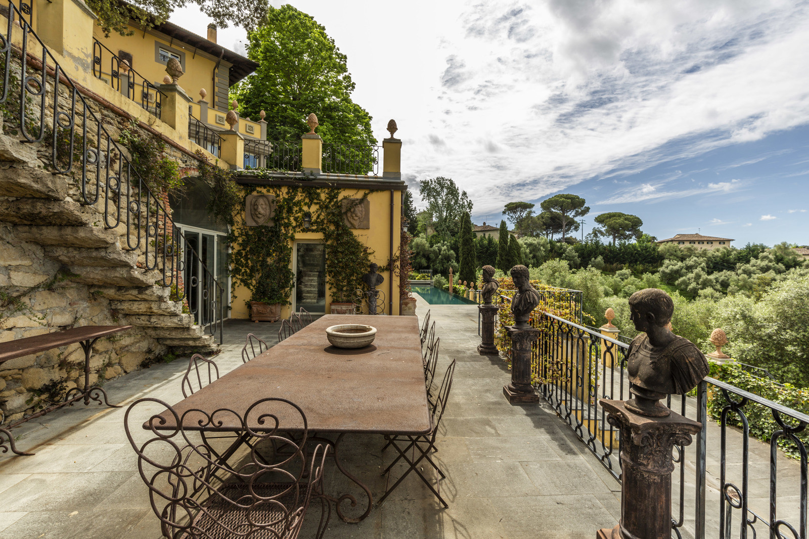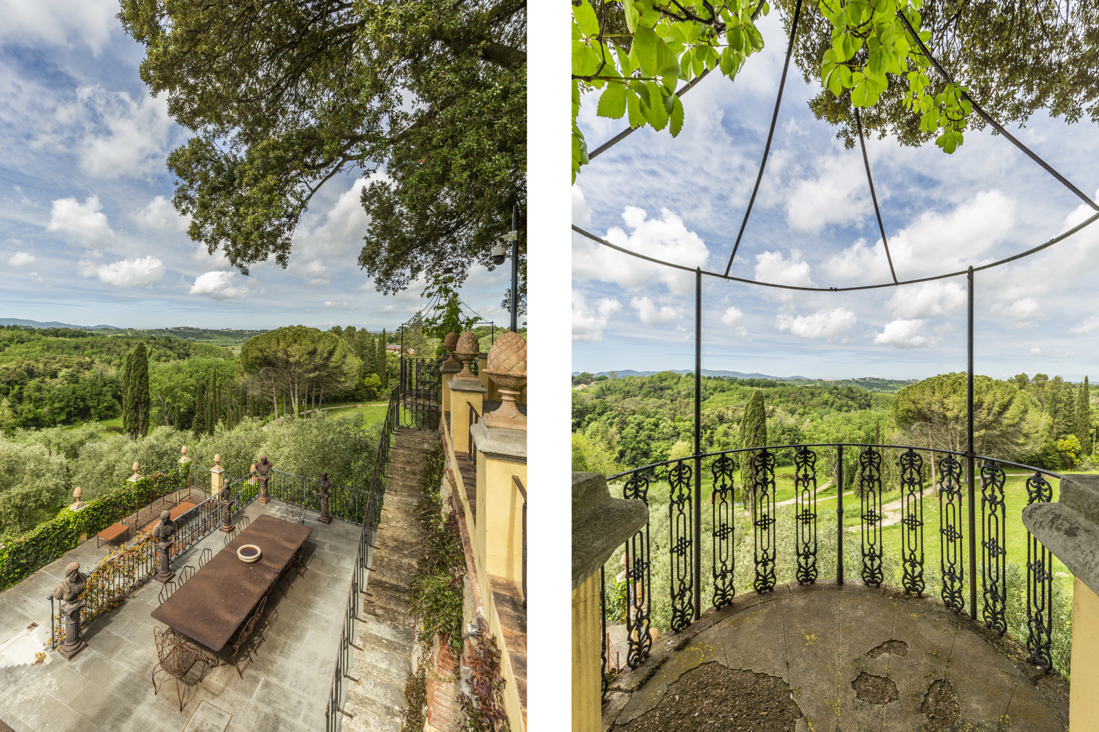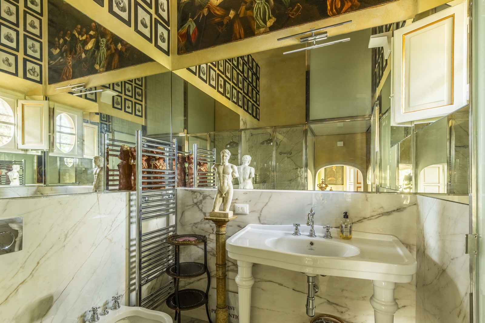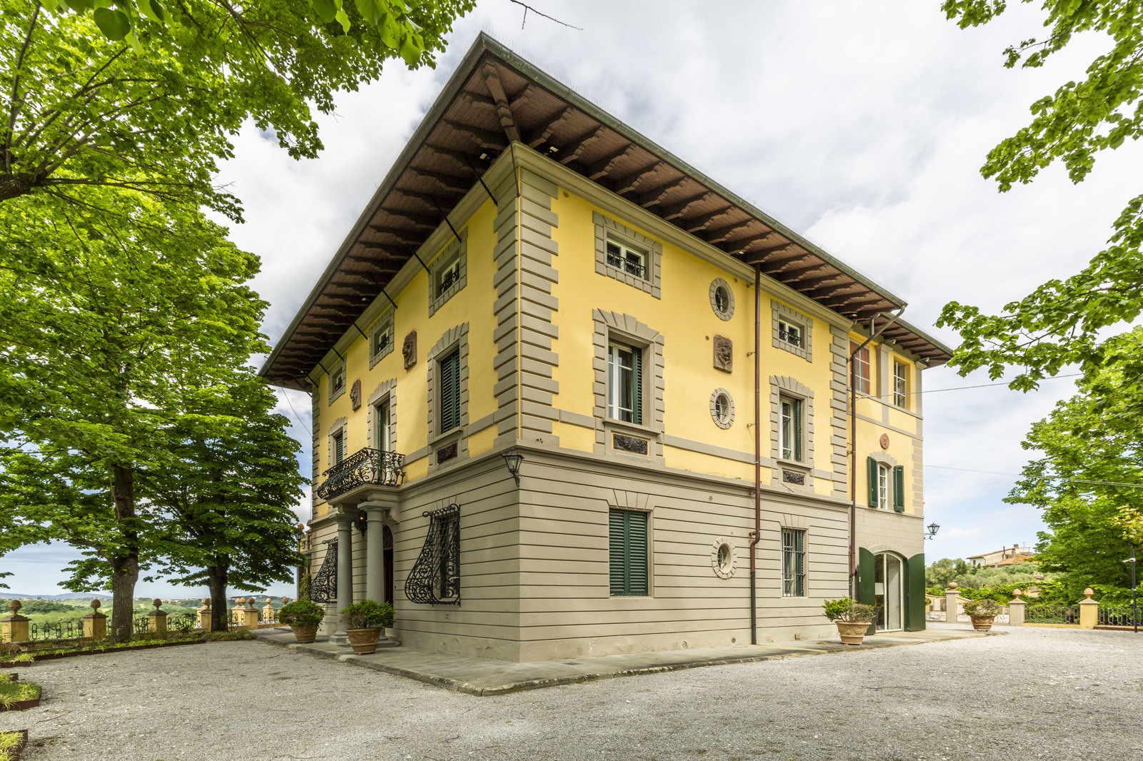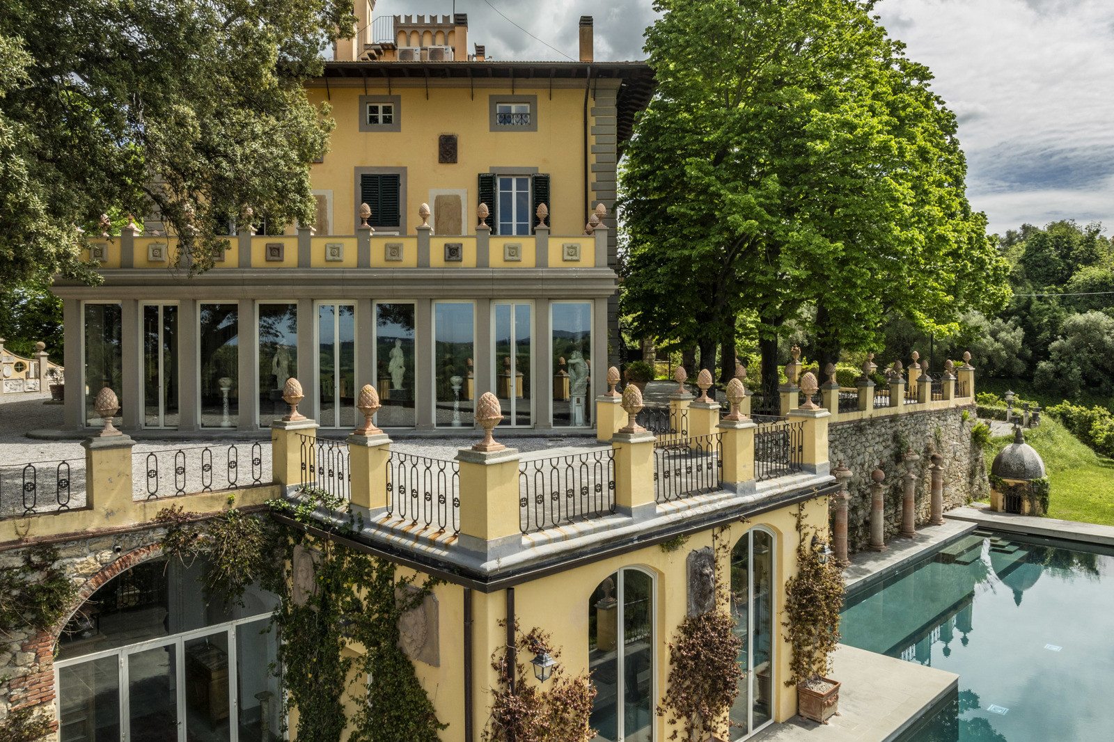In the hills of Pisa, a spectacular historical property for sale of about 850 sqm, perfectly restored with park, swimming pool and spa, annex, in addition to two farmhouses of about 1000 sqm and 1500 sqm not far from the villa, three apartments including one for the caretaker and land of about 32 hectares.