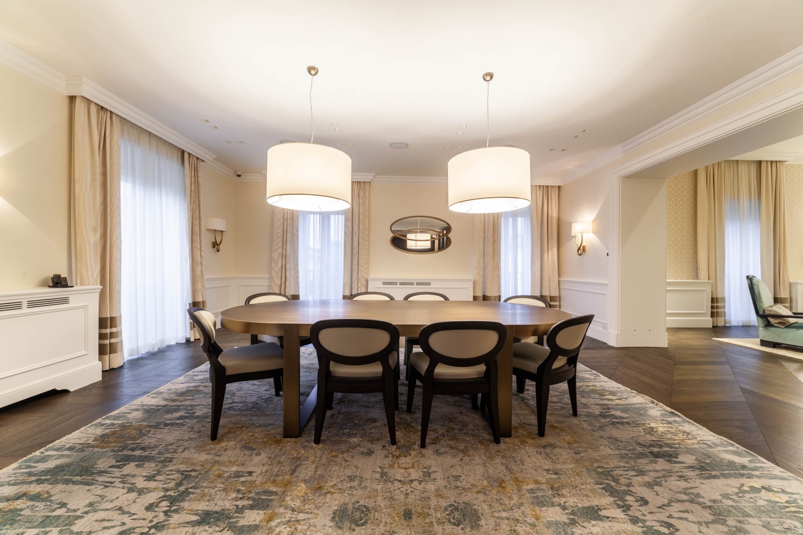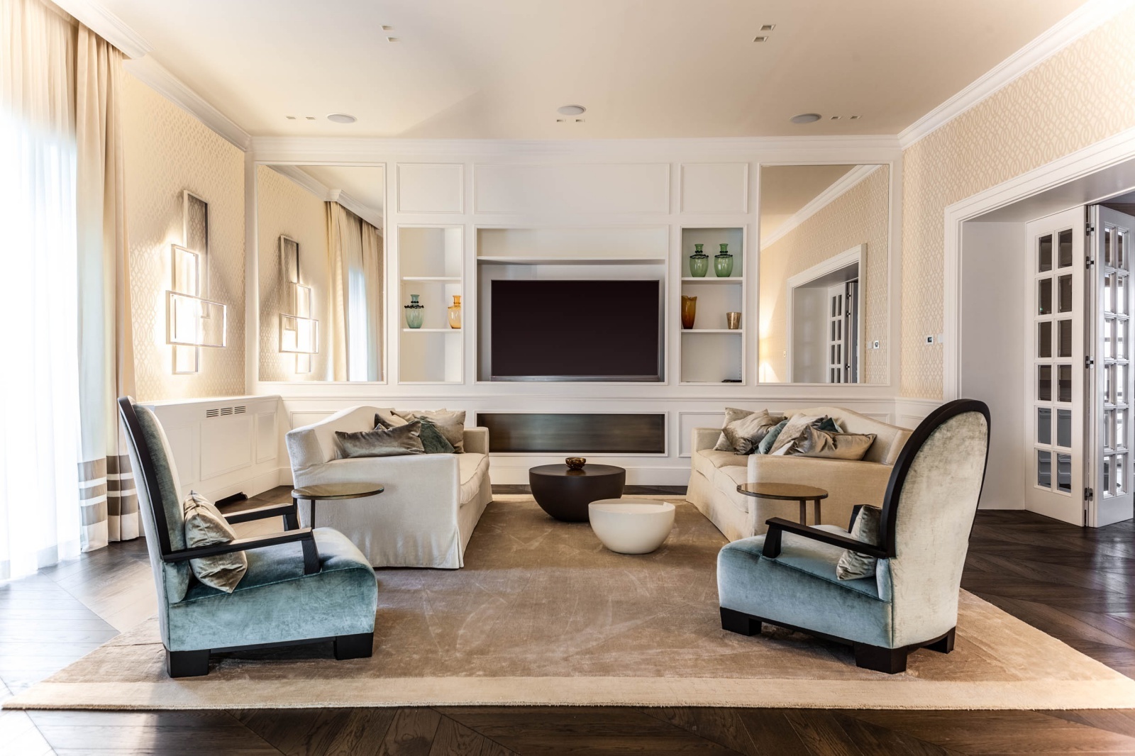 Interior: An apartment has been recently reconstructed using all the top quality materials – wood parquet in the rooms, marbles in bathrooms, lots of boiserie and also equipped with all appliances such as TV, video and audio systems, alarm system, air conditioning and a Smart Home system. All the furniture is from Armani Home collection and will remain in the property. The apartment has everything that anyone can need to live there right away.