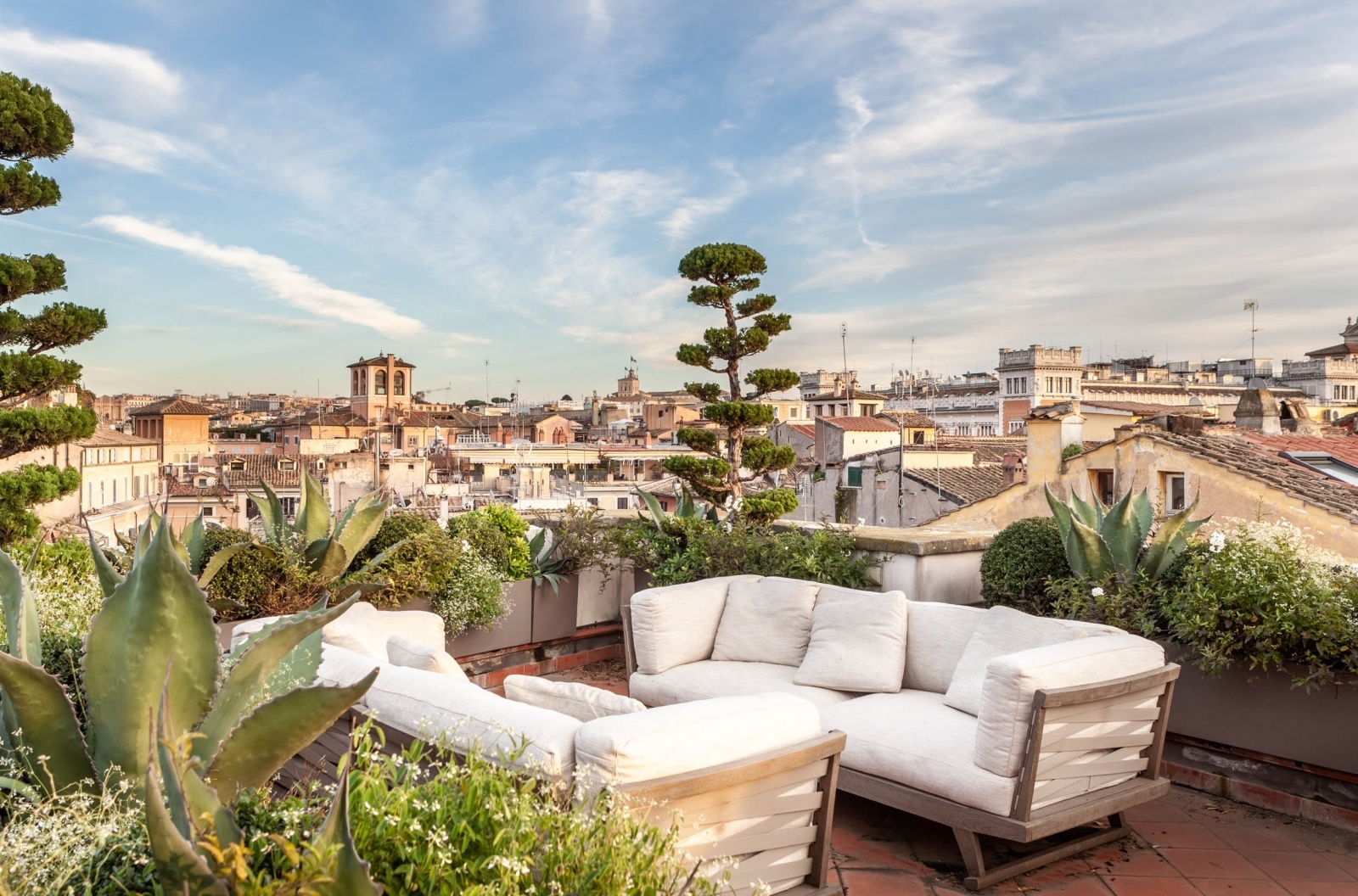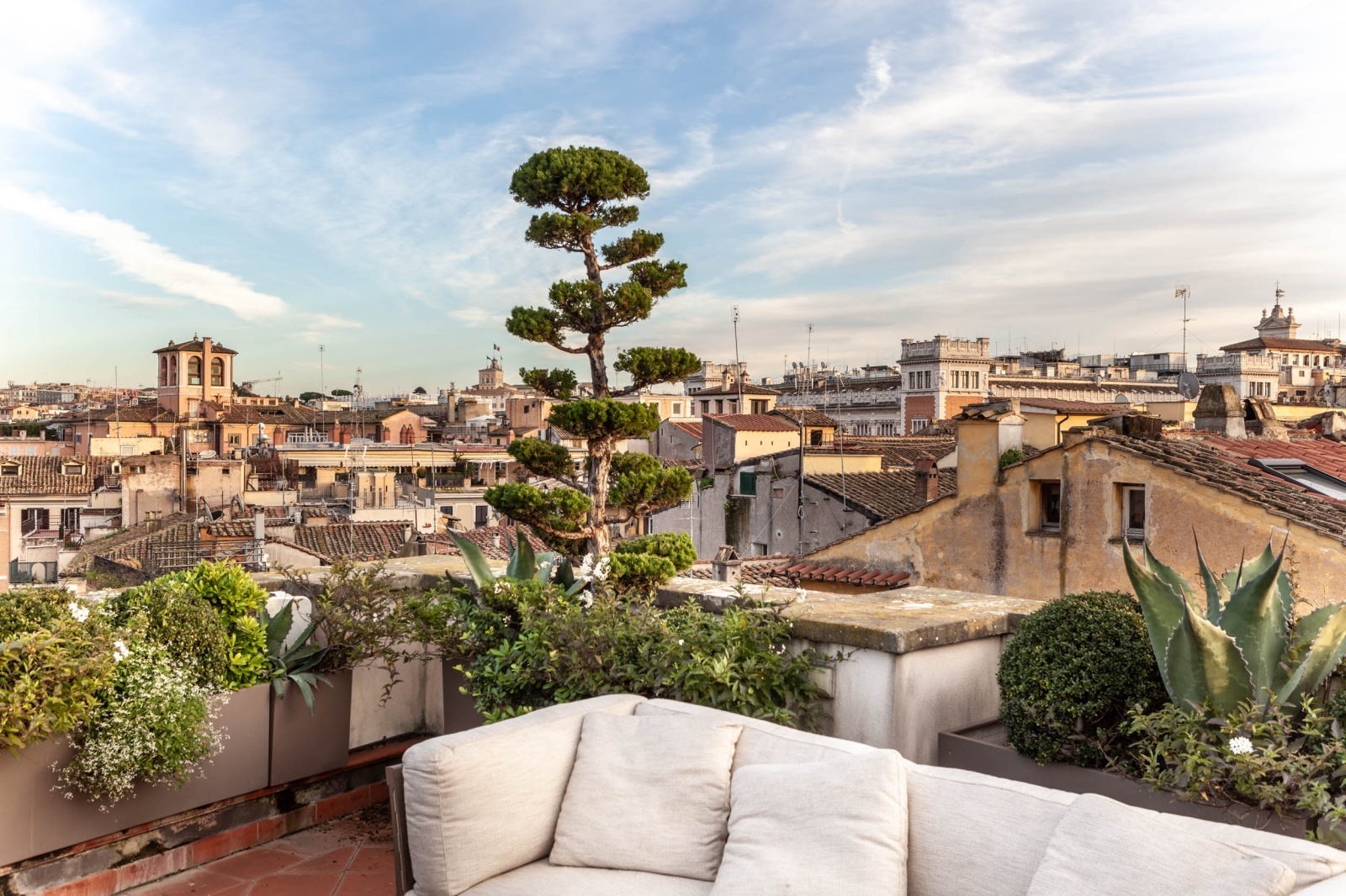 Truly spectacular penthouse in the heart of Rome, a stone’s throw from the Spanish Steps in one of the most beautiful buildings of the 16th century, totally renovated with all comforts. Panoramic terrace, parking space and Armani Home design furniture make it one of the most exclusive homes in Rome.