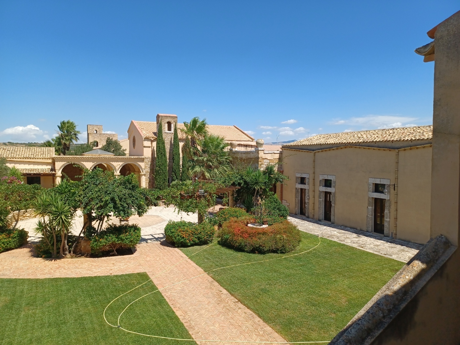 This ancient Sicilian fortified farmhouse, covers 4400 sqm and has over 950 sqm of loggias, 13 bedrooms and 13 bathrooms (including 2 suites), a private chapel and a swimming pool (8m × 16m) equipped with a bar and an outdoor kitchen.