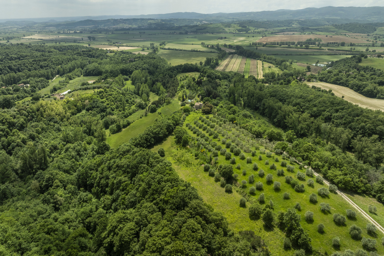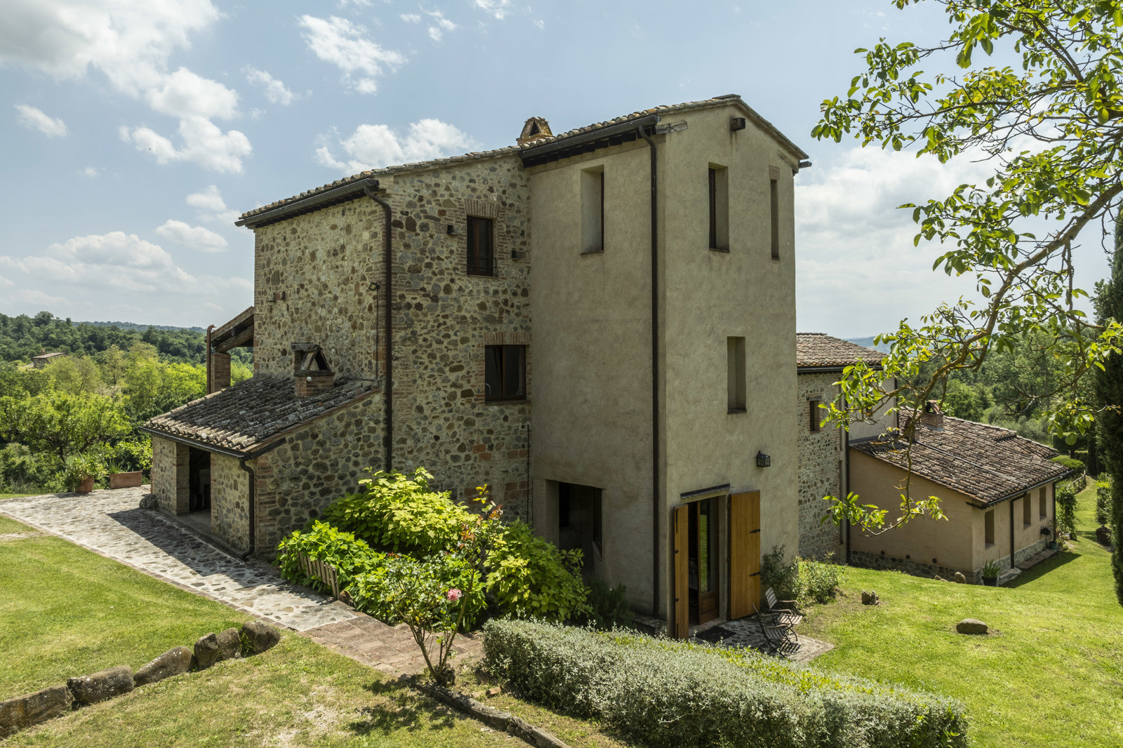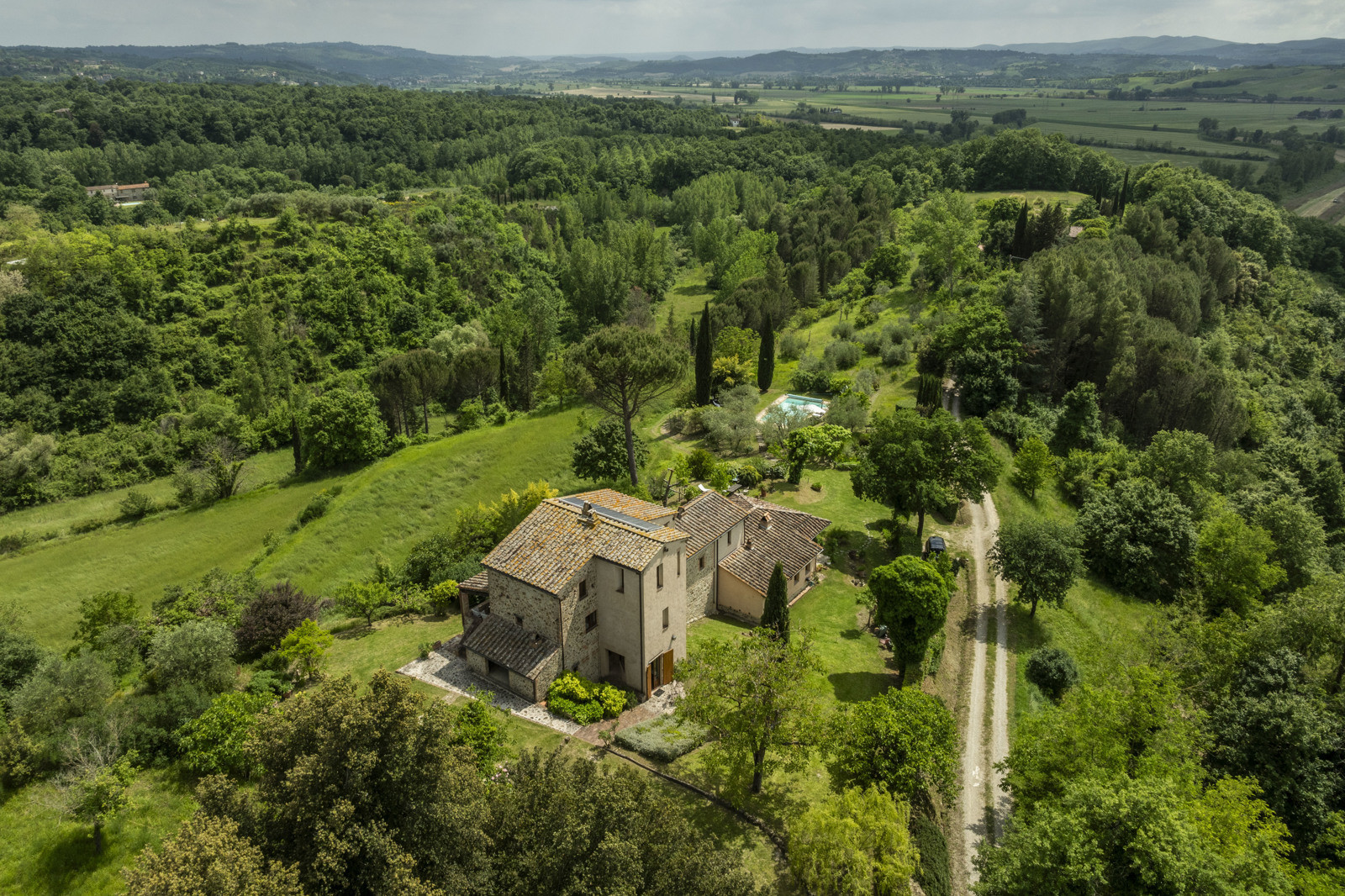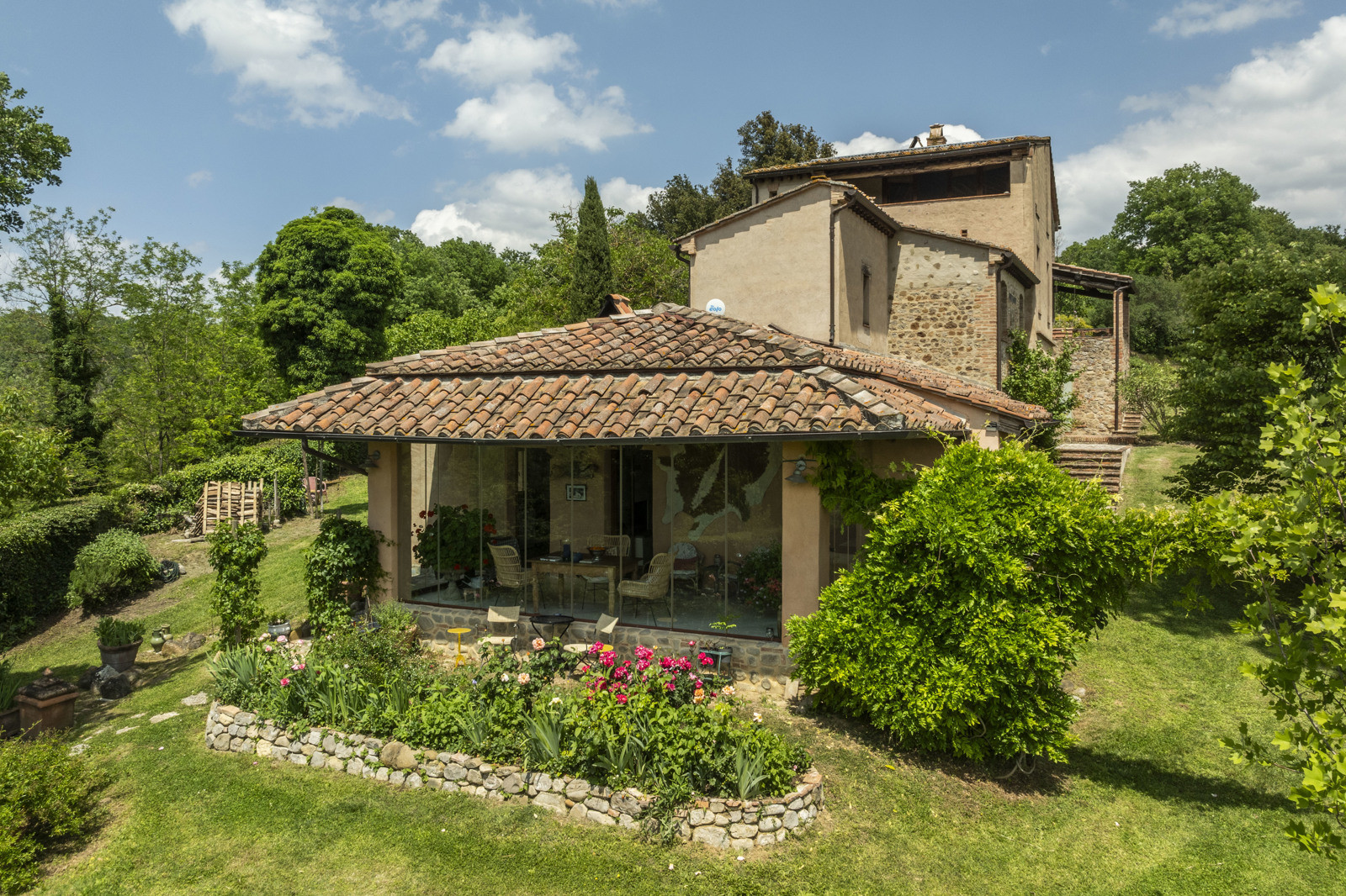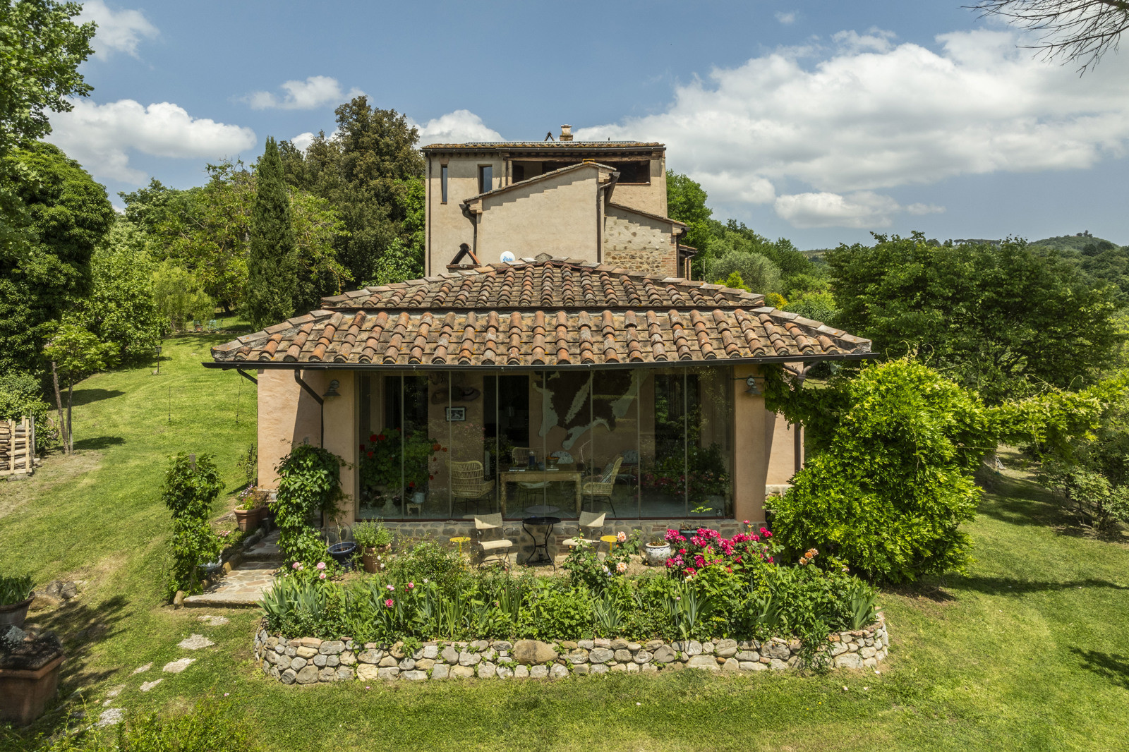 Near Città della Pieve, an exclusive country house of about 500 sqm with a wonderful garden and swimming pool, surrounded by 8 hectares of land.