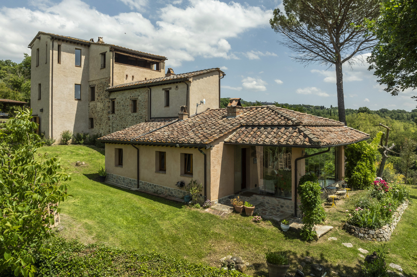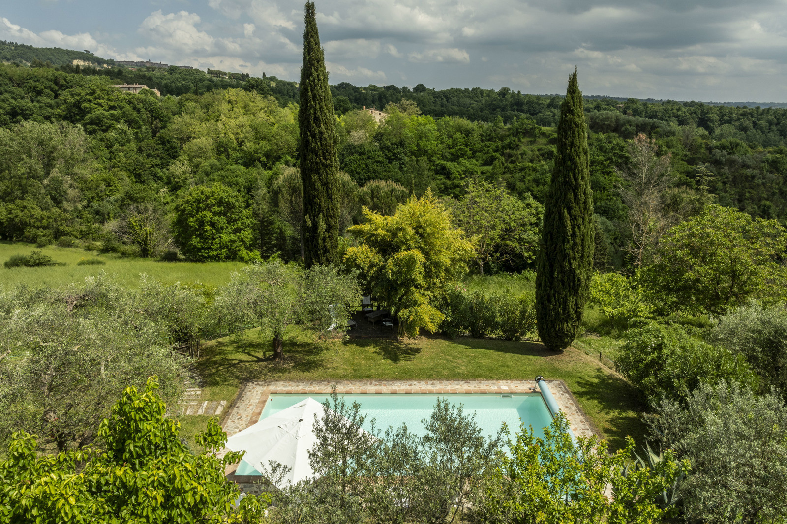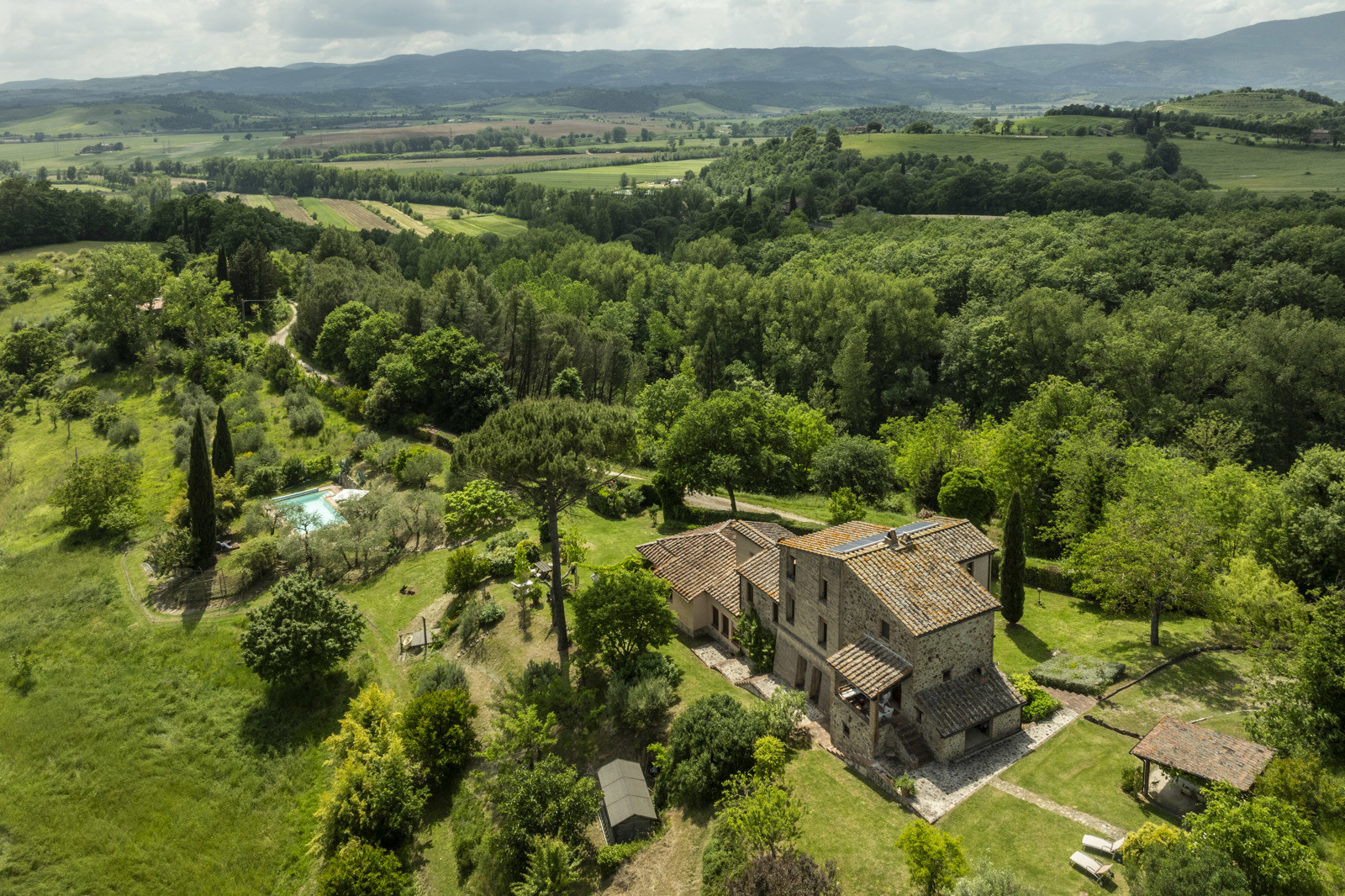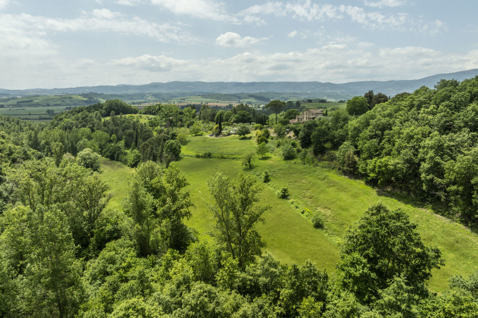 Near Città della Pieve, an exclusive country house of about 500 sqm with a wonderful garden and swimming pool, surrounded by 8 hectares of land.