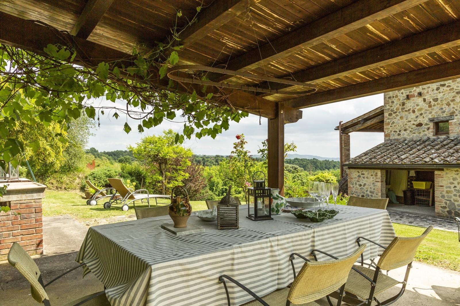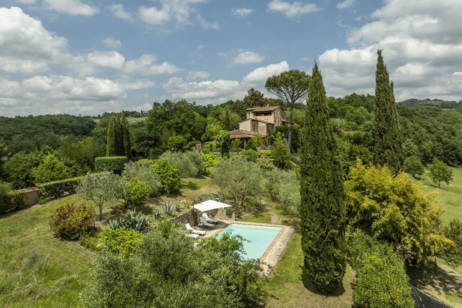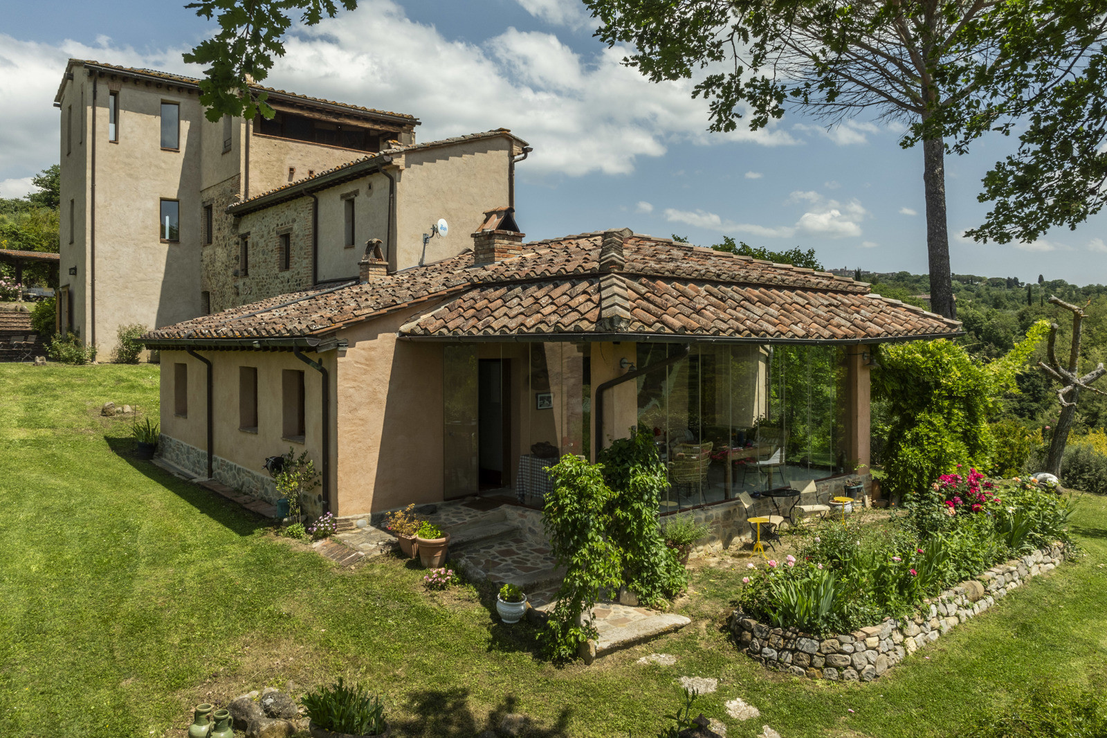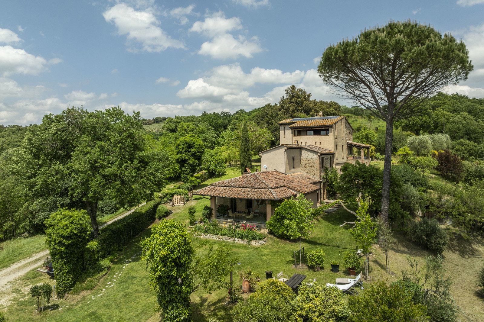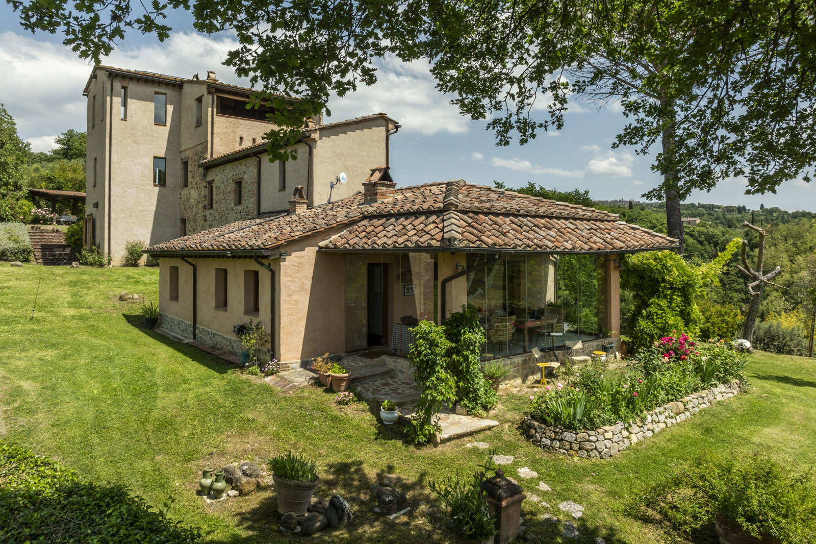 Near Città della Pieve, an exclusive country house of about 500 sqm with a wonderful garden and swimming pool, surrounded by 8 hectares of land.