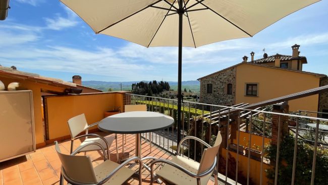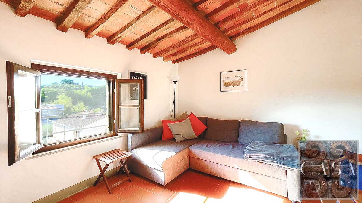 This apartment offers breathtaking views from both sides. Gentle Tuscan hills can be admired from the kitchen and living area, while romantic terracotta rooftops of neighbouring houses can be enjoyed from the bedrooms.