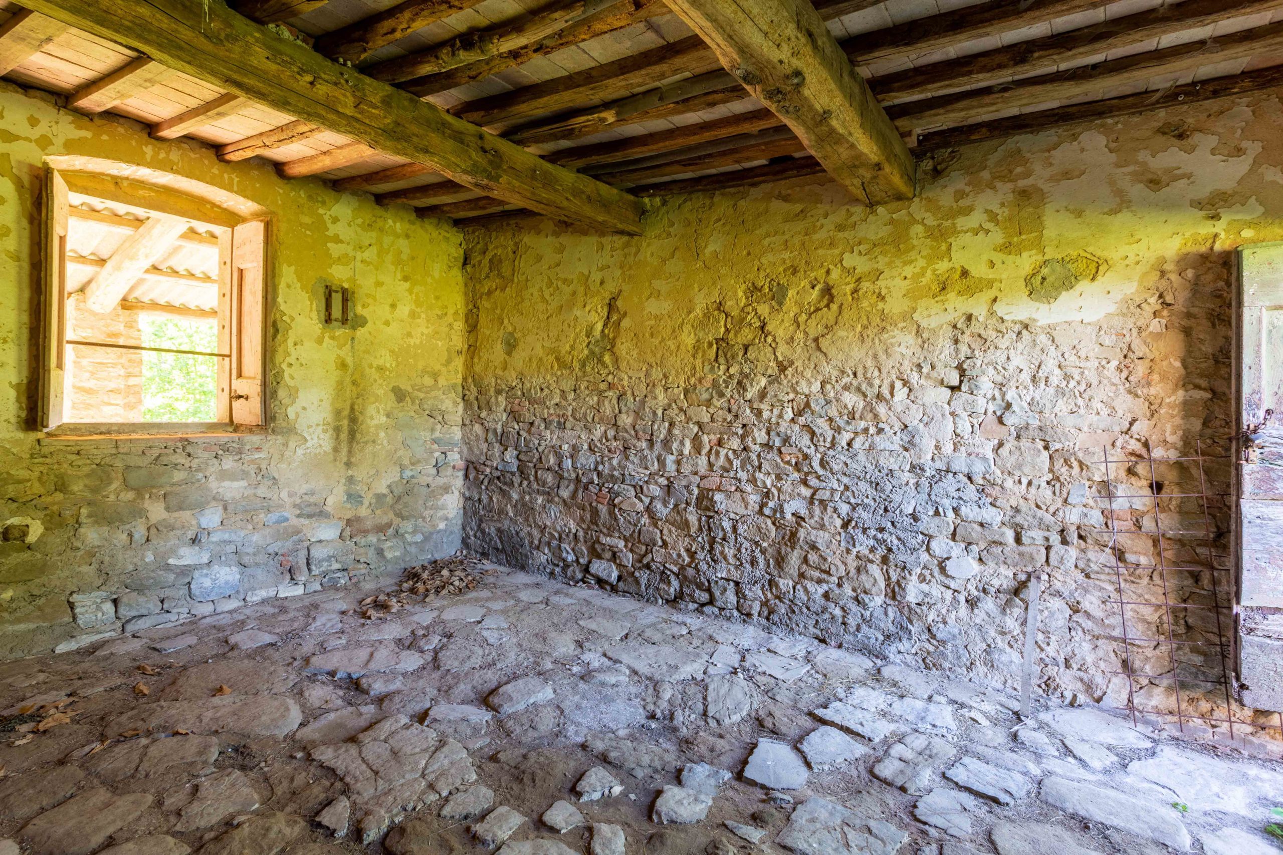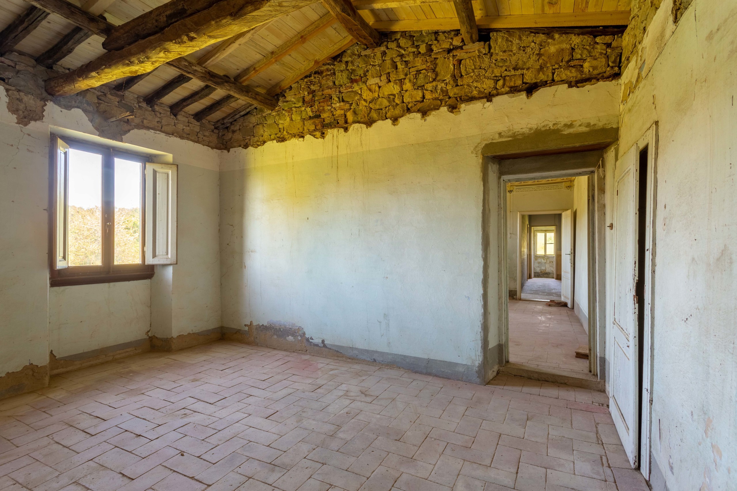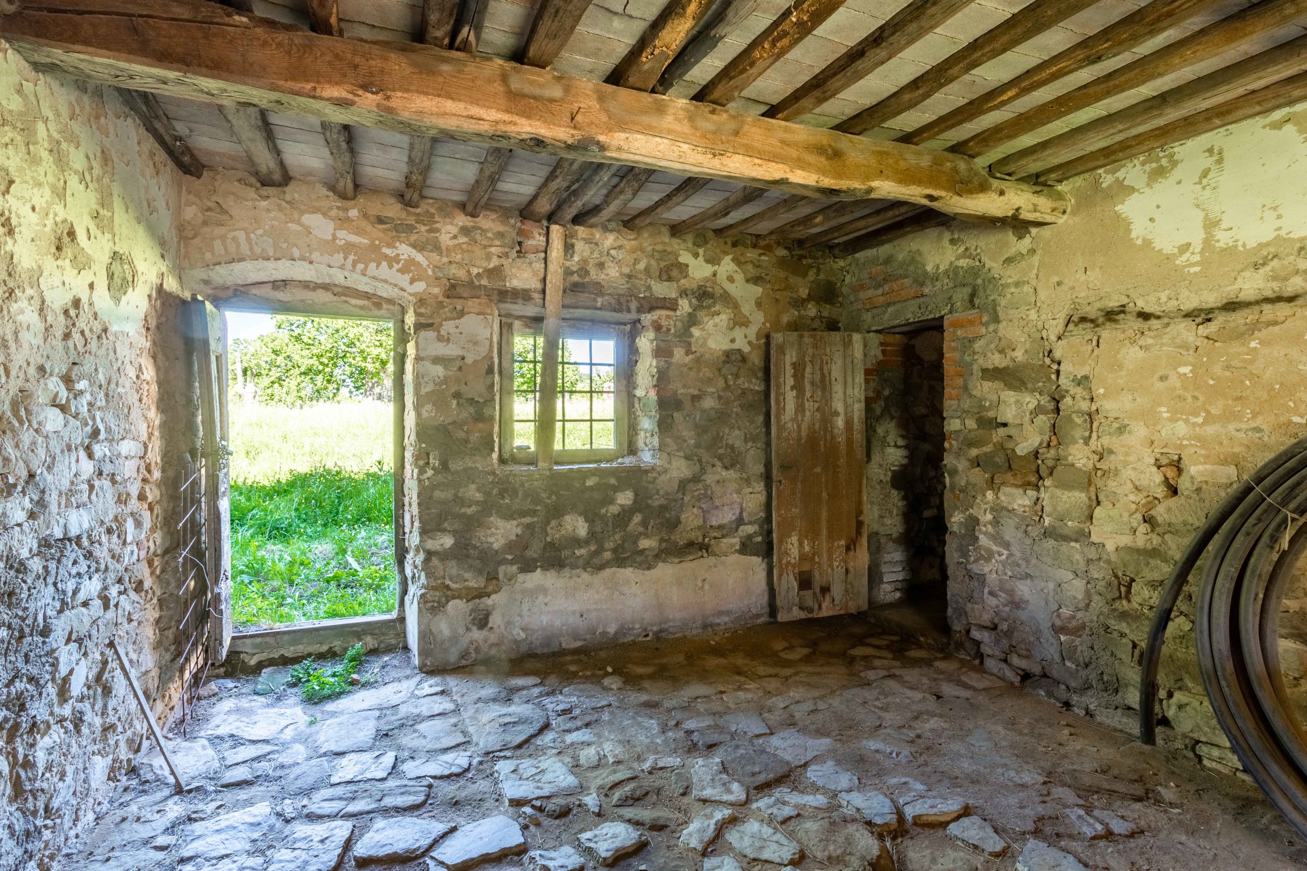The farmhouse retains many original features – ancient terracotta, wooden ceilings, exposed stone walls and original stone stairs, but it needs complete renovation to become a truly unique and resplendent abode.