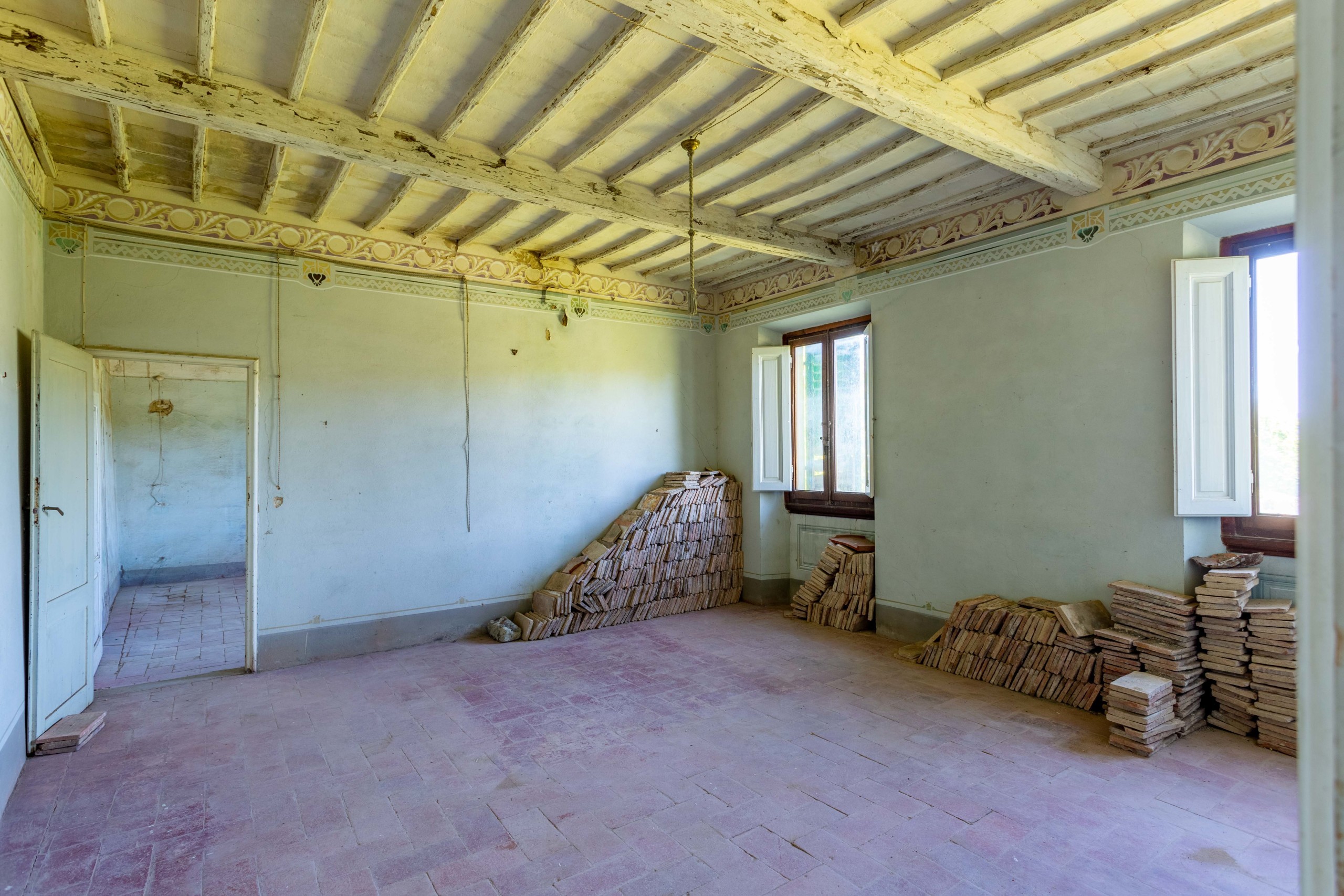 Typical farmhouse to be restored with further outbuildings for a total of about 570 square metres and 12 hectares of land, immersed in the famous Chianti countryside, in a panoramic position with a breath-taking view of the surrounding hills. Current state, completely to be restored, allows future owners to create a dream home using the best technologies and materials.