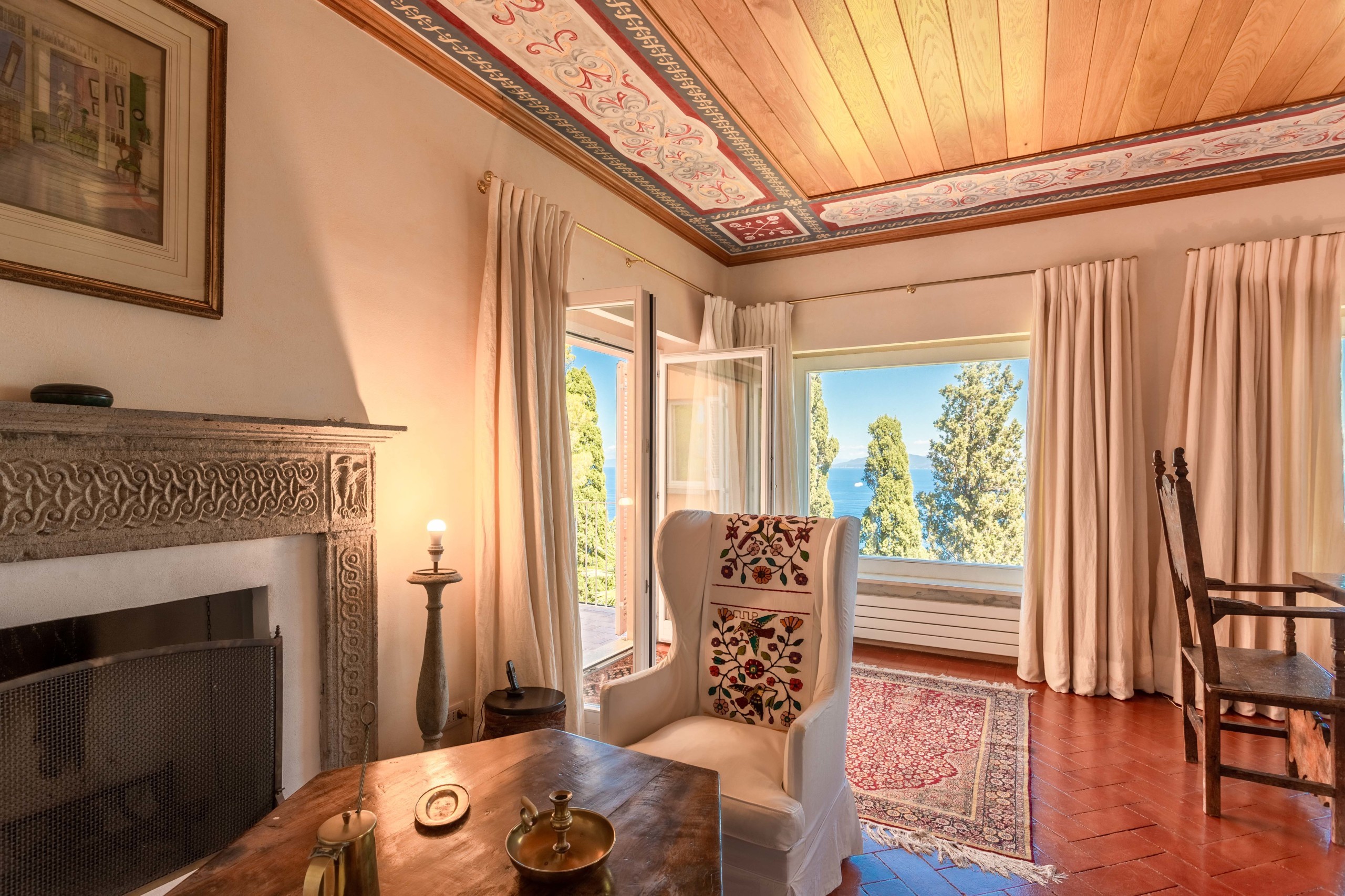 The smaller villa is of a later period, more modern, and is located in a private position, nestled in the garden and enjoys independent access, has an area of about 164 sqm. This villa is also on two levels, on the lower level the living area with living room with the open kitchen and a bathroom, while on the upper level there are 3 bedrooms with 3 bathrooms. Outside a covered terrace overlooking the sea.