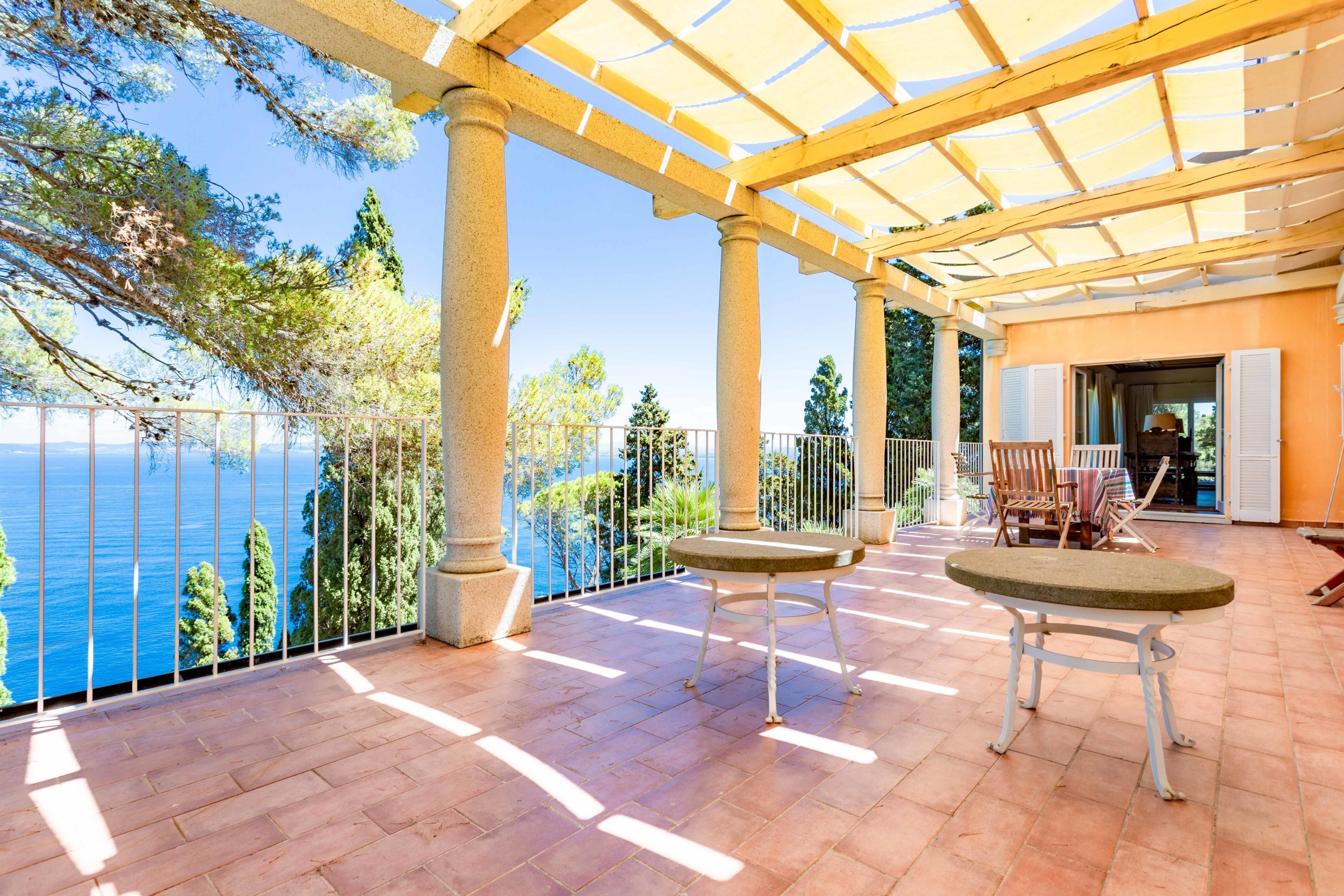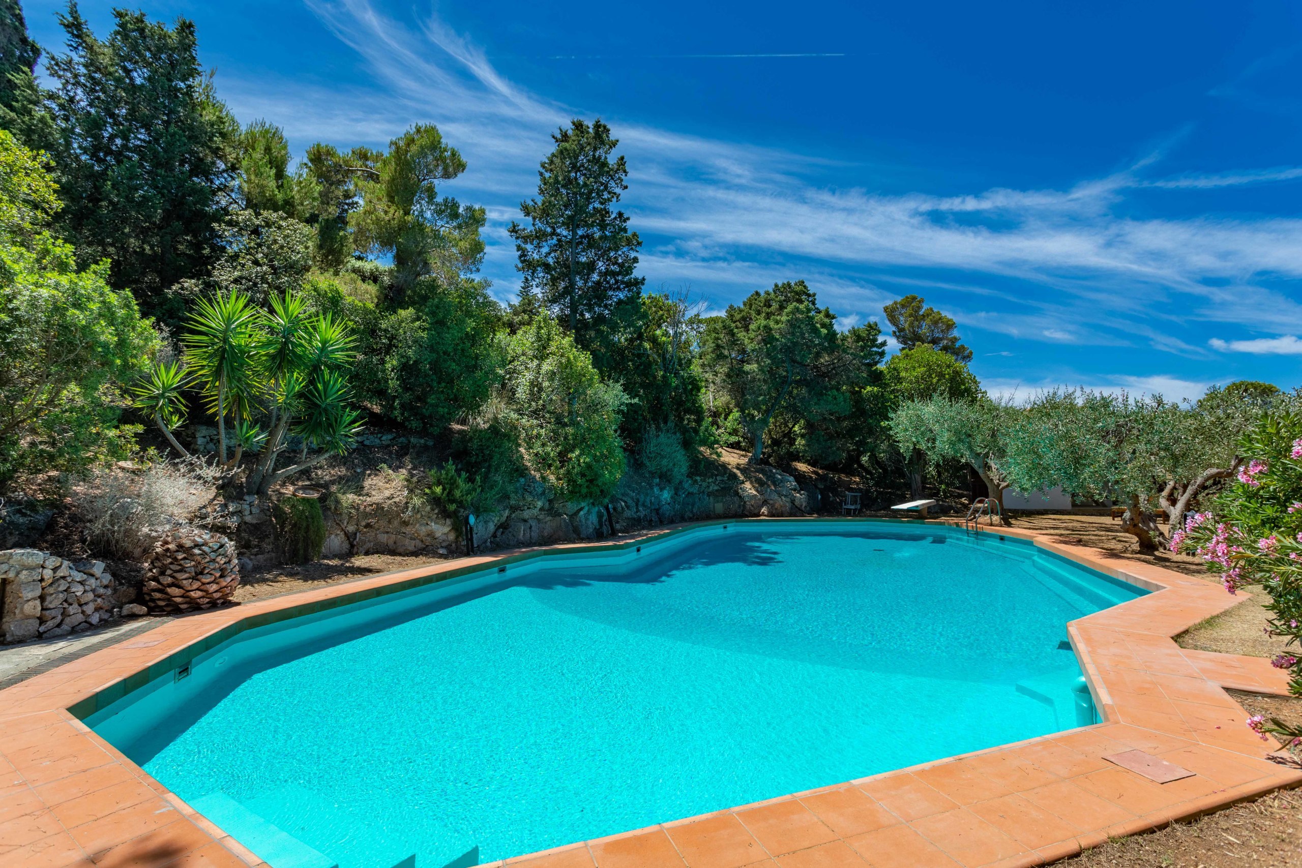 The property is surrounded by one hectare of land with typical Mediterranean scrub, with a small orchard, olive trees, maritime pines and tall cypresses. In a private area of the property, the irregularly shaped swimming pool where you can relax as if suspended between heaven and earth.