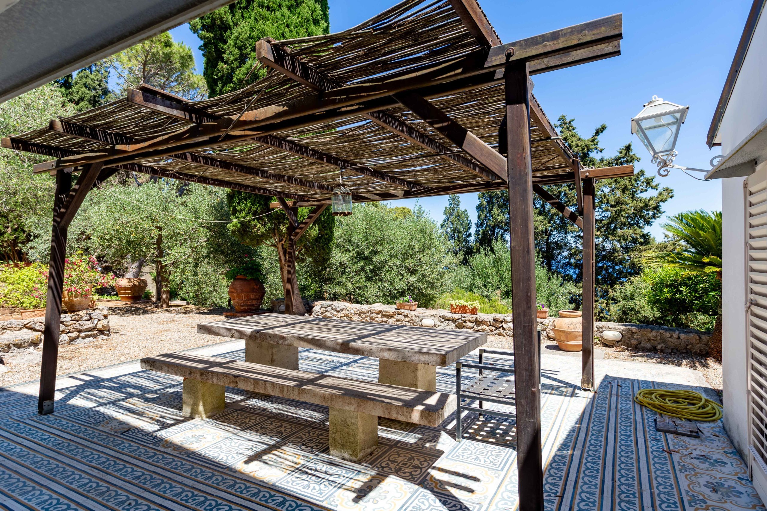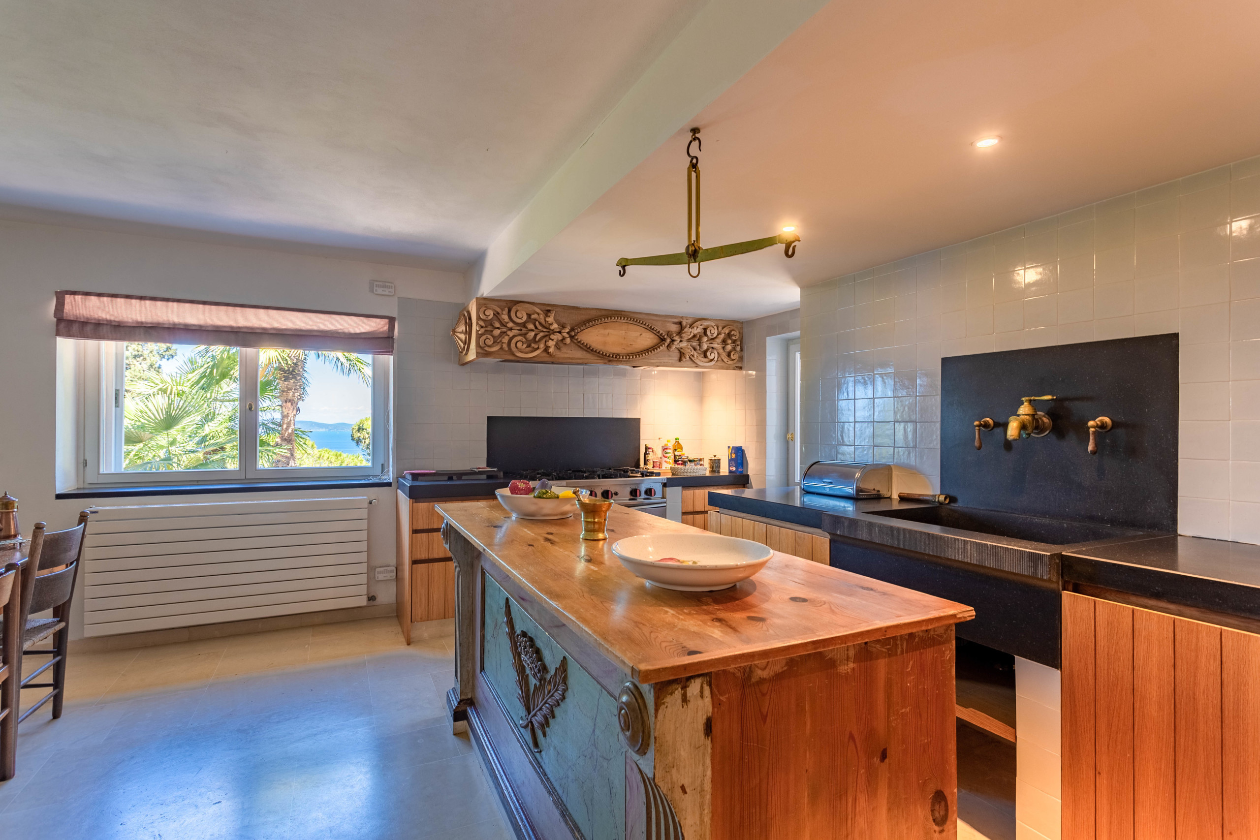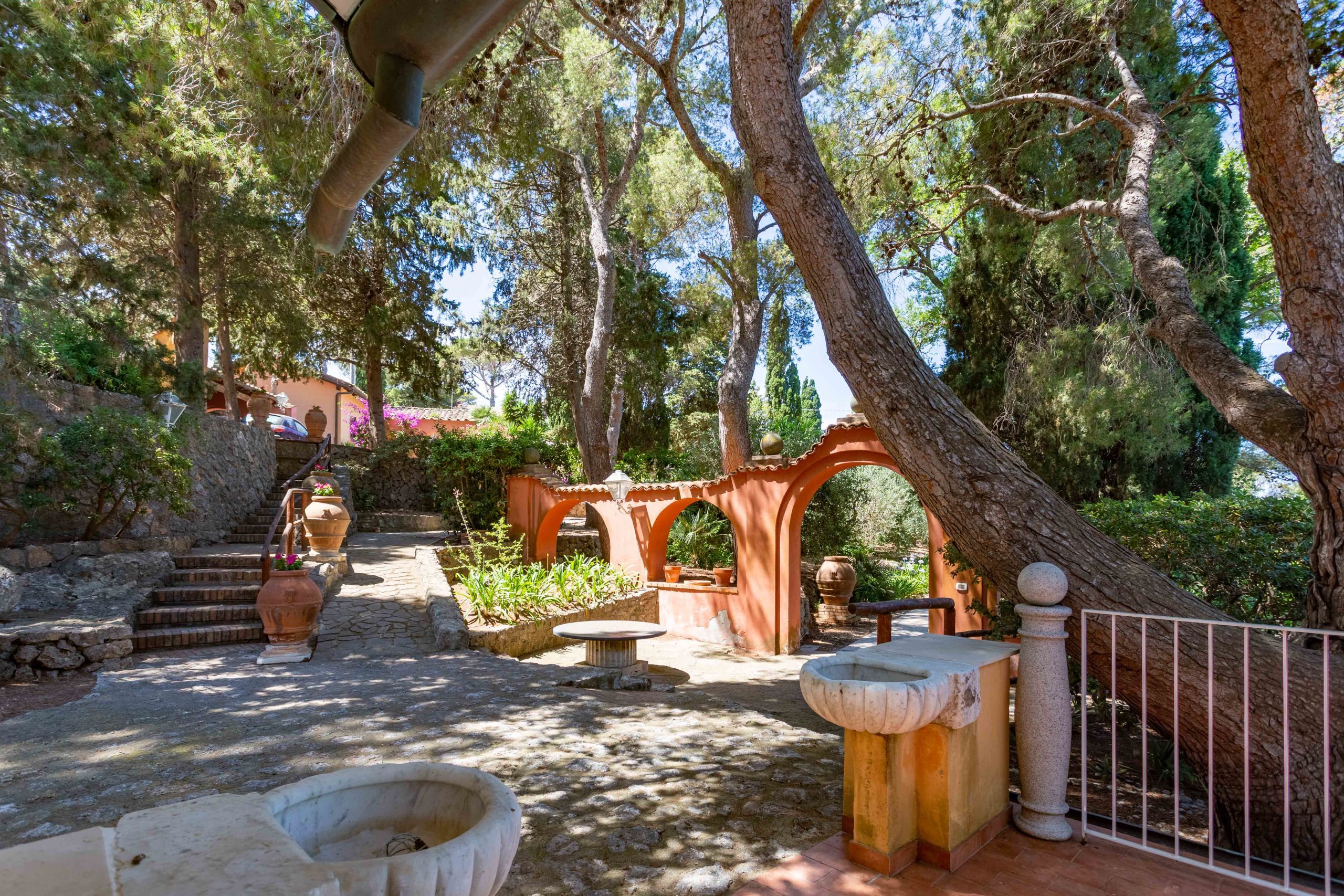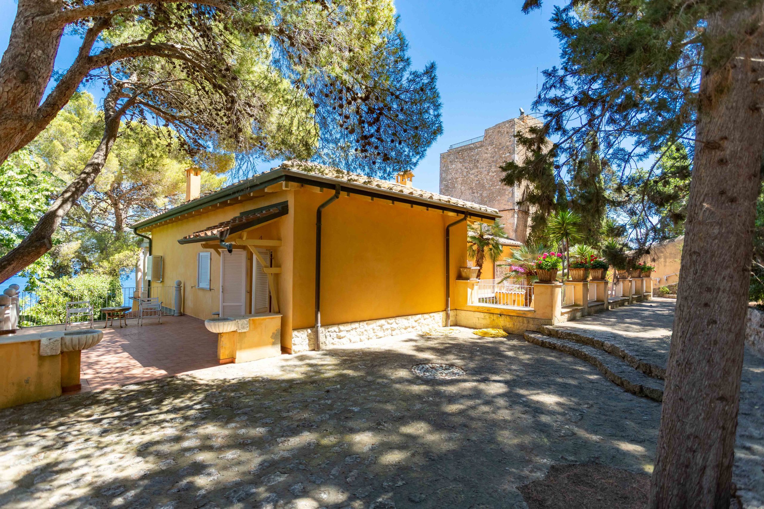 There are three different terraces for a total area of about 160 sqm, all overlooking the sea and the garden below. Each building has its own terrace and from all the terraces you can enjoy a breathtaking view towards the sea, towards the nearby pine forest, Giglio island in the distance and the mainland that offers a party of lights in the evening. Of particular note is the terrace at the top of the tower, which makes you feel like you are soaring towards the sea, with the call of the seagulls flying over the nearby cliffs to keep you company.