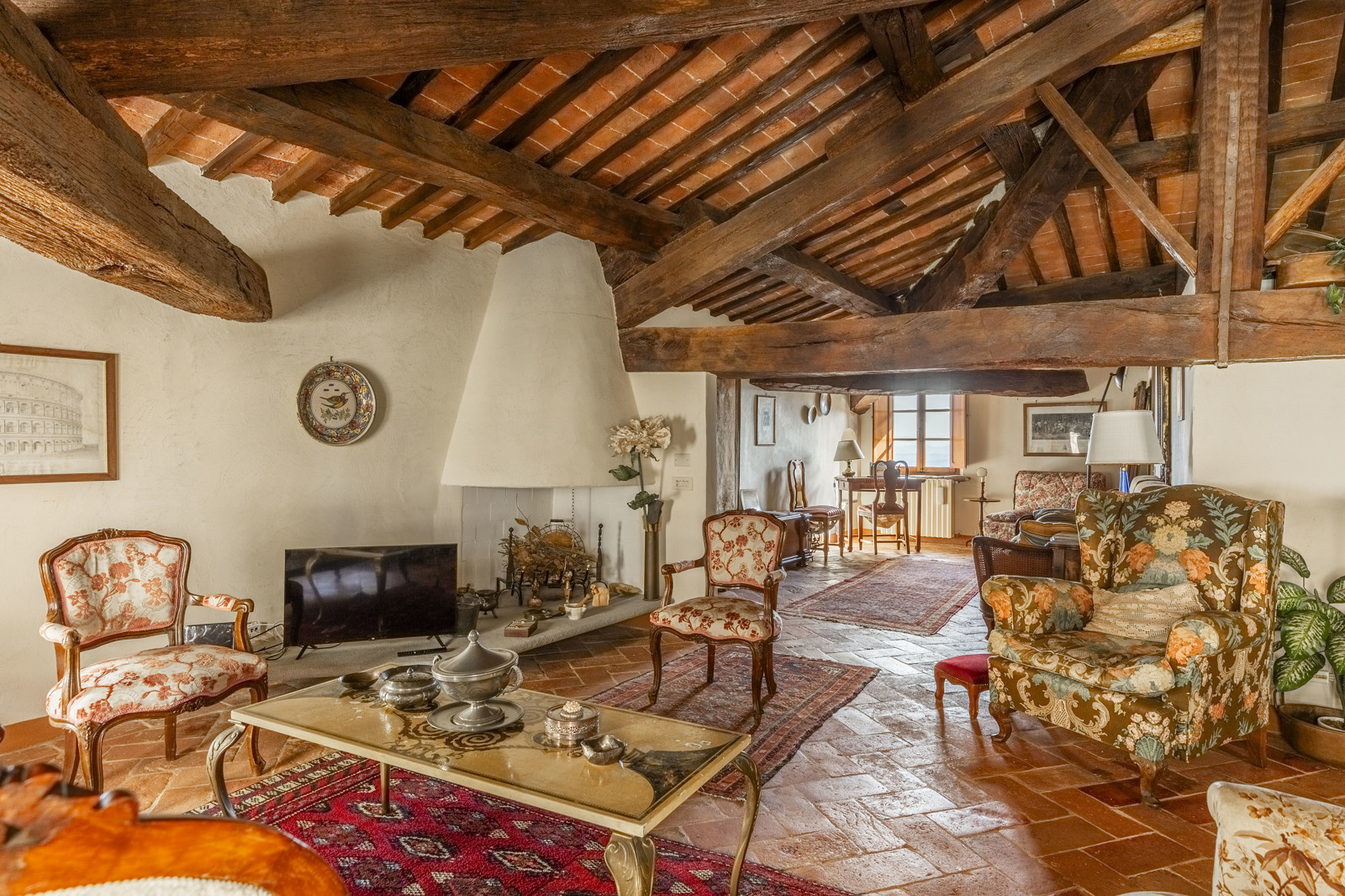 Of 15th century origin, the apartment is in excellent condition, renovated with fine materials in the 1990s. It has ceilings with original wooden beams and terracotta tiles, antique terracotta floors, travertine details, original wooden doors and windows in excellent condition. Mains/city gas central heating and water supply.