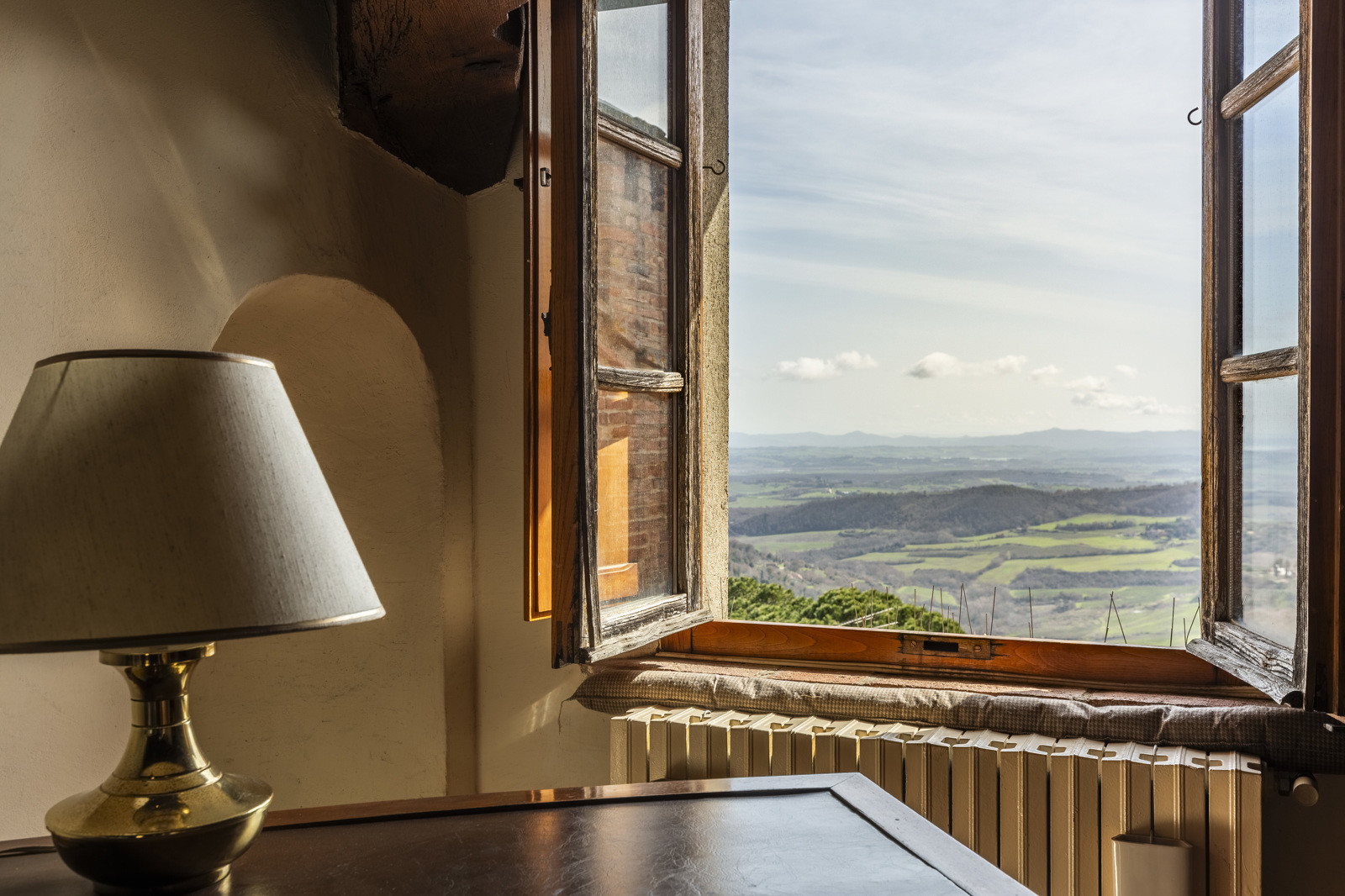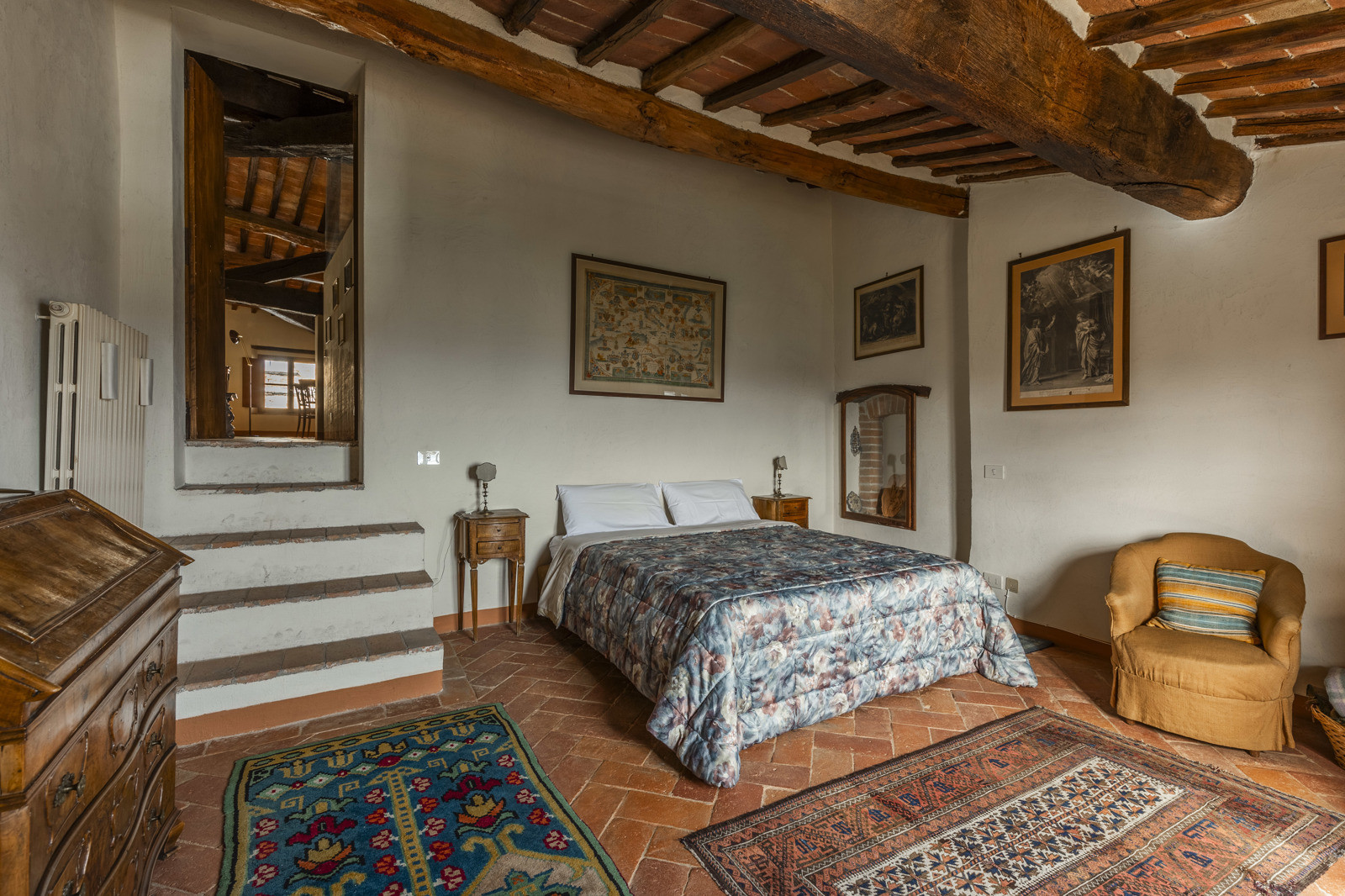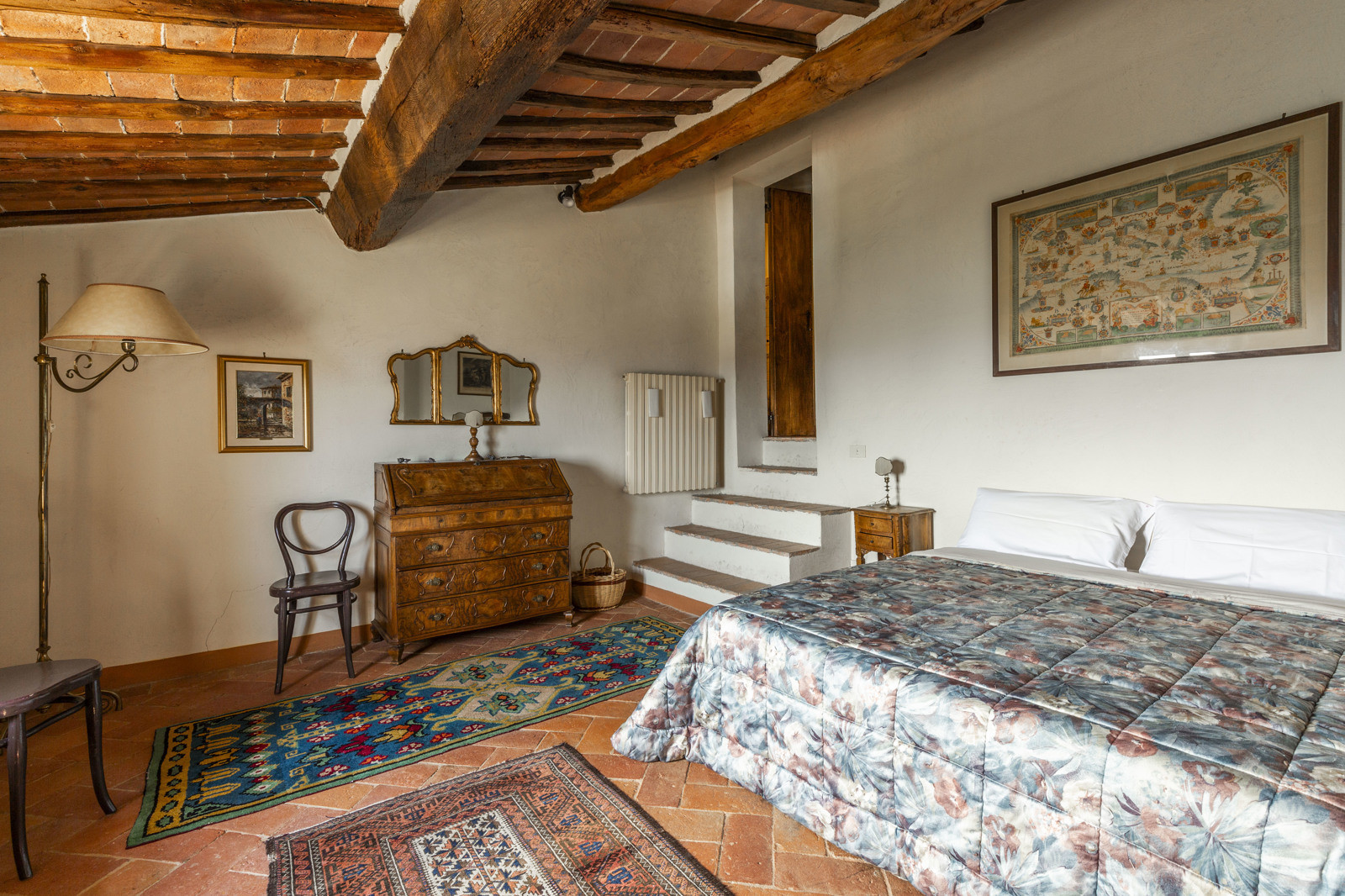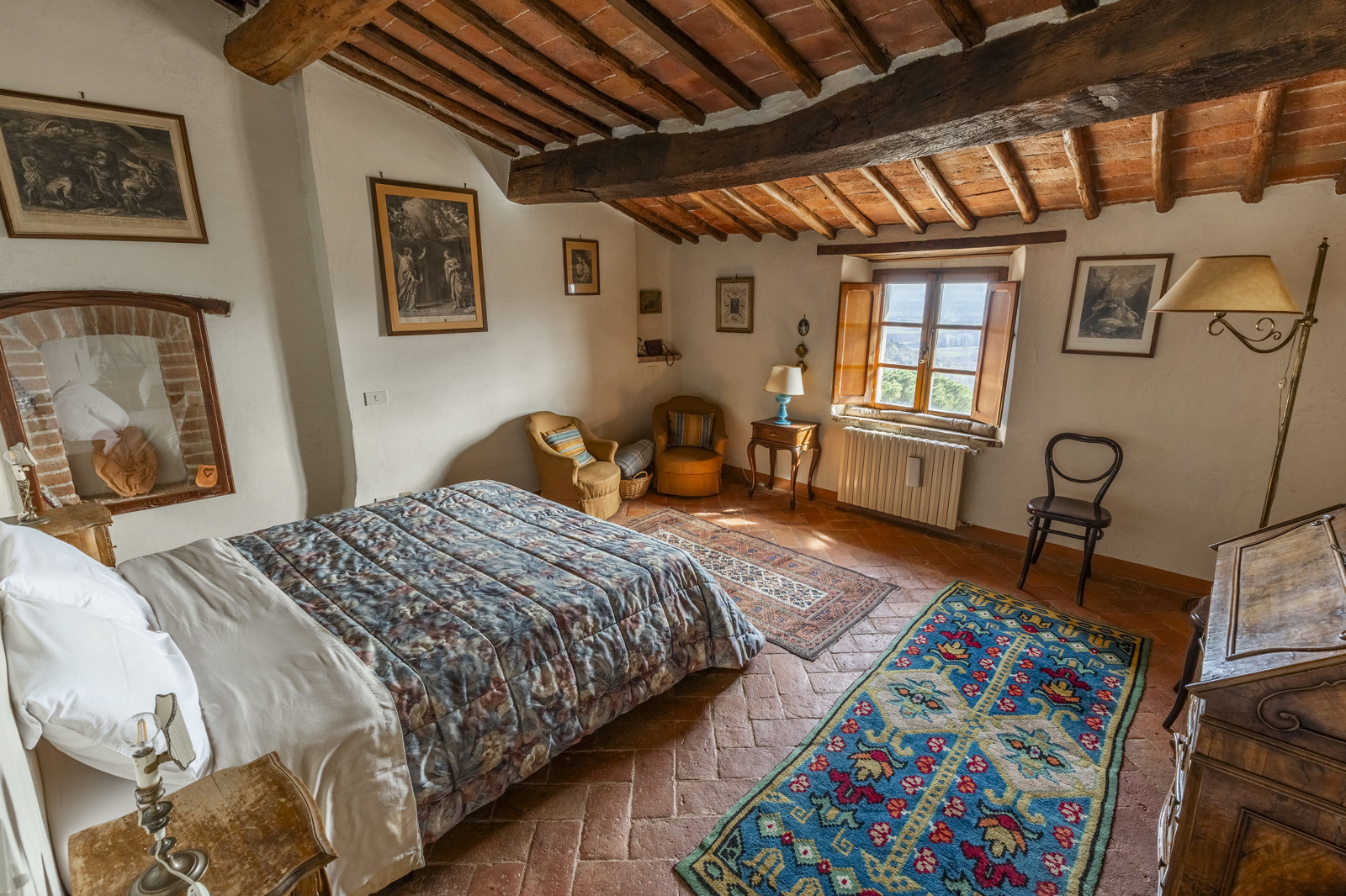 Going down a few steps you enter the beautiful bedroom, very spacious, with a great view over the Tuscan countryside.