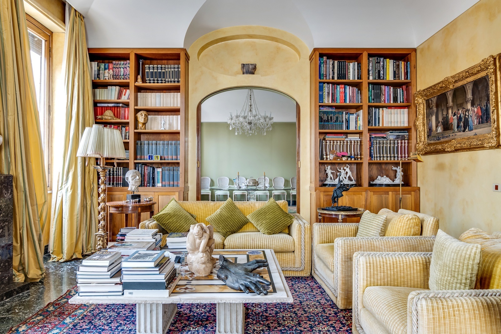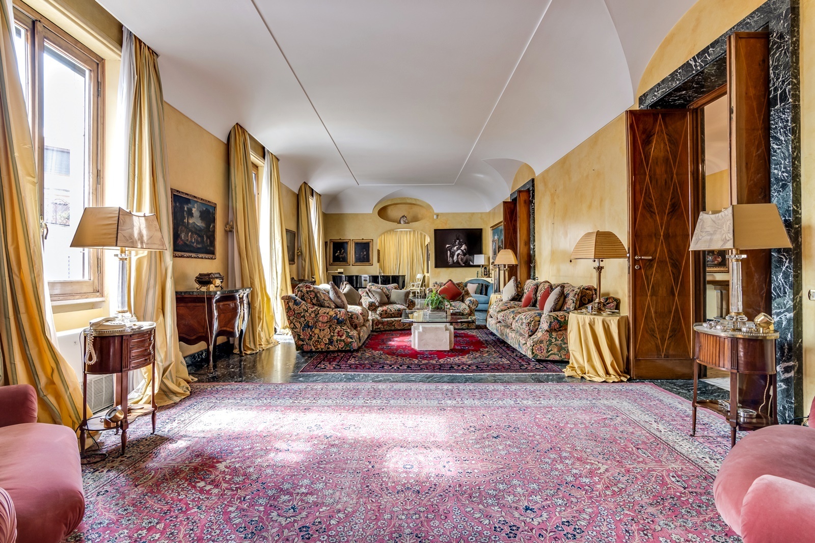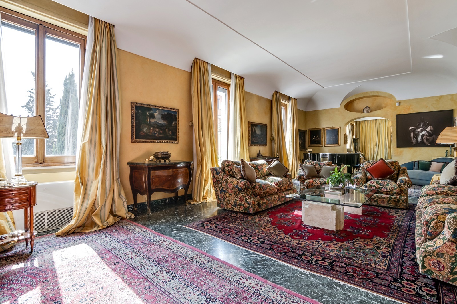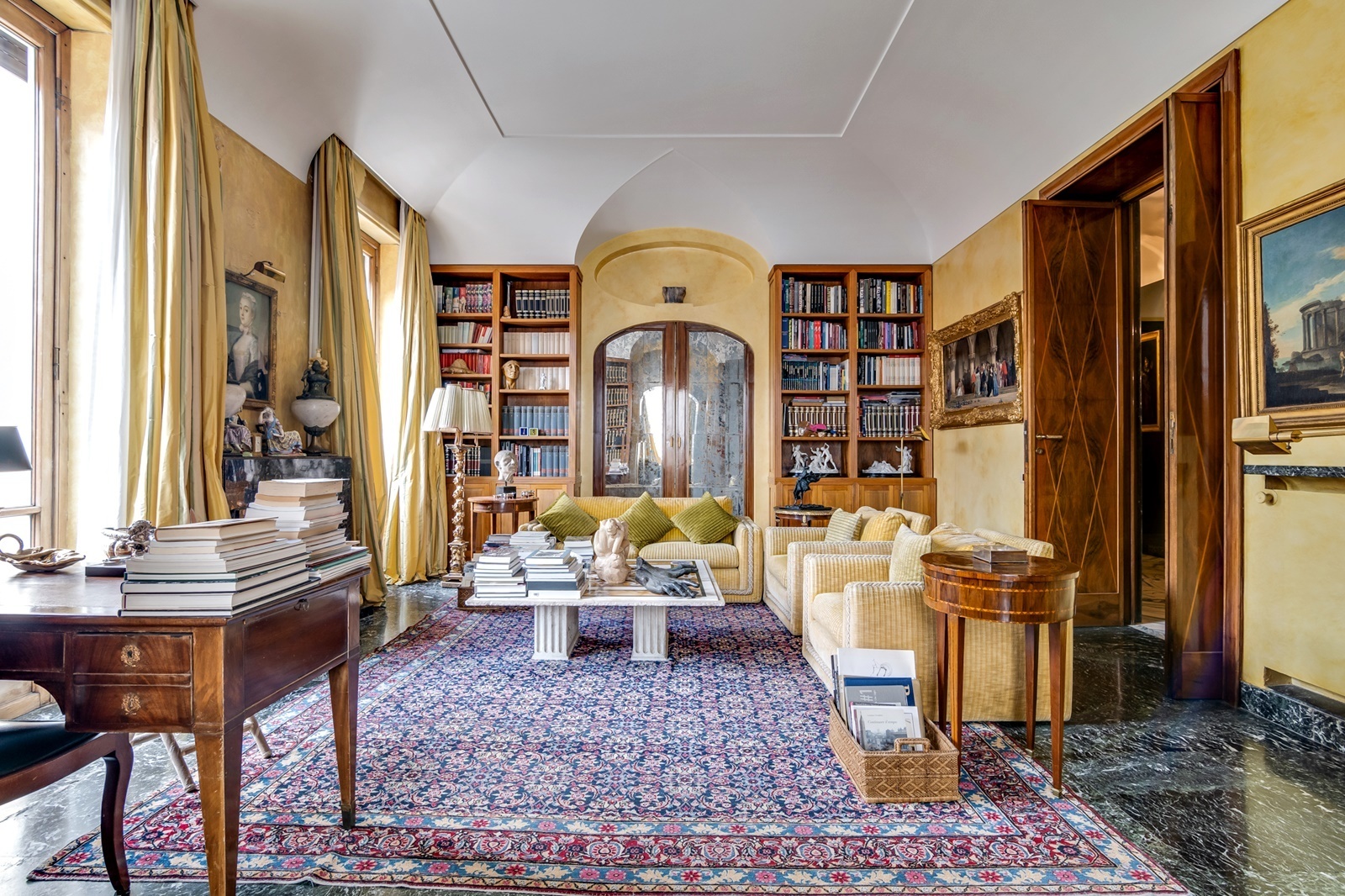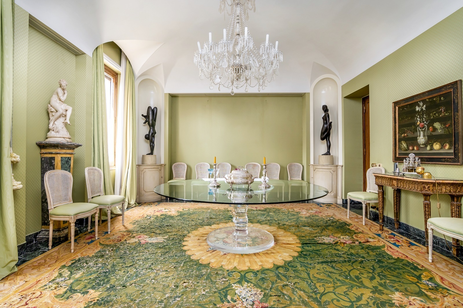 The impressive halls further enhance the apartment, ideal for welcoming prestigious guests. There is a fireplace, a piano, exclusive ancient paintings and sculptures in the corridors.