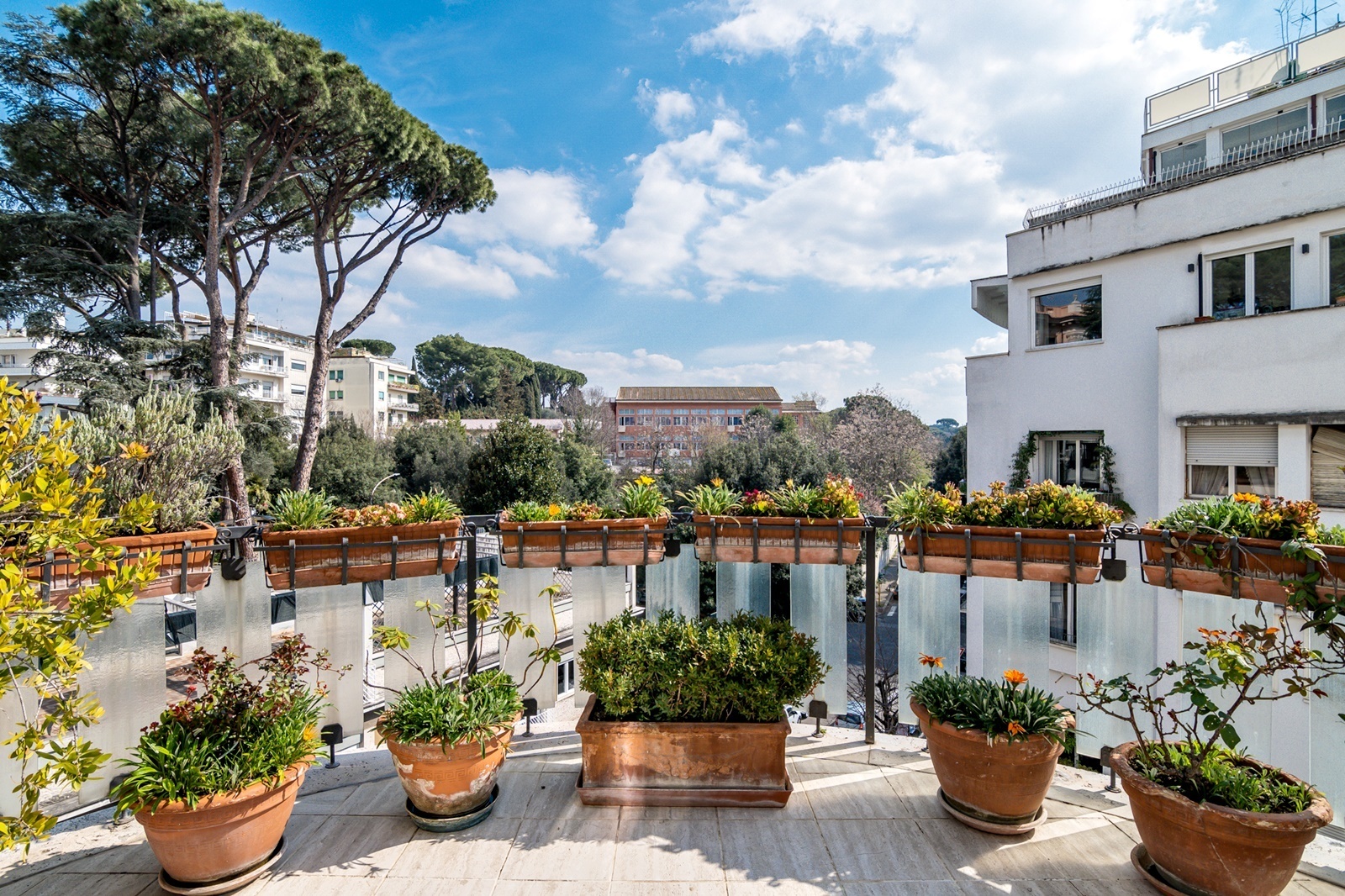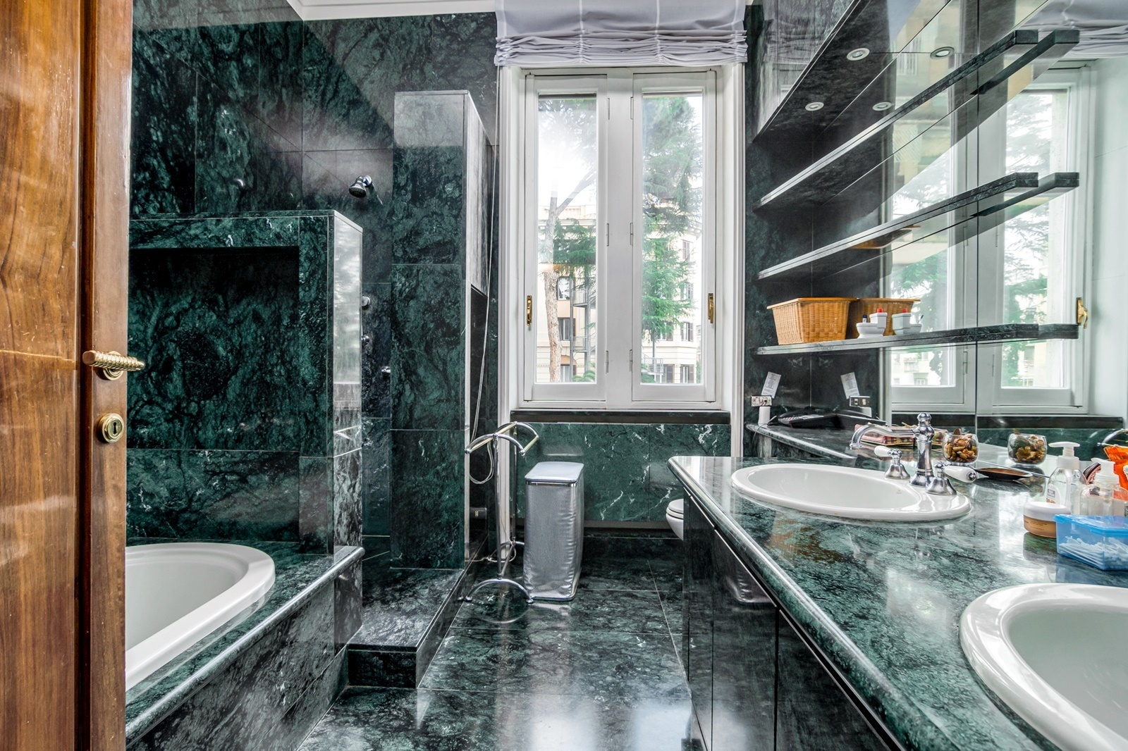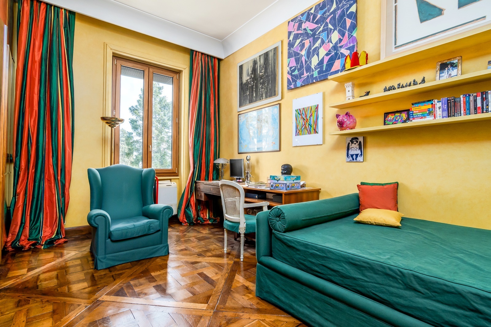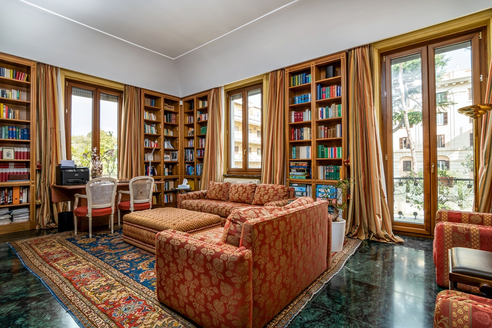 Situated in the prestigious Parioli district of Rome, near the Villa Borghese park, the property is adjacent to Via Antonio Gramsci. The district is well known as the location chosen for their main residence by entrepreneurs and professionals. It is located about 800 meters from the entrance to the park of Villa Borghese, about 10 minutes from Termini Station, and about 1.2 km (6 minutes) from Piazza del Popolo. Shops can be found just 350 meters away. Schools and universities can be reached in about 9 minutes.