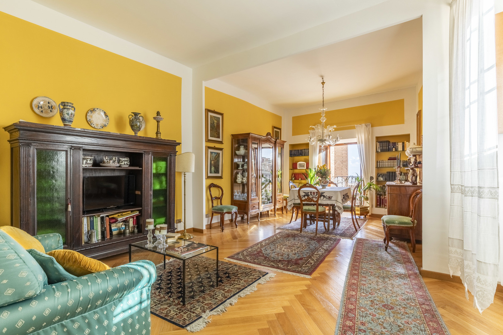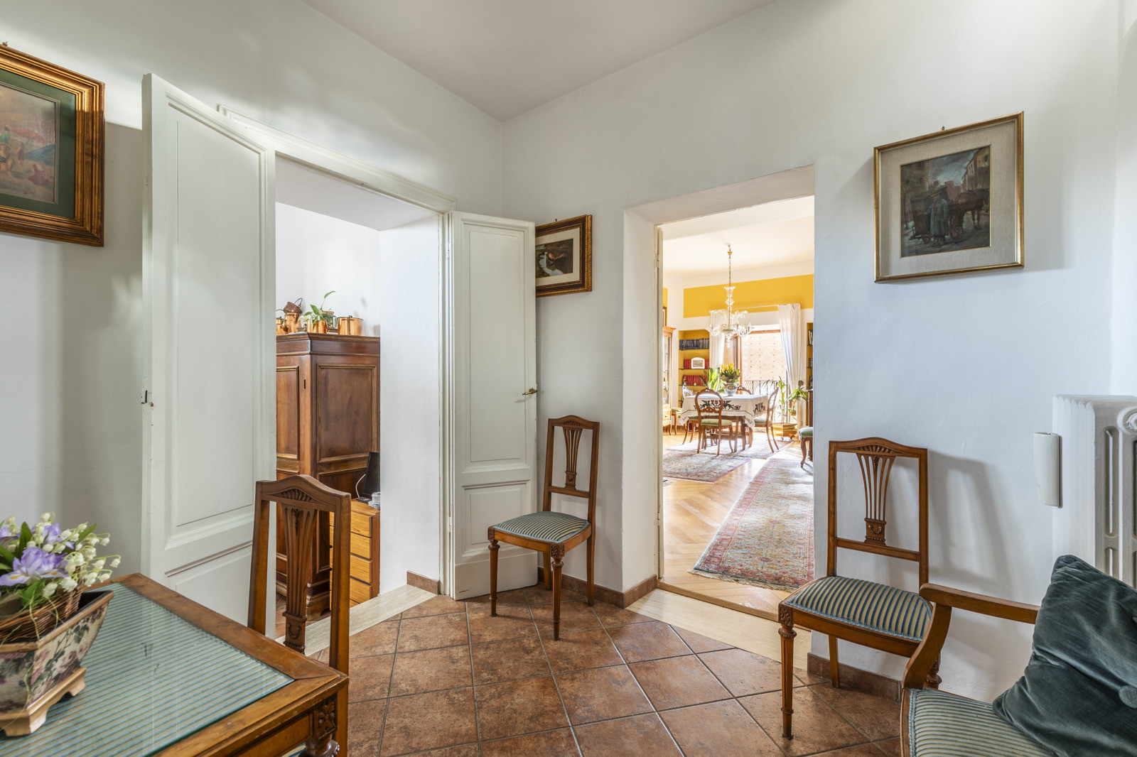 On the left of the entrance is a guest bathroom, and also from the hallway is access to the living area communicating with the kitchen. From the entrance, continuing on the right there is a corridor which leads to the a single bedroom and two storerooms, one with boiler. Then there are two bedrooms, a second bathroom and a study. From the main bedroom, which has two windows and a lot natural light, you can see the Duomo and the rooftops of the city.