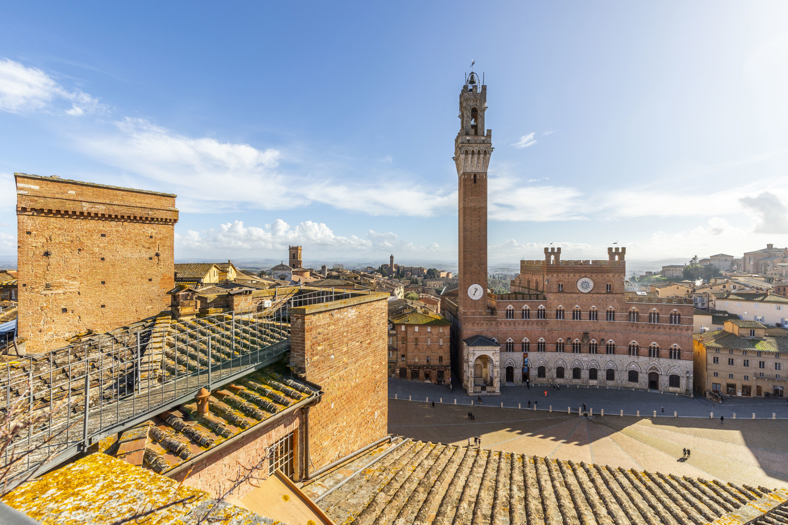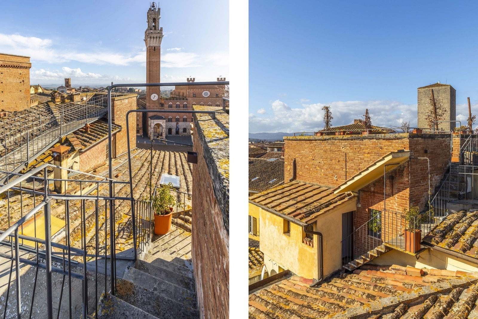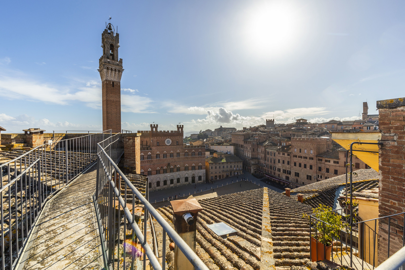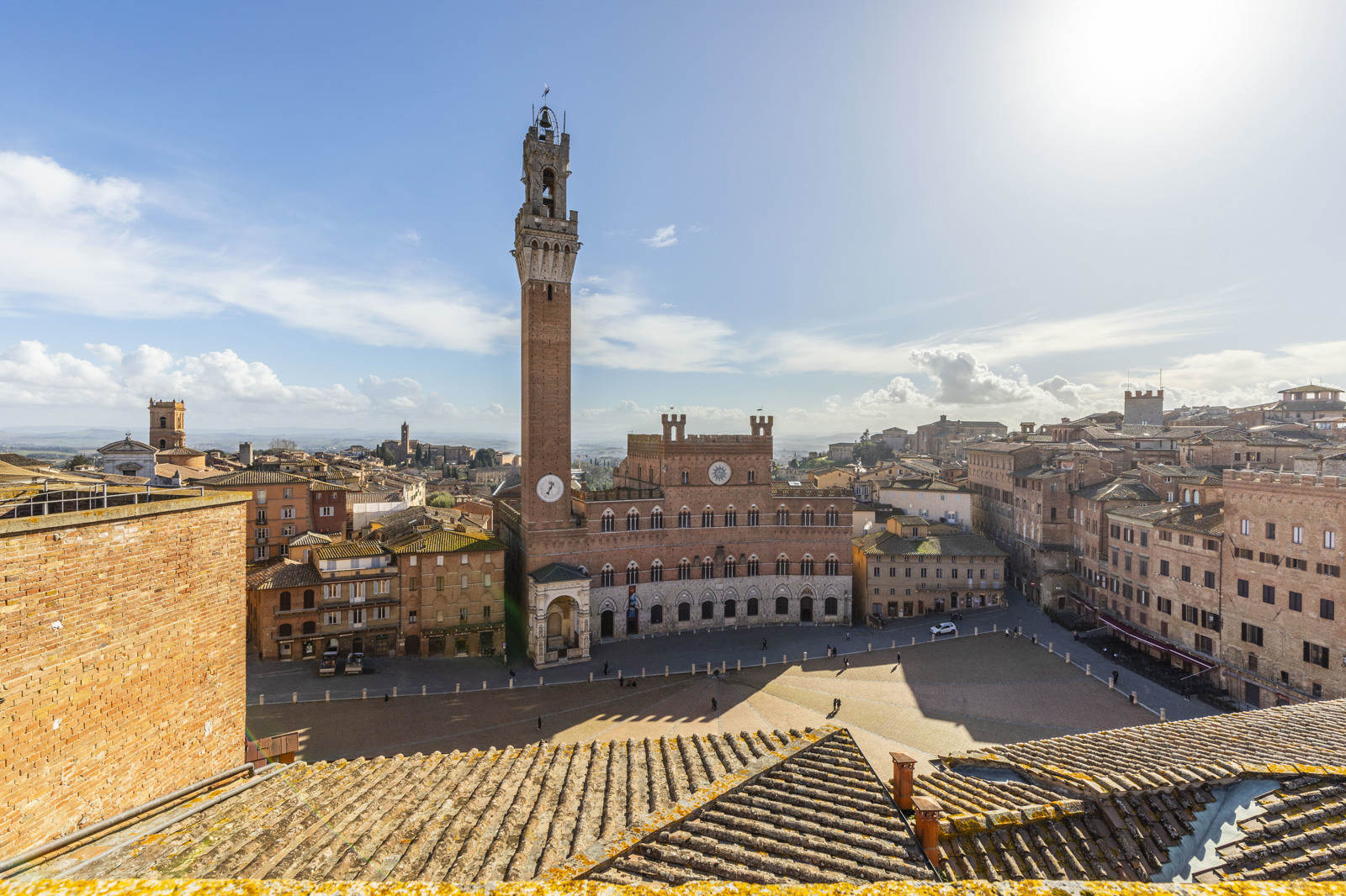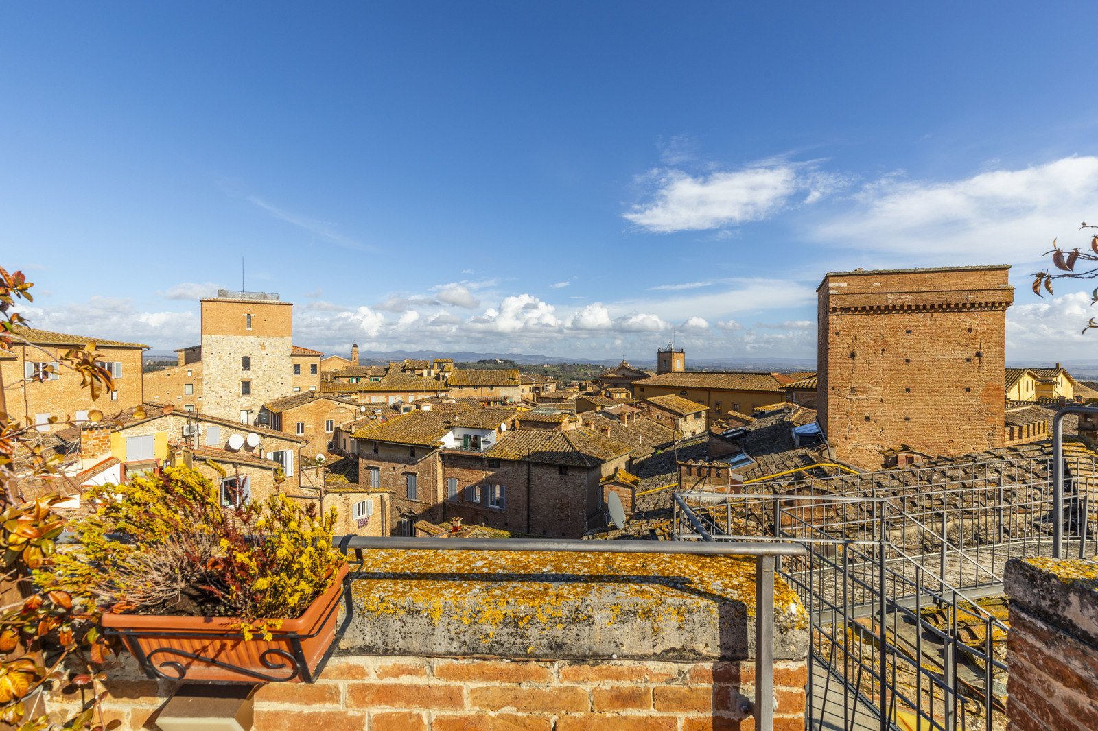 Penthouse in Siena of about 160 sqm + panoramic terraces overlooking the monuments of the medieval city and the surrounding countryside. The amazing 360 degree views which include the famous Piazza del Campo (famous the world over for the Palio horserace) make it a property of rare beauty and historical value. It is on the top floor of a noble 13th century palazzo.