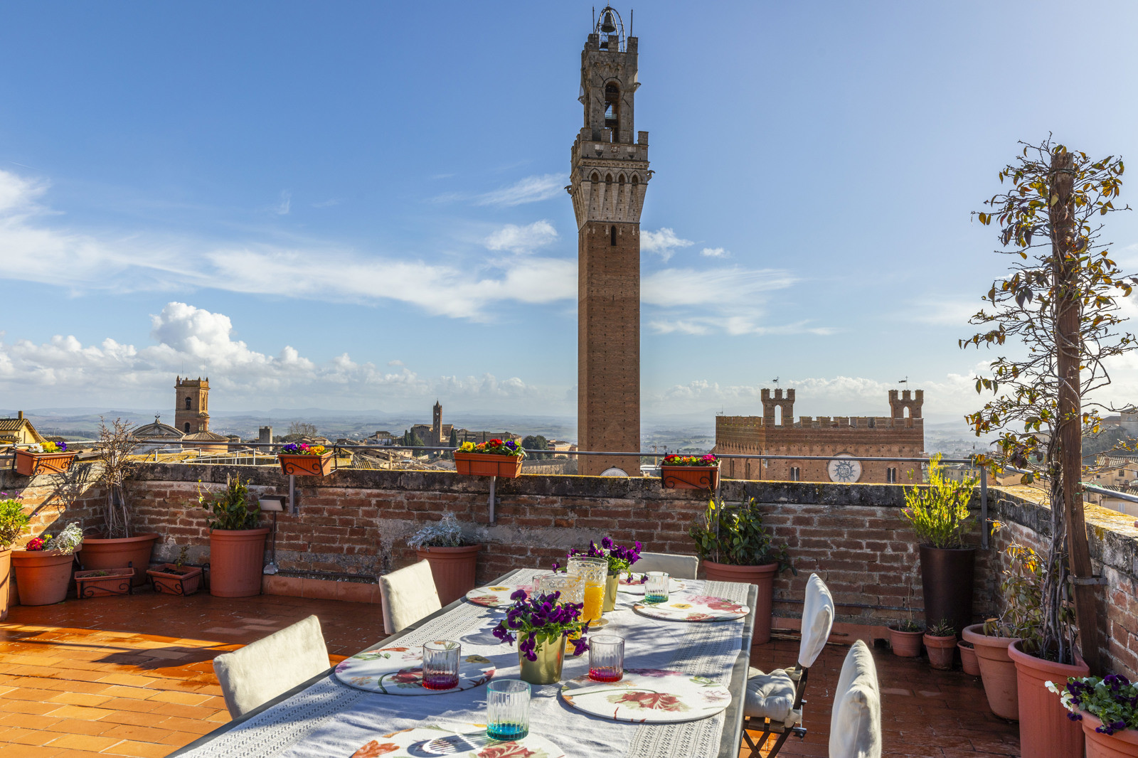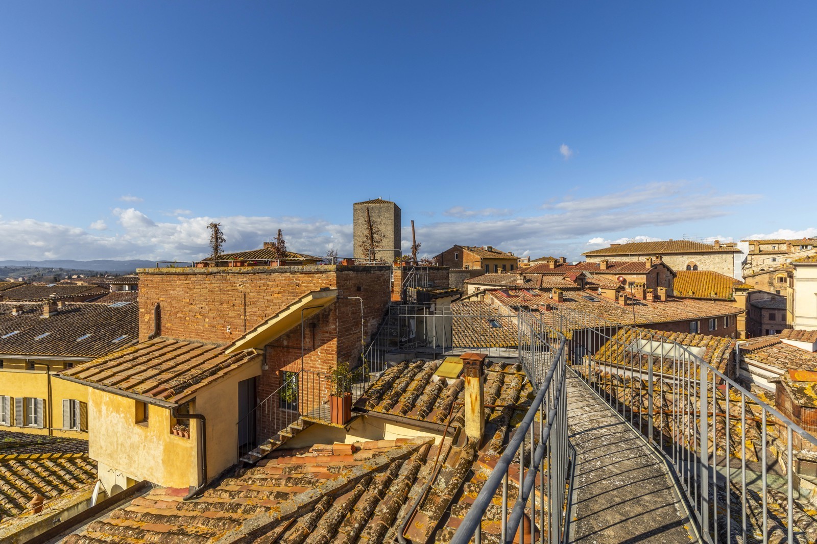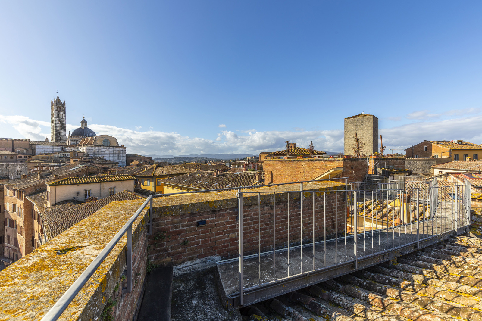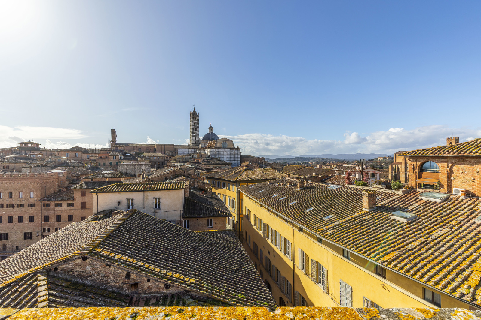 Penthouse in Siena of about 160 sqm + panoramic terraces overlooking the monuments of the medieval city and the surrounding countryside. The amazing 360 degree views which include the famous Piazza del Campo (famous the world over for the Palio horserace) make it a property of rare beauty and historical value. It is on the top floor of a noble 13th century palazzo.