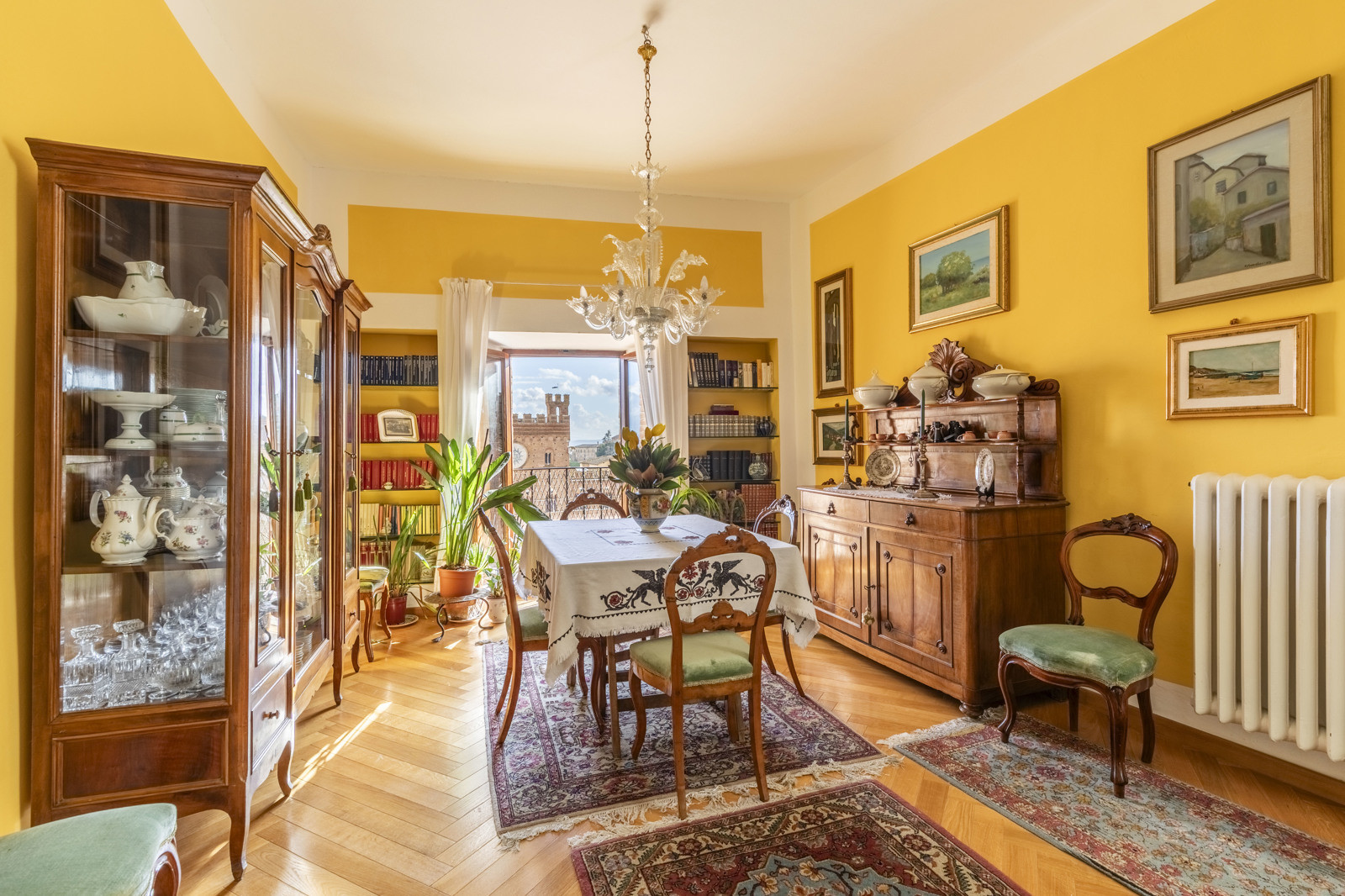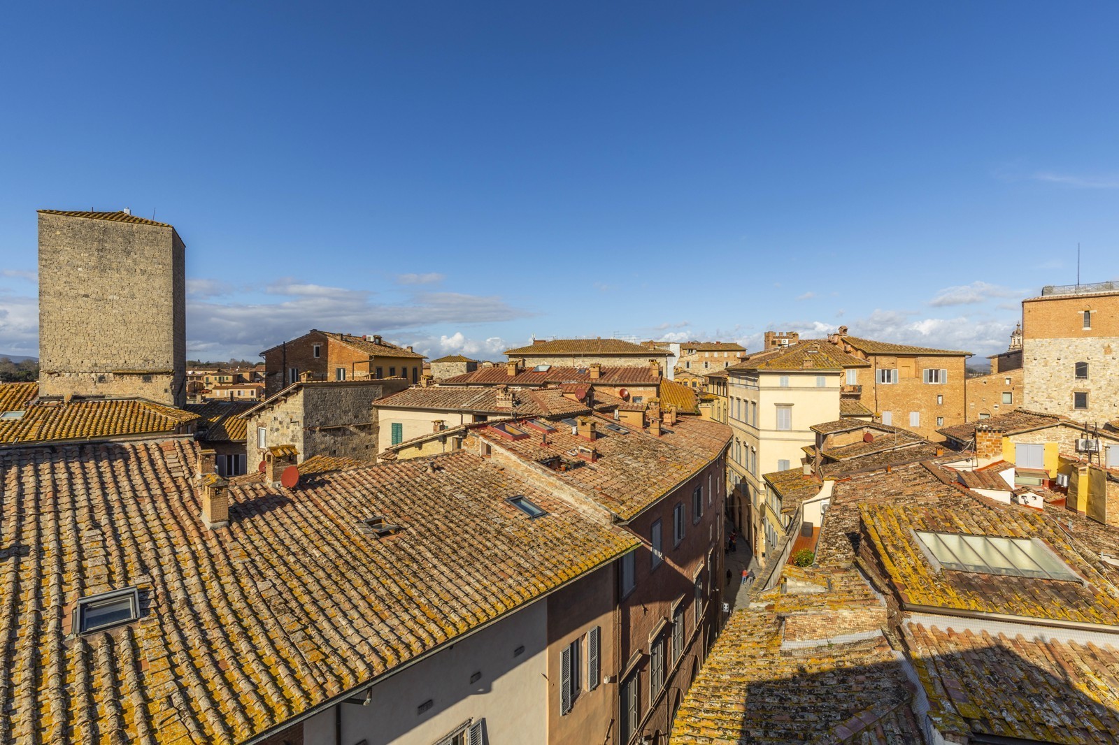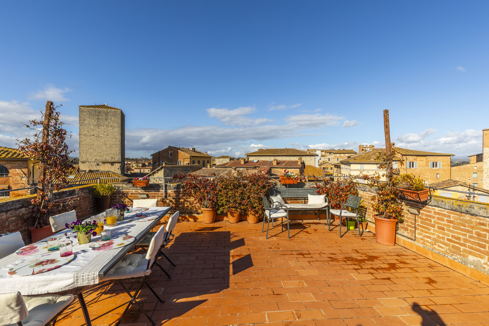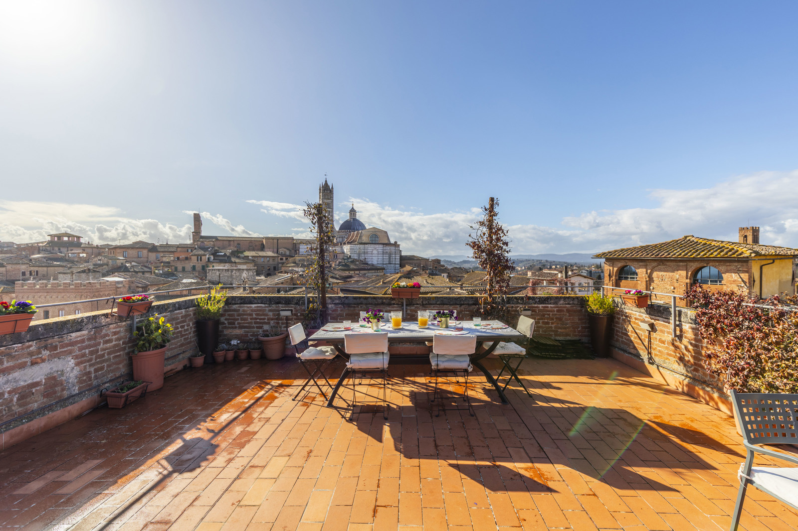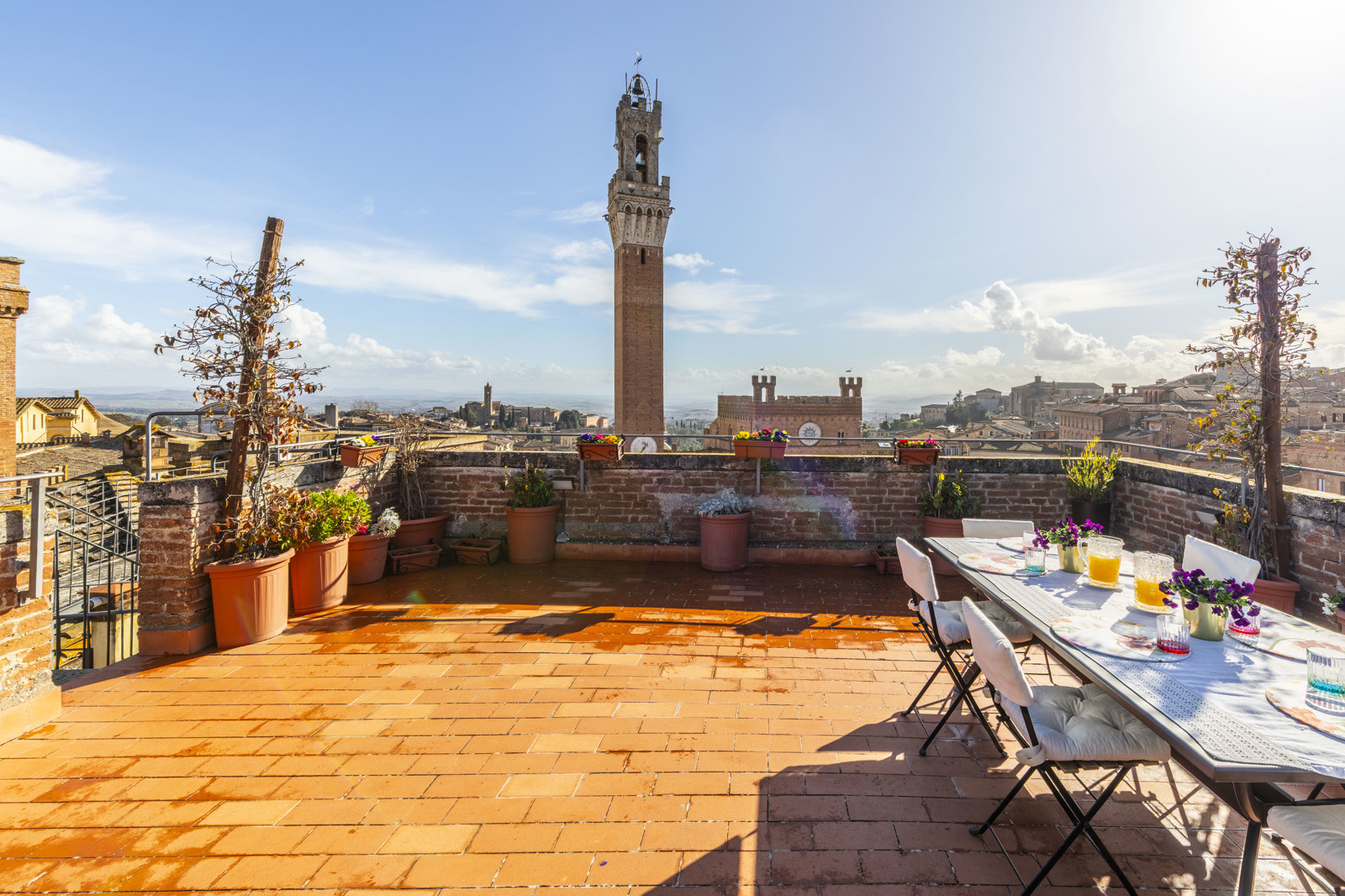 Penthouse in Siena of about 160 sqm + panoramic terraces overlooking the monuments of the medieval city and the surrounding countryside. The amazing 360 degree views which include the famous Piazza del Campo (famous the world over for the Palio horserace) make it a property of rare beauty and historical value. It is on the top floor of a noble 13th century palazzo.
