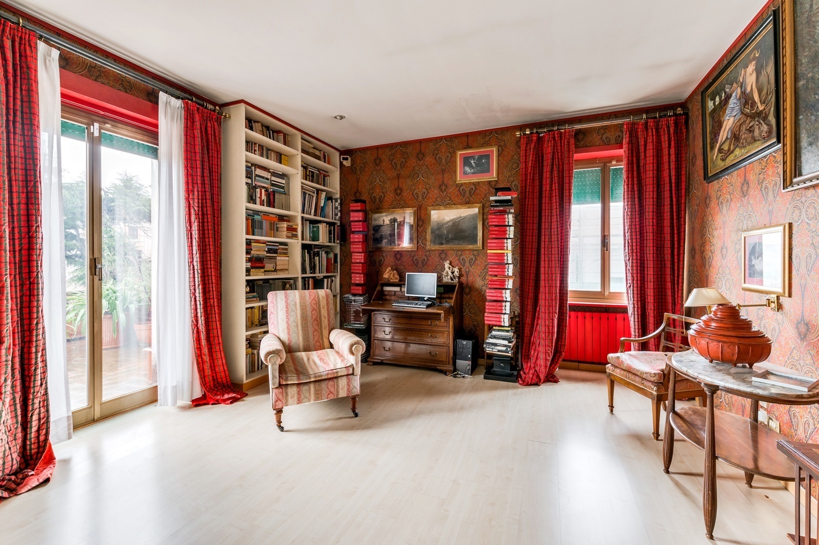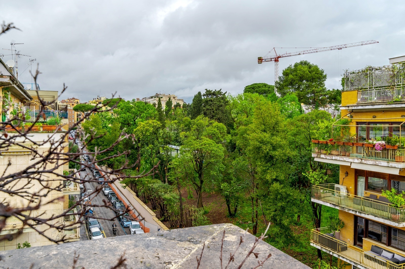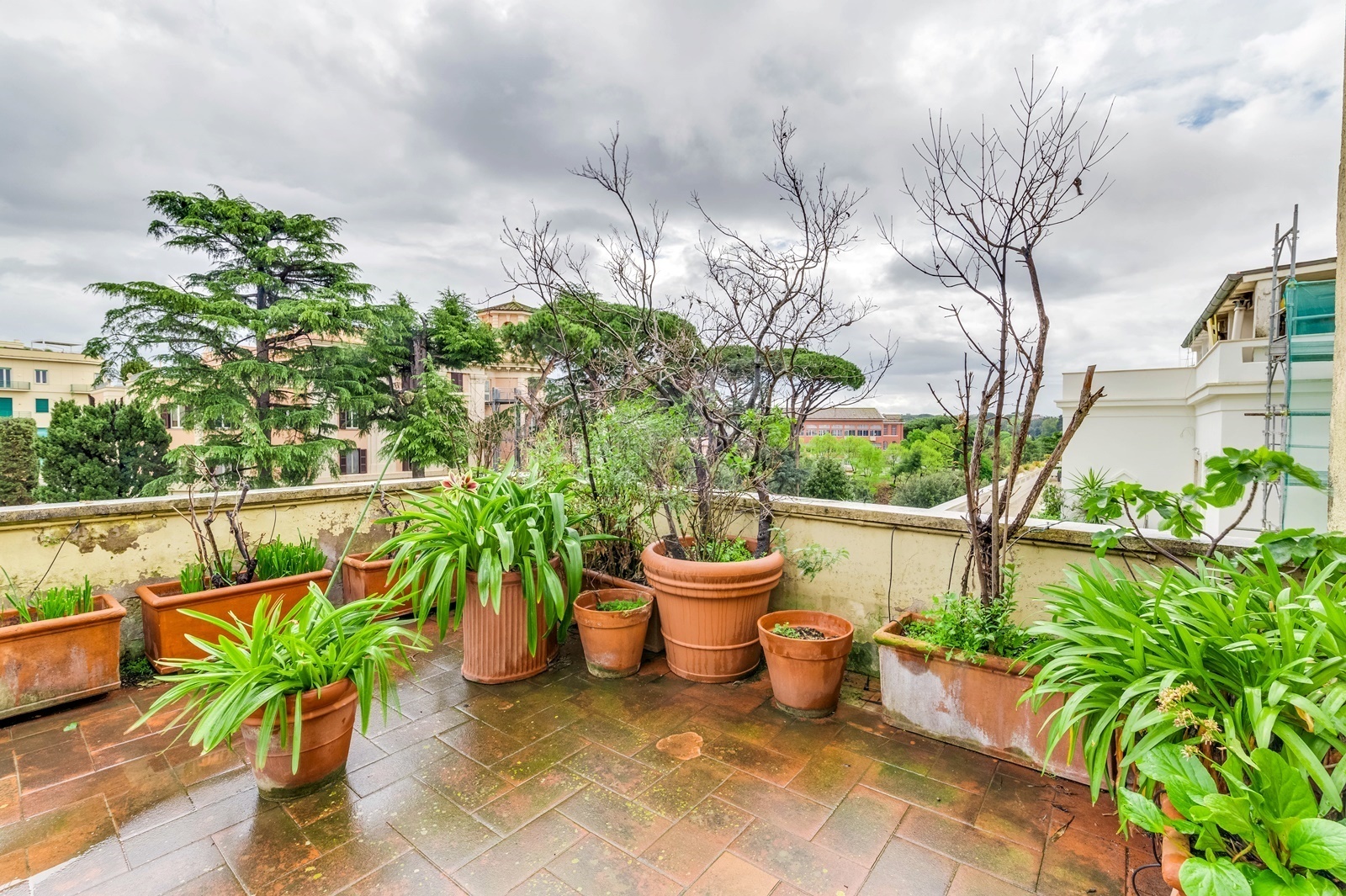The property, a penthouse with a level terrace, is located in one of the most exclusive areas of the Parioli district, via Antonio Gramsci, a stone’s throw from the Villa Borghese Park and close to the Villa Glori Park. It is well connected to all services with the historic centre and the Prati district close by.