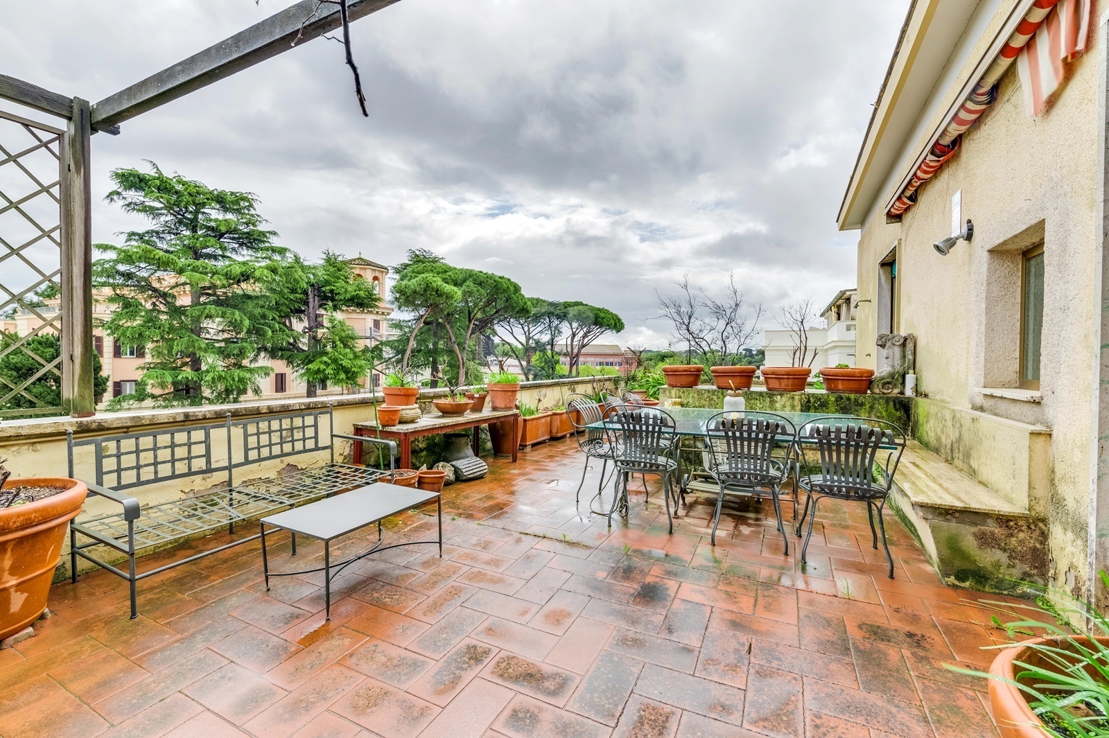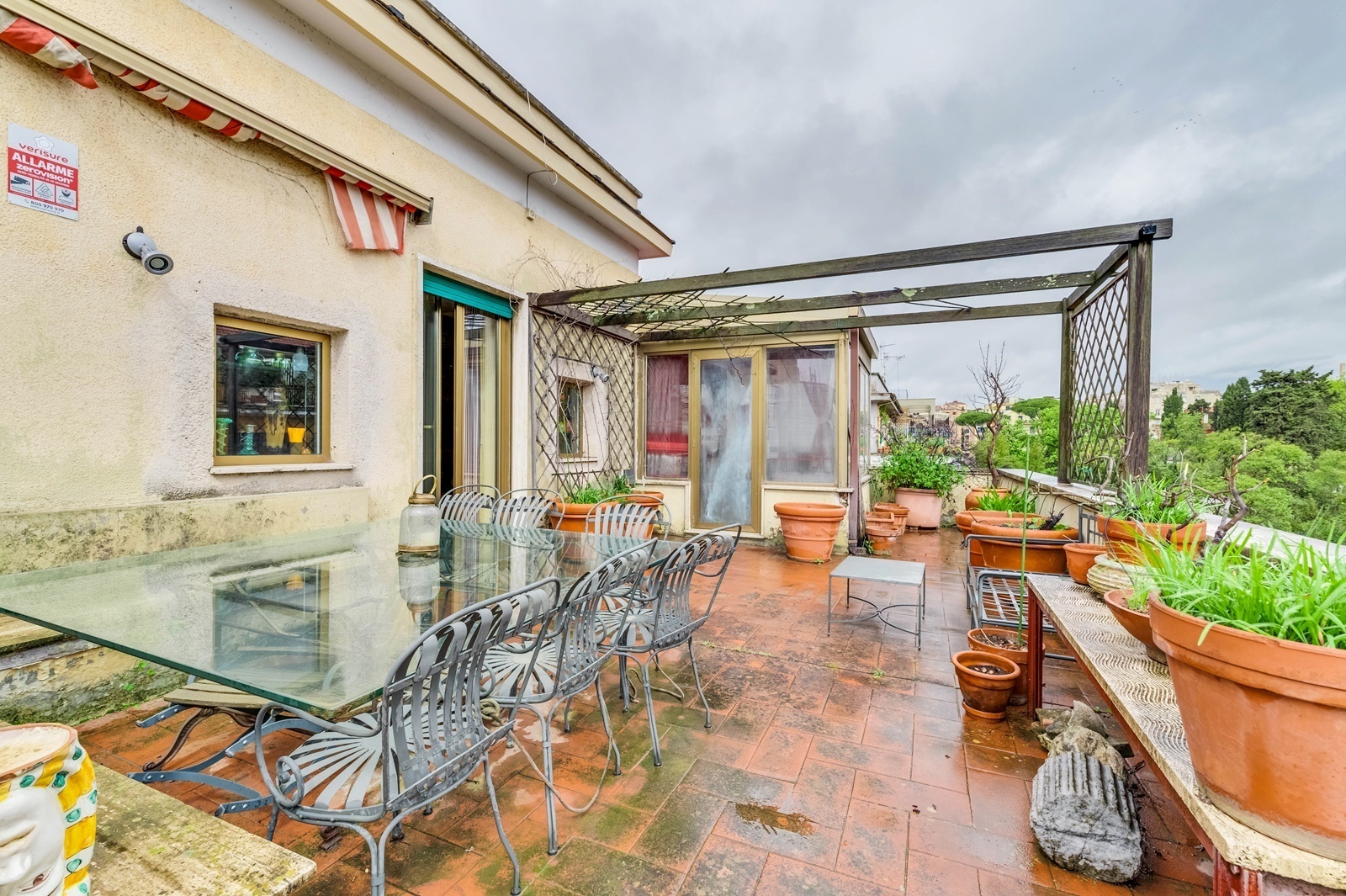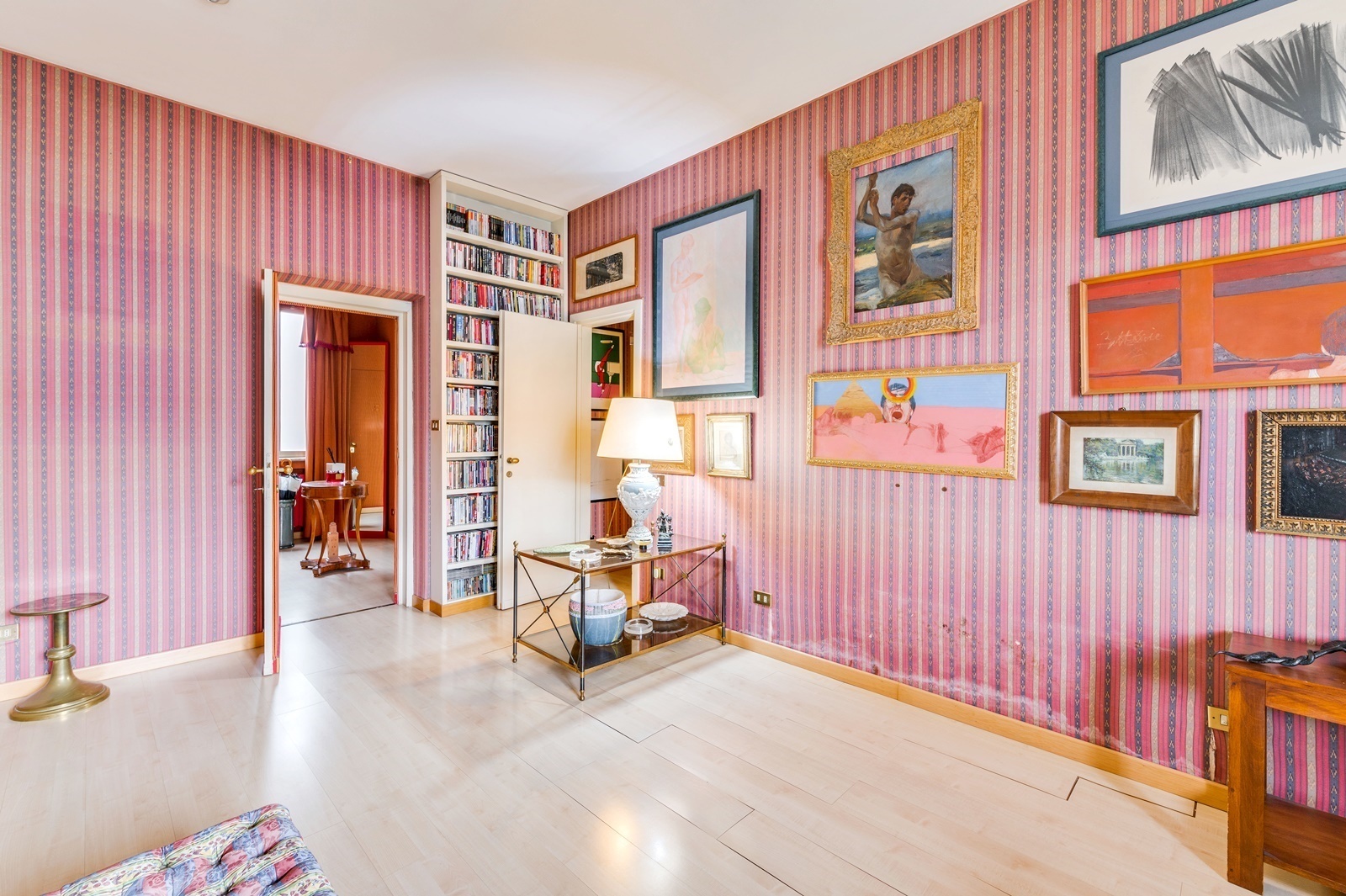 The property, a penthouse with a level terrace, is located in one of the most exclusive areas of the Parioli district, via Antonio Gramsci, a stone’s throw from the Villa Borghese Park and close to the Villa Glori Park. It is well connected to all services with the historic centre and the Prati district close by.